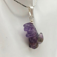 BARNEY! Amethyst Carved T-Rex Dinosaur with Sterling Silver accents and bail!! Great Amethyst February Birthstone Pendant!