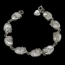 A delight for your wrist, this wonderful sterling silver bracelet has been created with nine stylized kitties to make an intriguing piece! This great piece is 7" long, allowing it to be used as bracelet. It is stamped 925 for 925/1000 pure sterling.