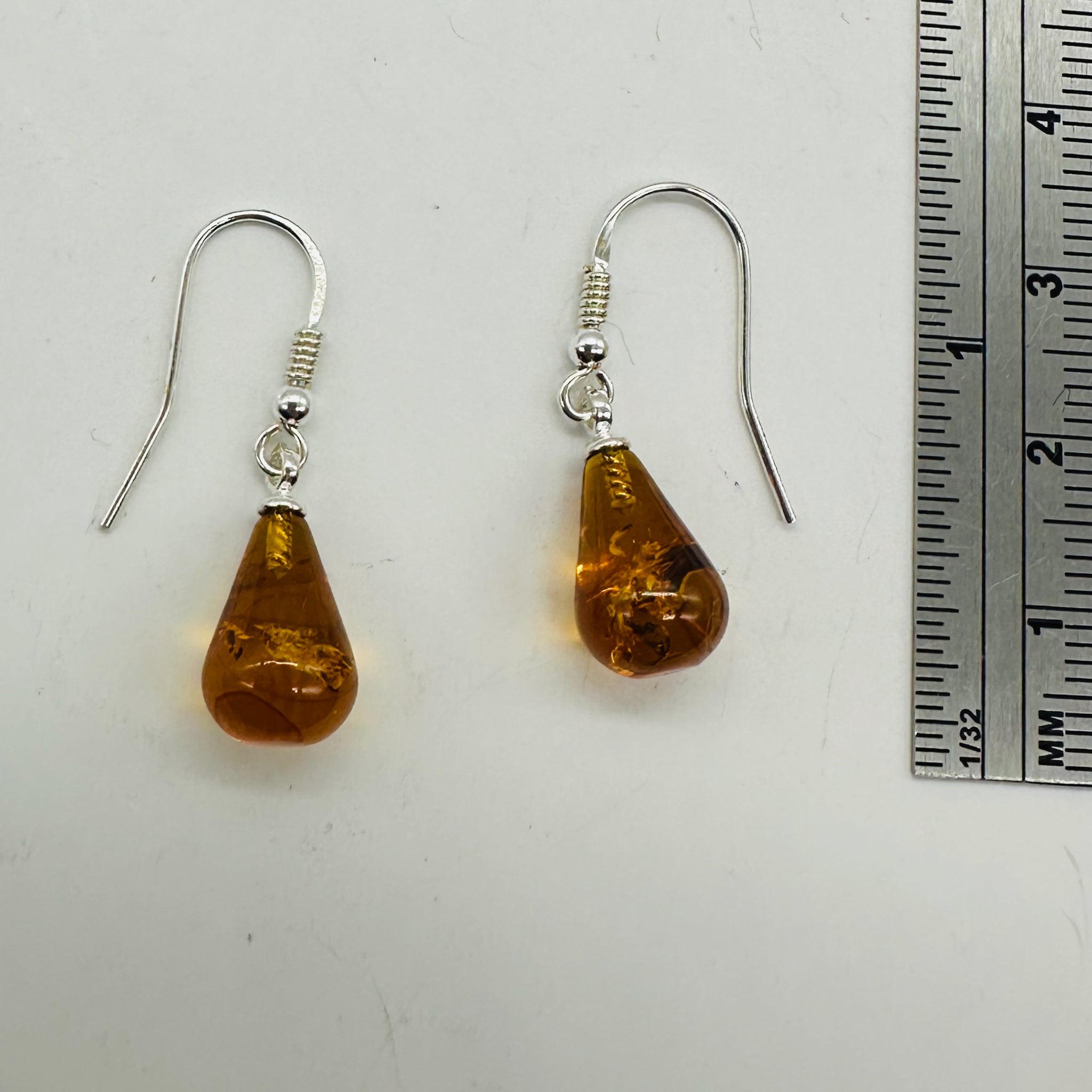 AMBER TEARDROP DANGLE EARRINGS - BALTIC SUNSTONE BEAUTY
