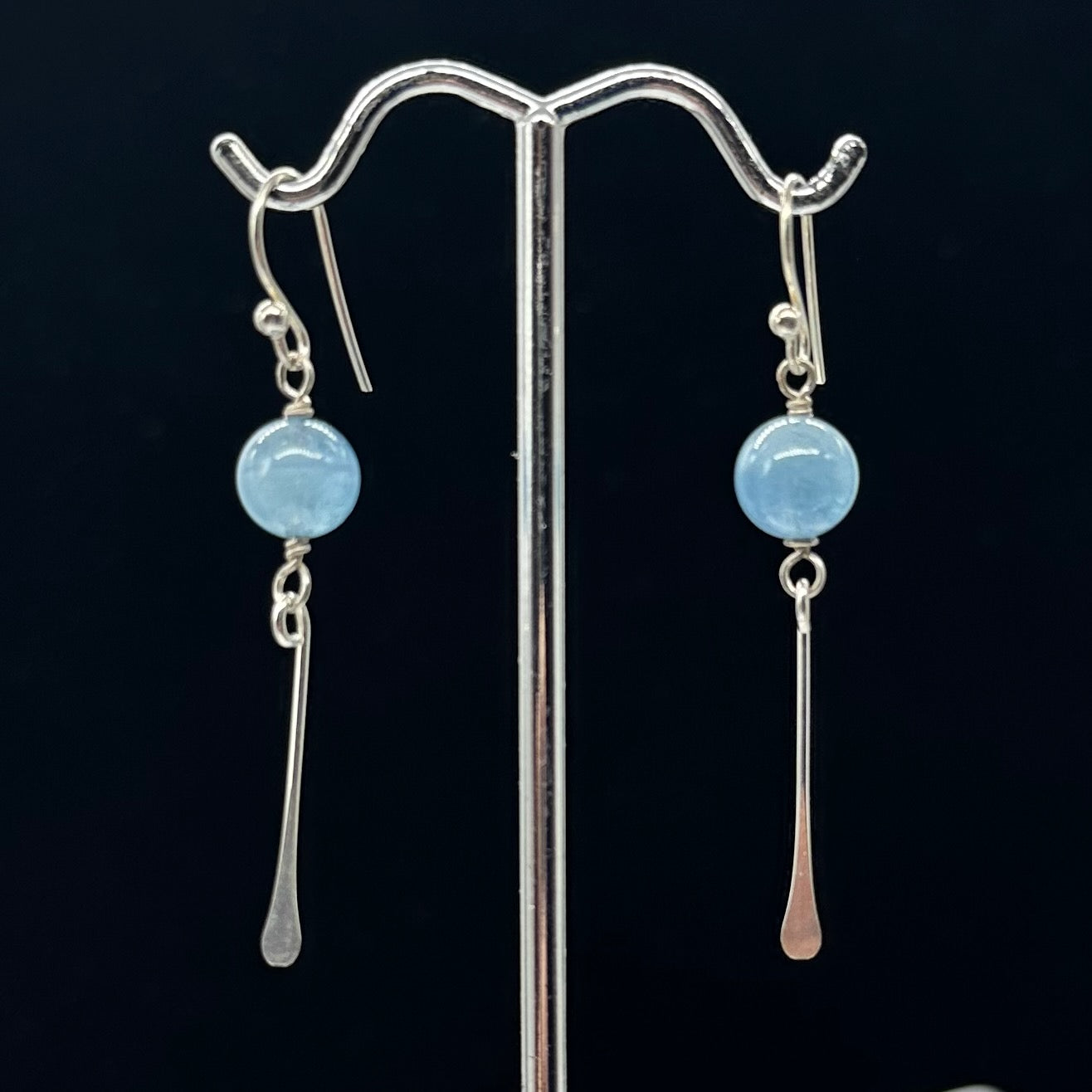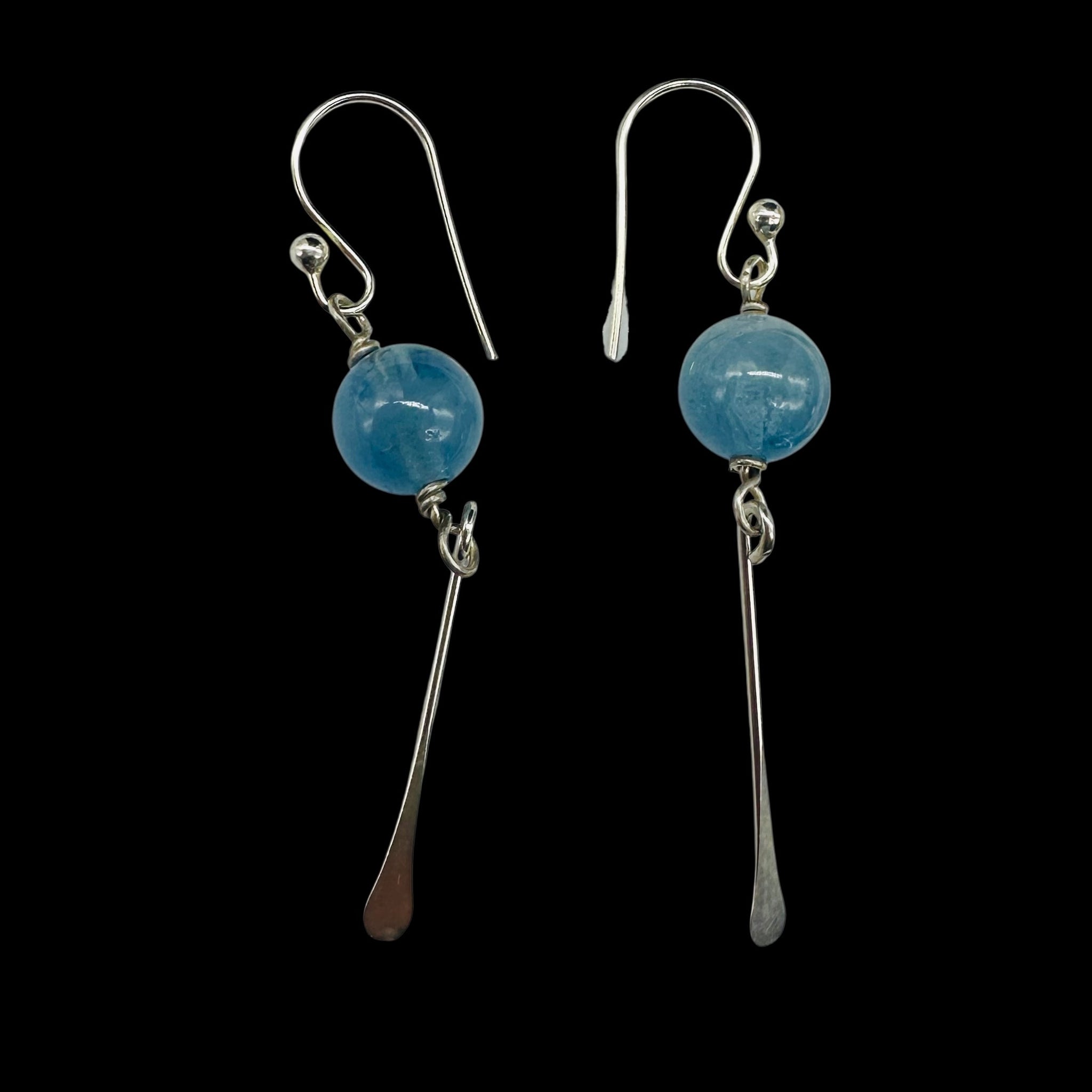 These elegant Aquamarine Sterling Silver Dangle Earrings feature luminous 8mm round Aquamarine beads in a serene sky-blue hue. Measuring approximately 2 inches long, these graceful drop earrings add the perfect pop of soft ocean color to any outfit-whether you're dressing up for a special occasion or elevating your everyday style. Their timeless design makes them effortlessly wearable and beautifully versatile!