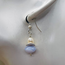 BLUE & WHITE CHALCEDONY FACETED PEARL DESIGNER EARRINGS!