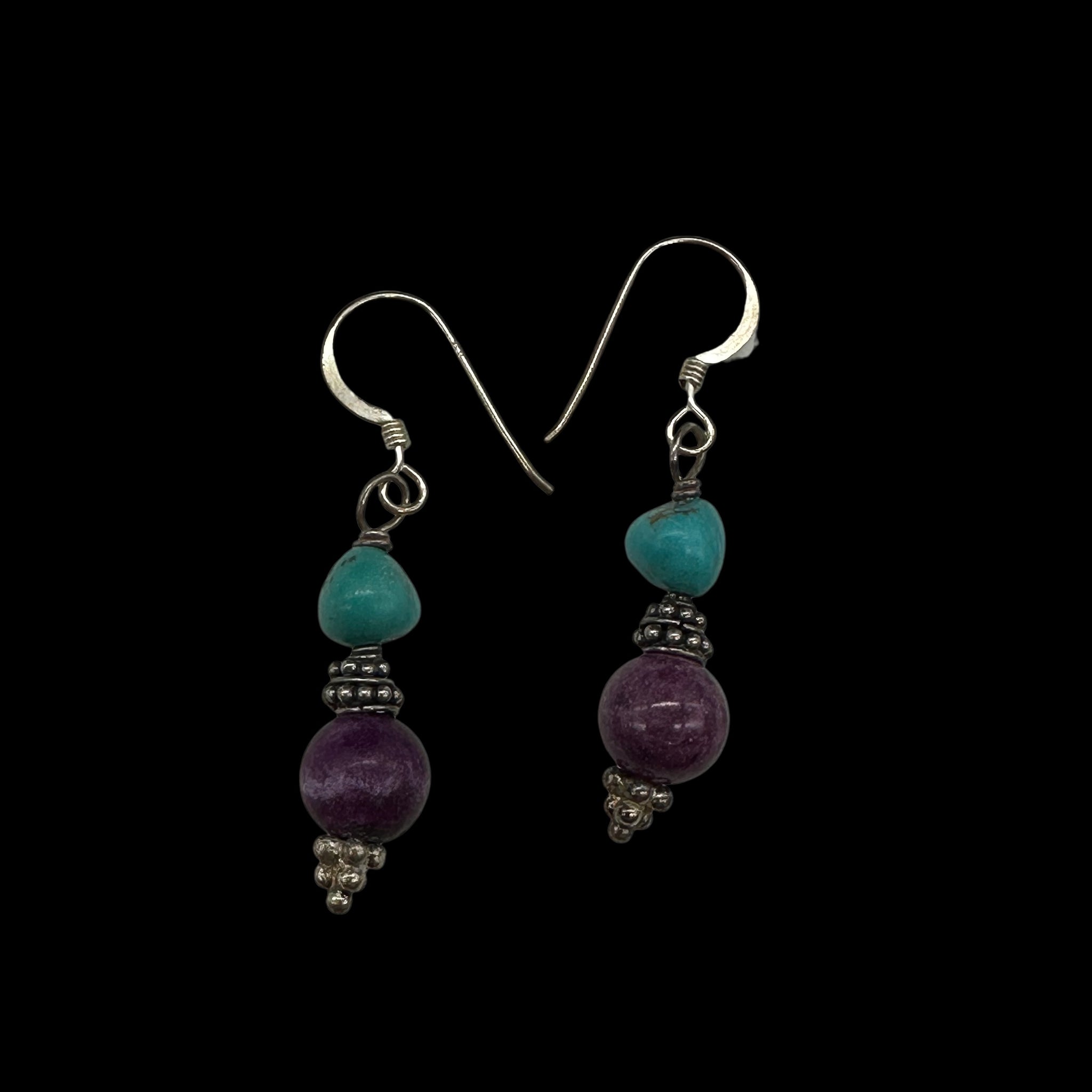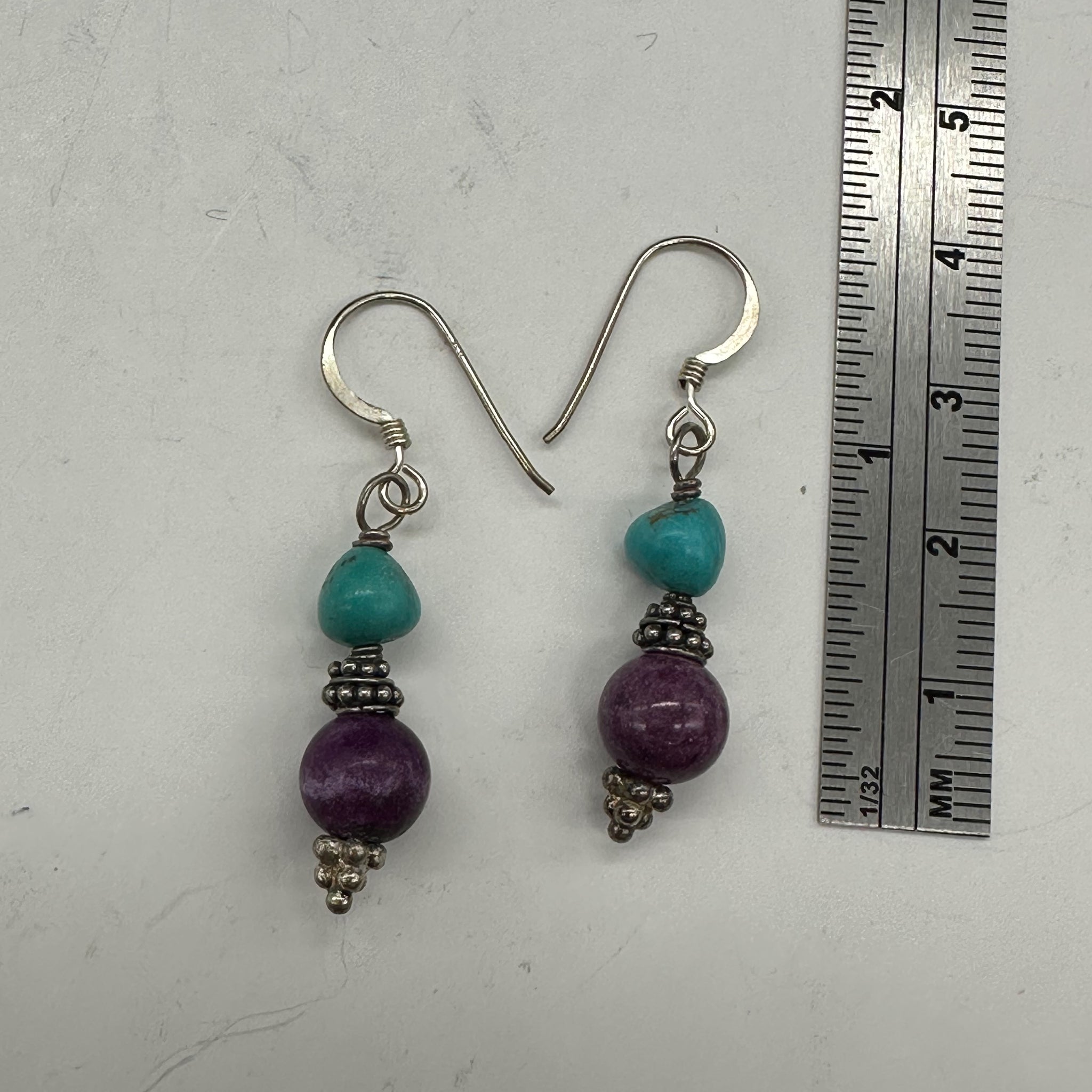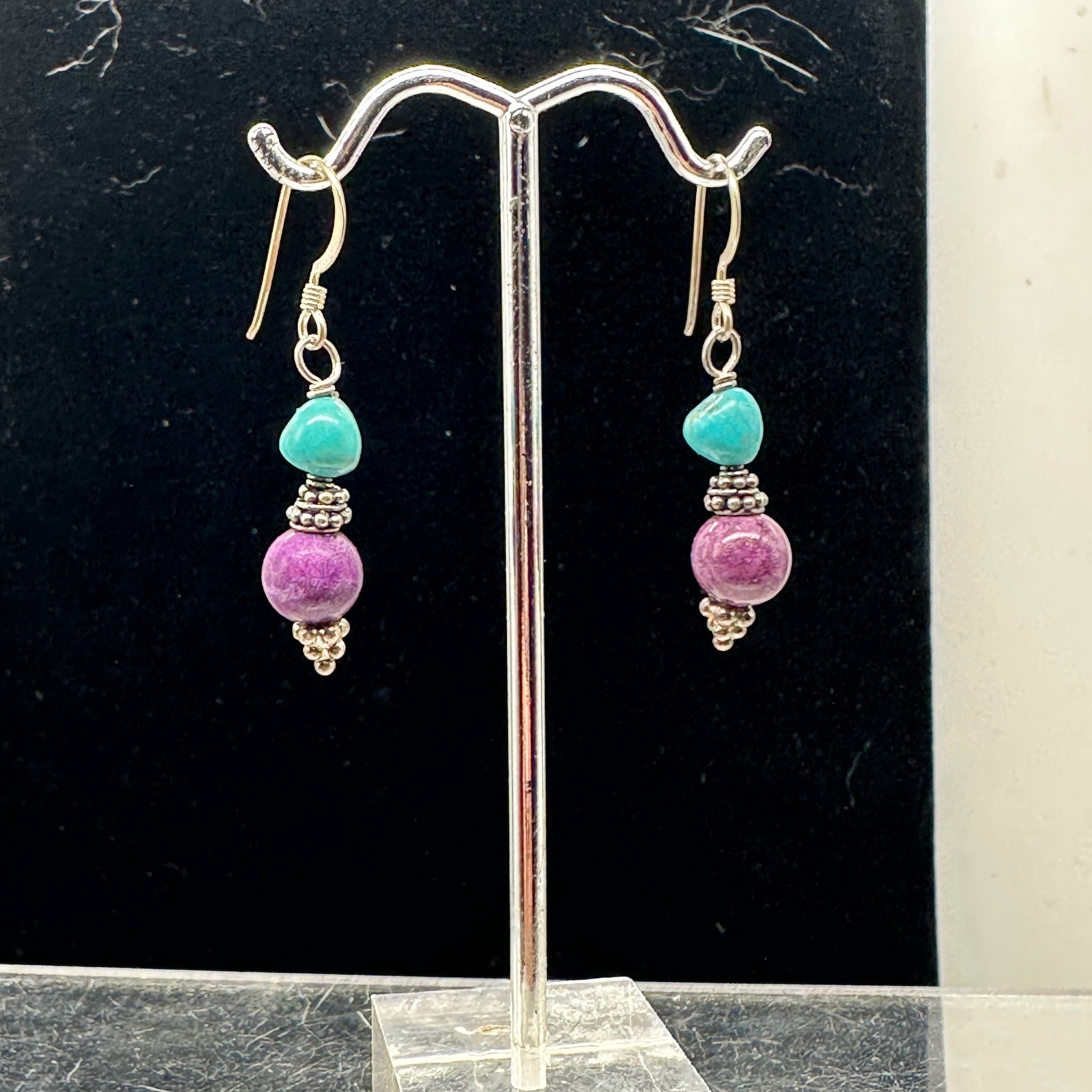 GORGEOUS BRAZILIAN LAVENDERITE - TURQUOISE AND STERLING SILVER BEAD EARRINGS