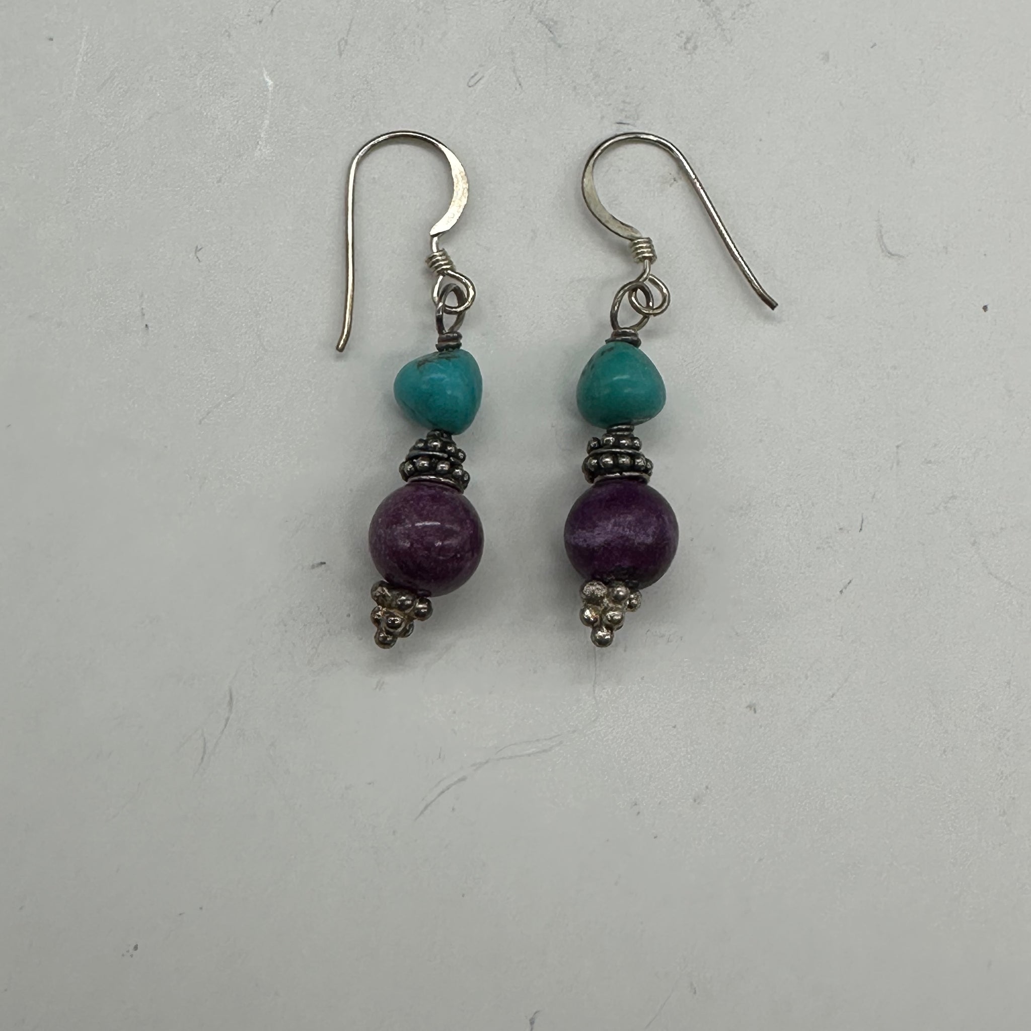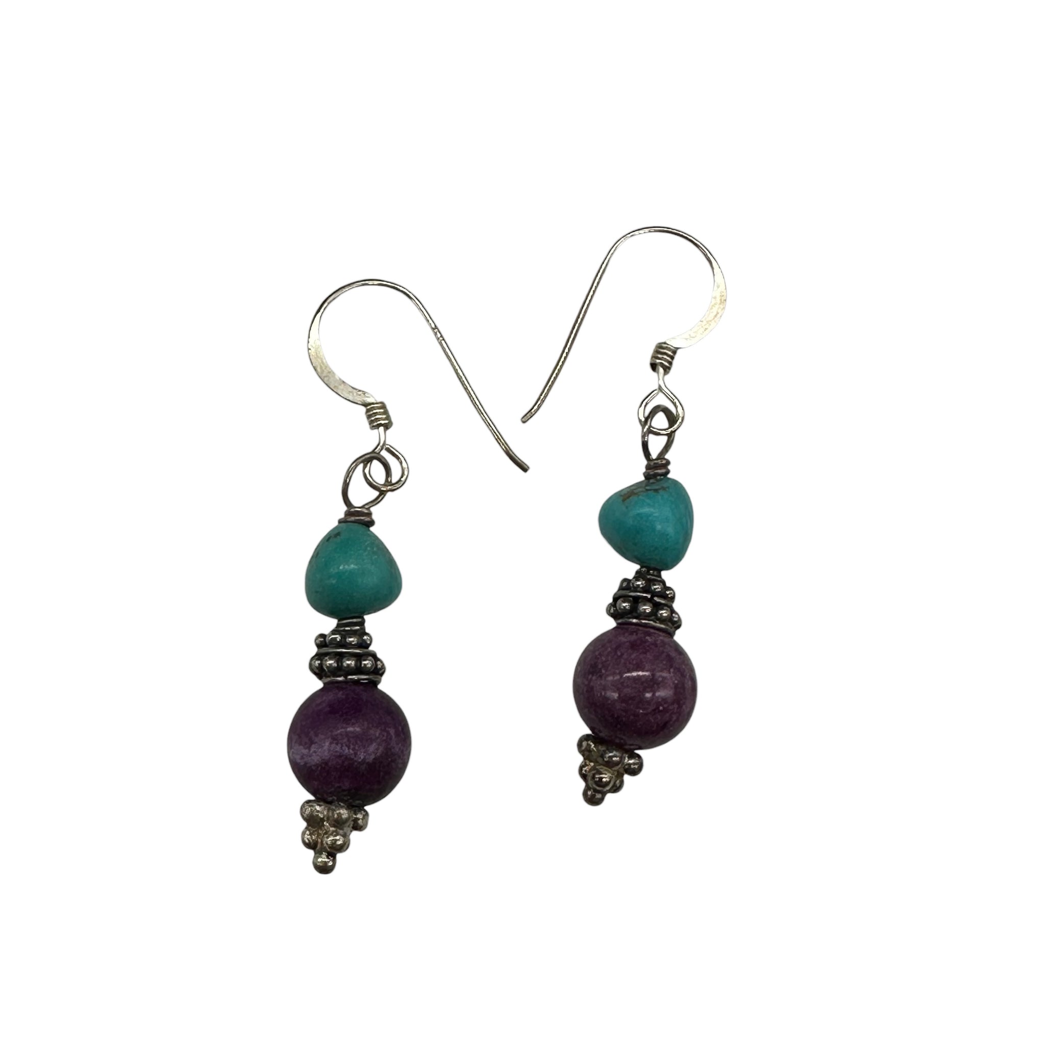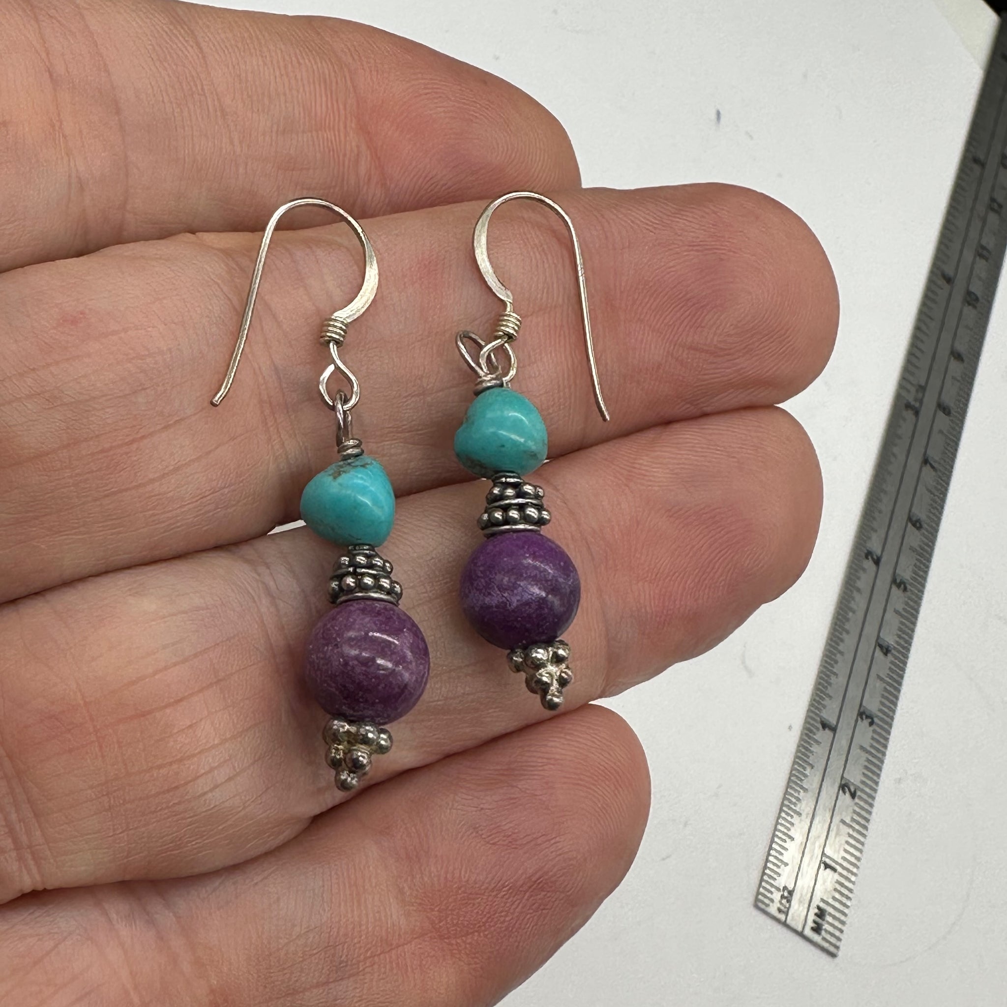 GORGEOUS BRAZILIAN LAVENDERITE - TURQUOISE AND STERLING SILVER BEAD EARRINGS
