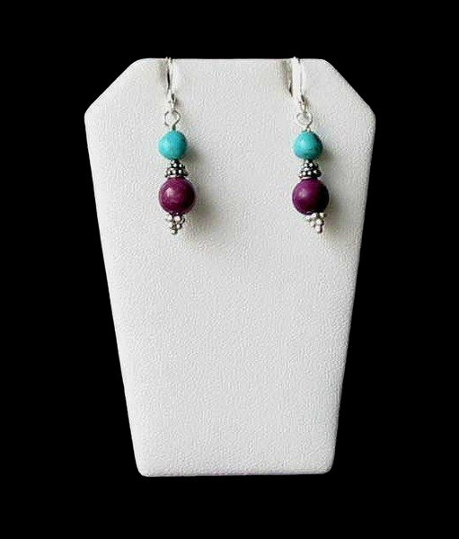 This custom design is simple yet elegant. It's playfull yet classy. These amazing Lavenderite beads are a warm velvety purple!!! The turquoise is rich lusterous blue with brown matrix. These beads are seperated by a unique sterling silver spacer bead and measure 1.75" long!! These are the perfect piece for a night out or a special occasion!