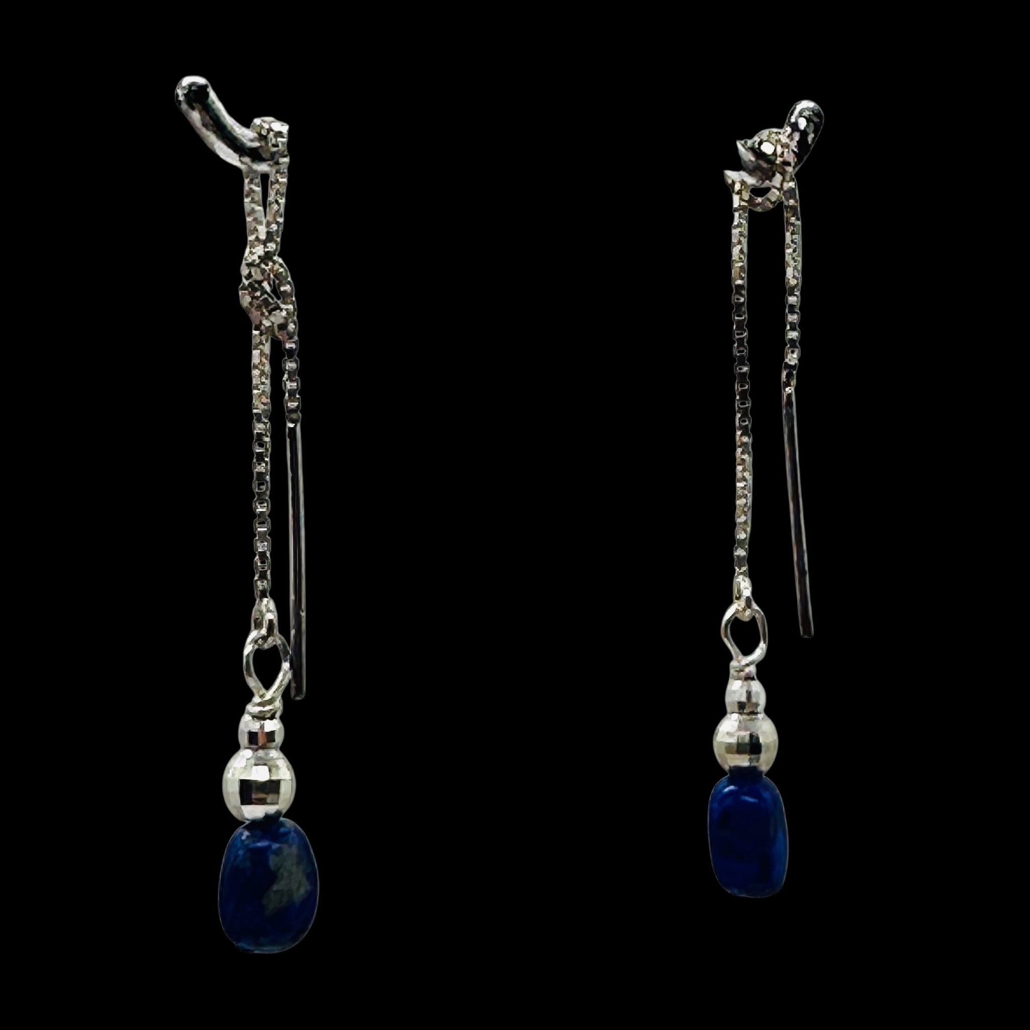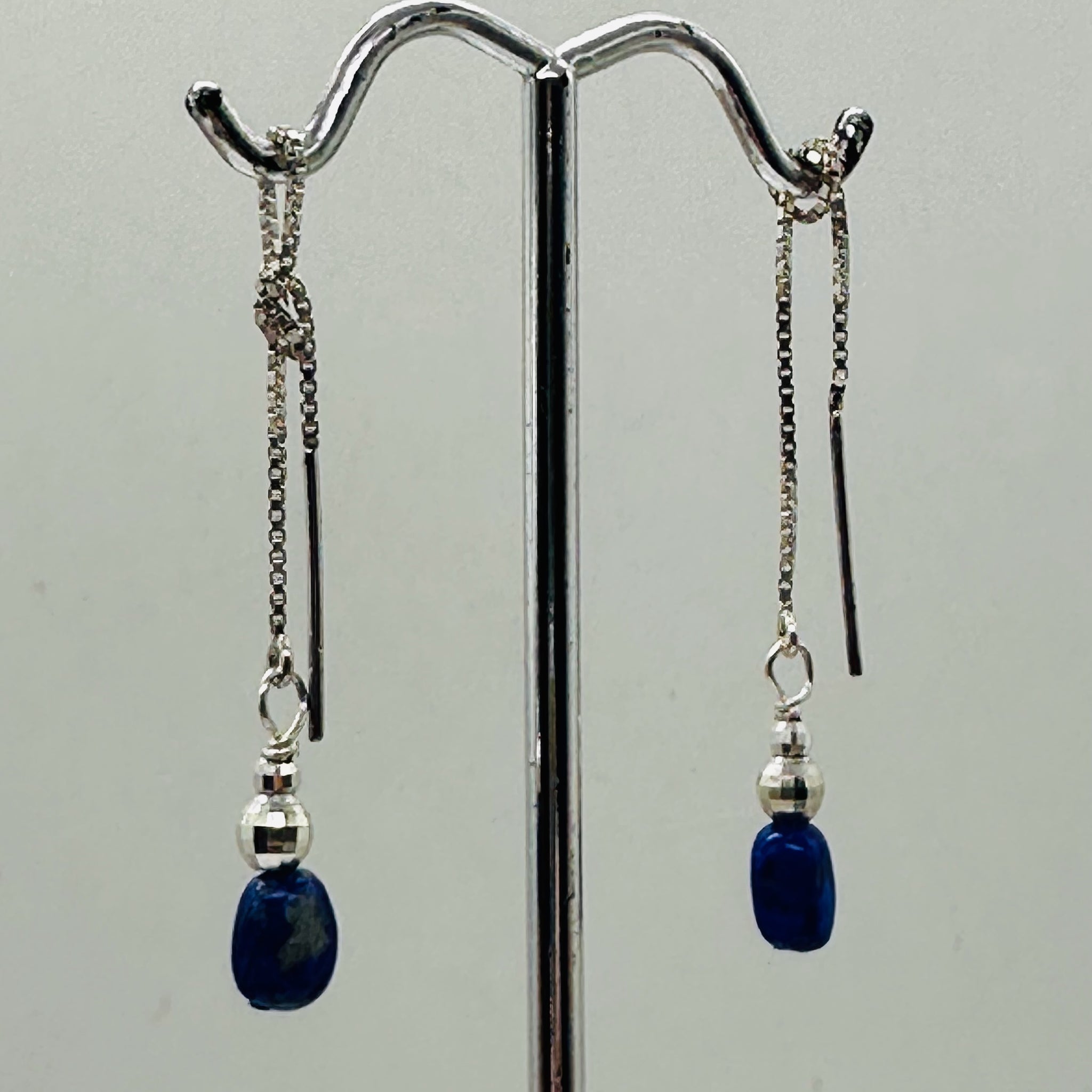 Blue Lapis Sterling Silver Threader Unique STERLING SILVER EAR THREADERS Earrings!