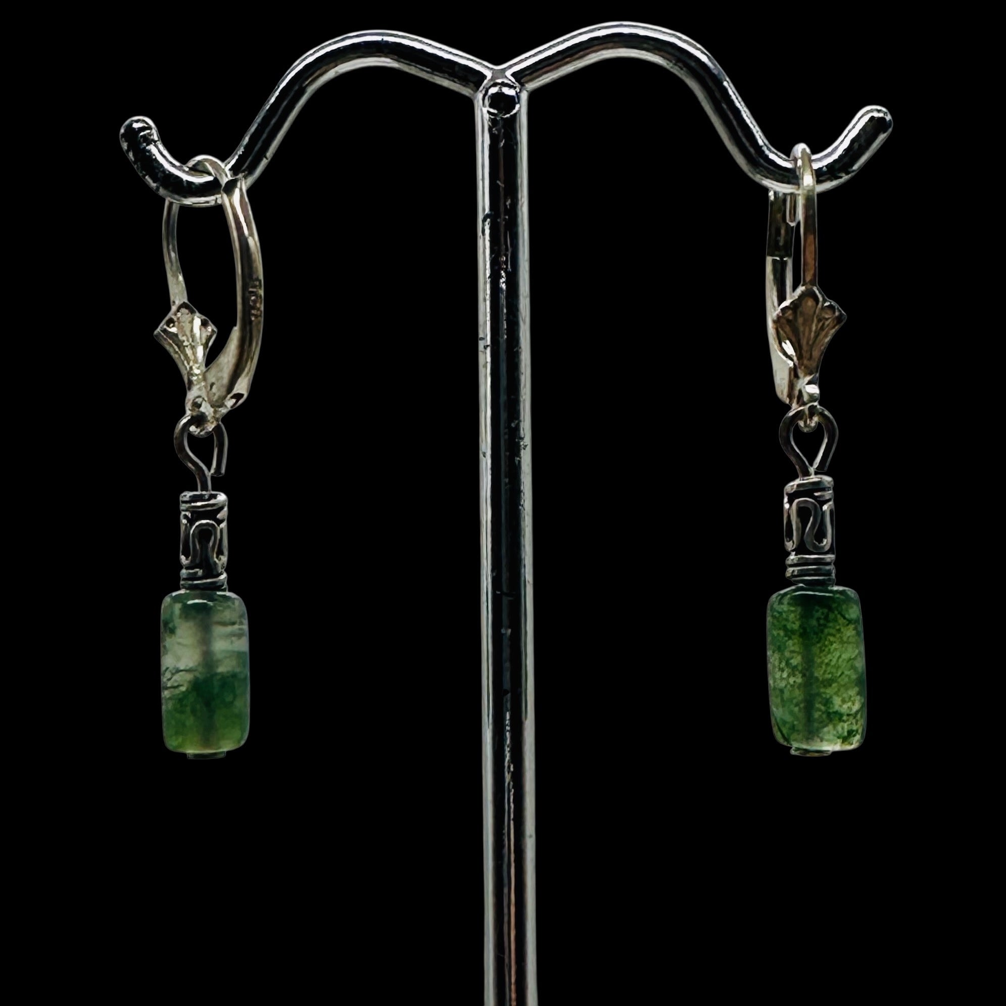 Moss Agate Healing Earrings ' Sterling Silver Lever Back ' Growth & Renewal Jewelry