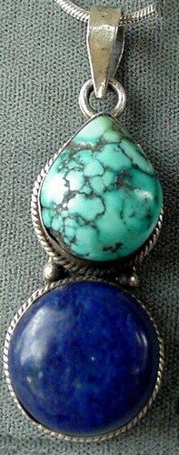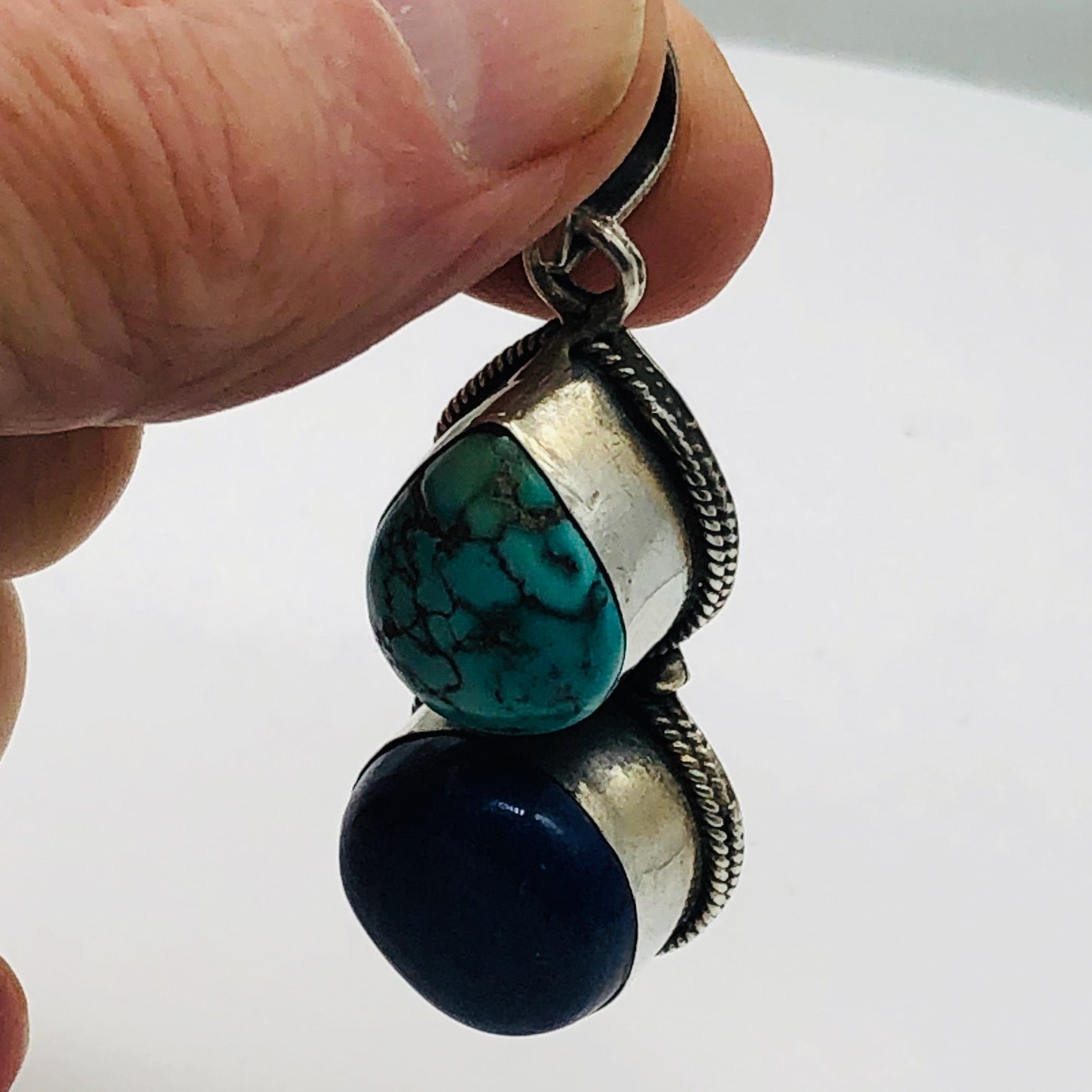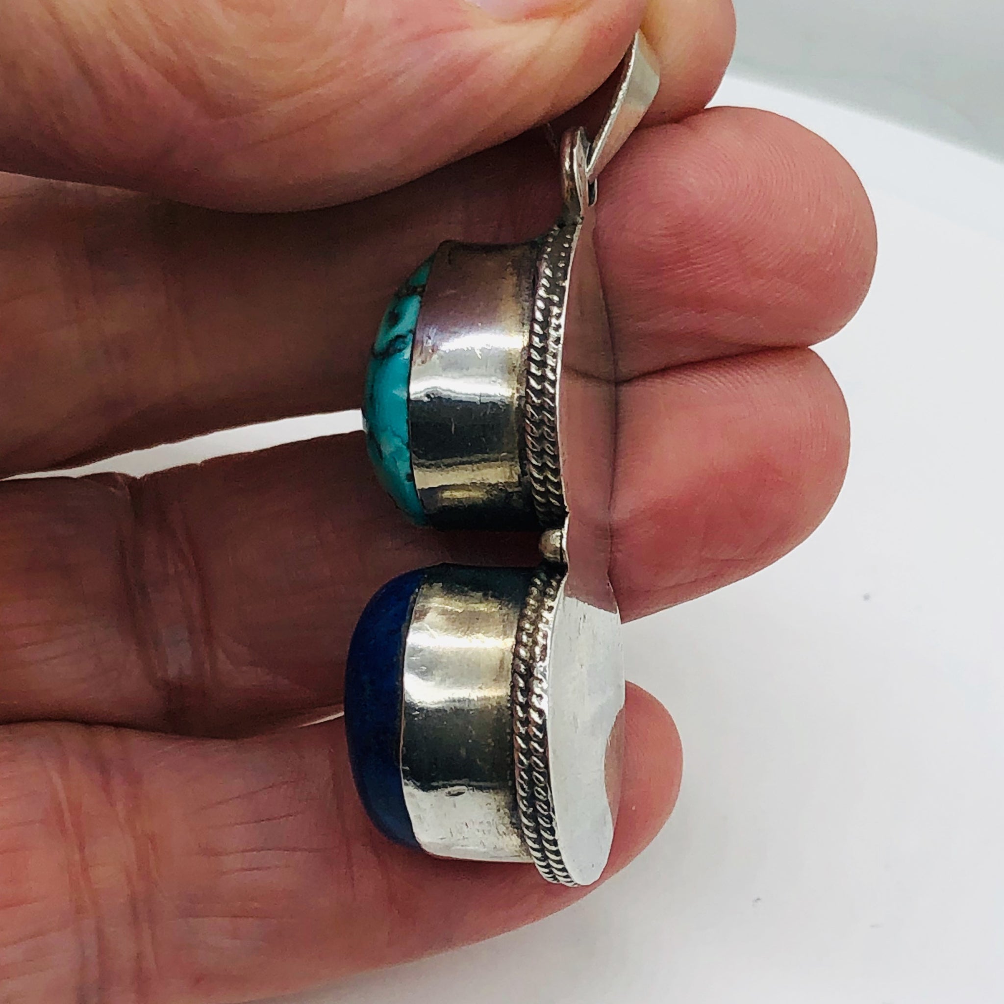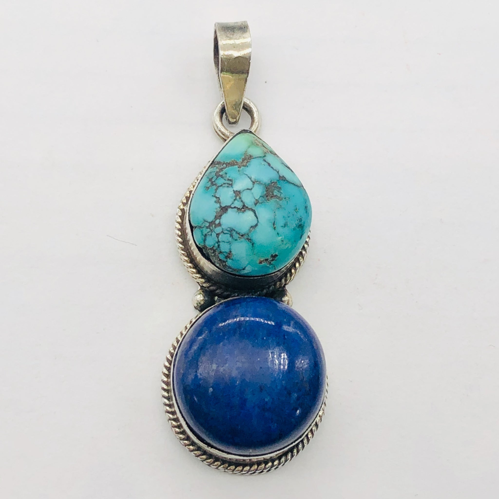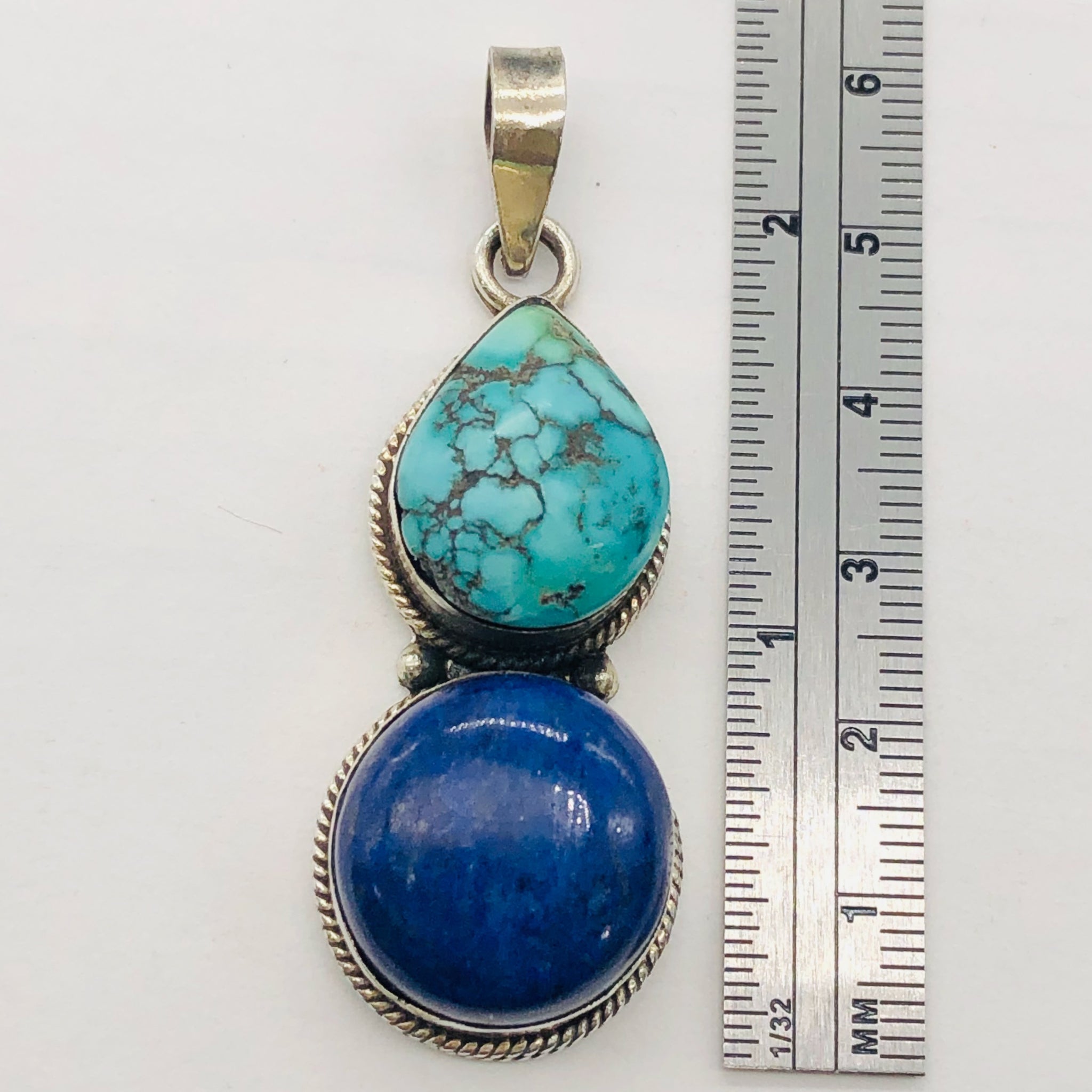 THIS IS A HIGH QUALITY SOLID STERLING PENDANT SET WITH GENUINE TURQUOISE & LAPIS STONES!!