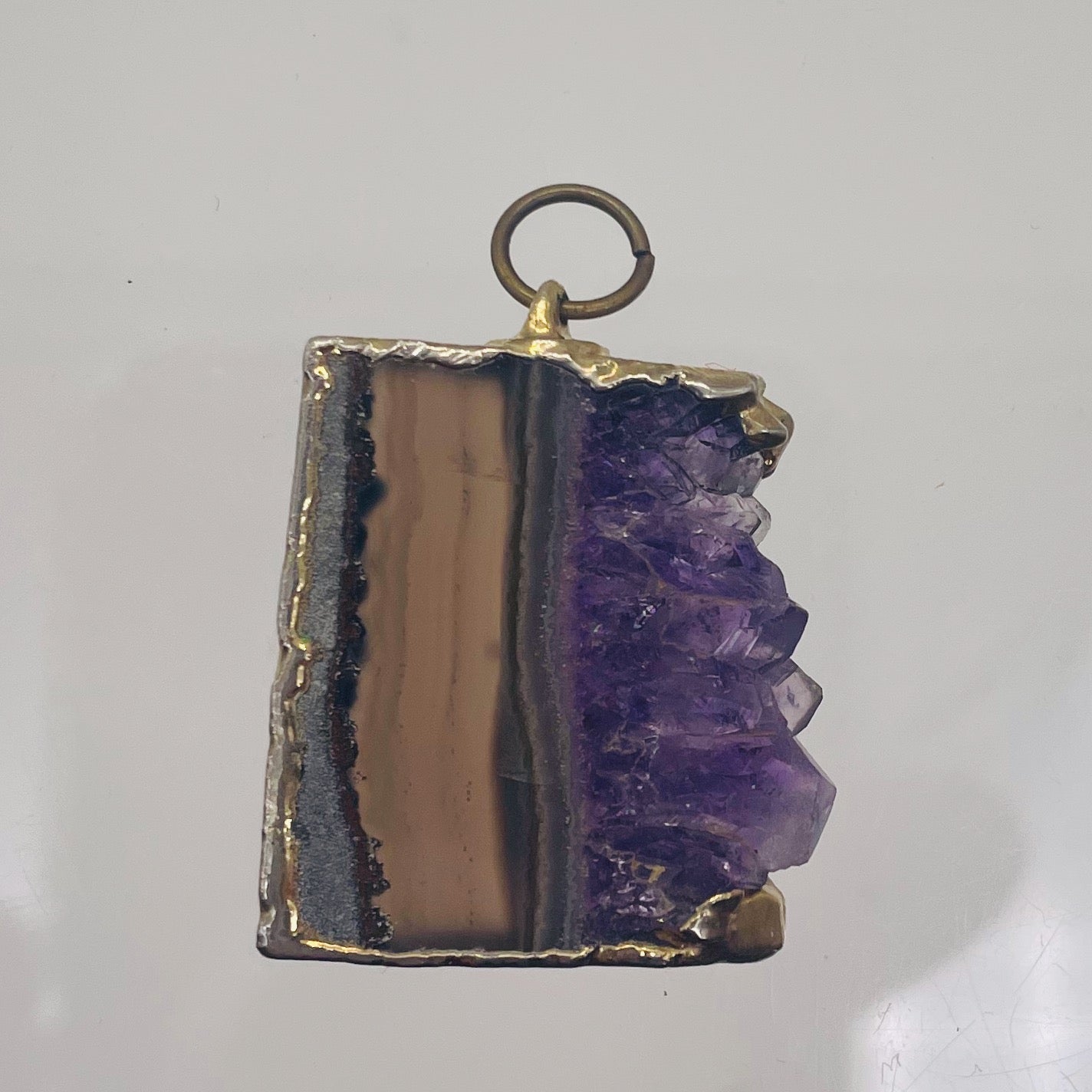 Material: Amethyst Crystal Slice, 18K Yellow Gold Frame