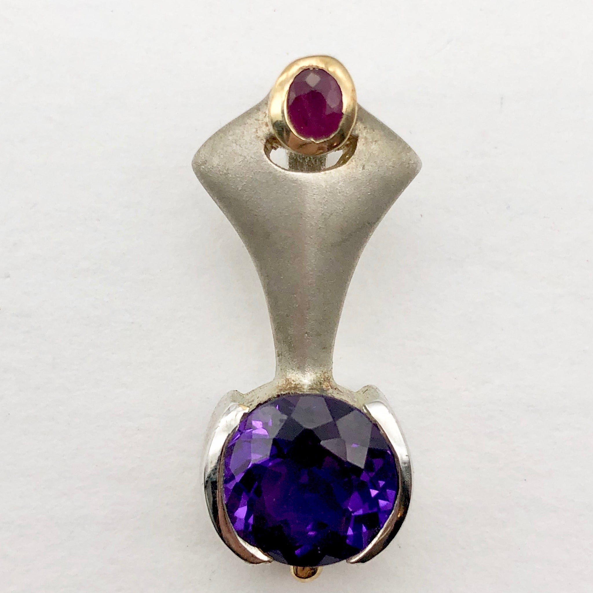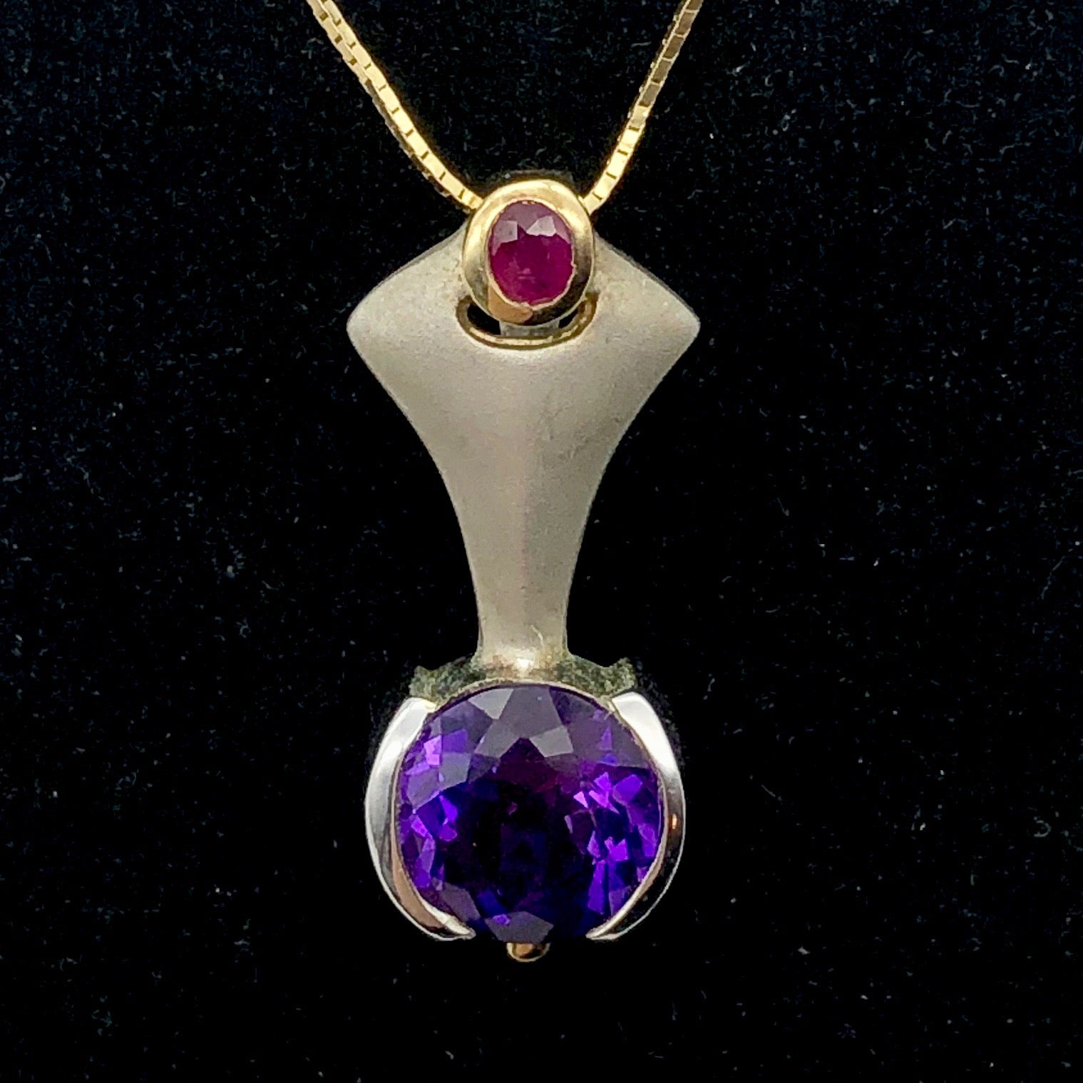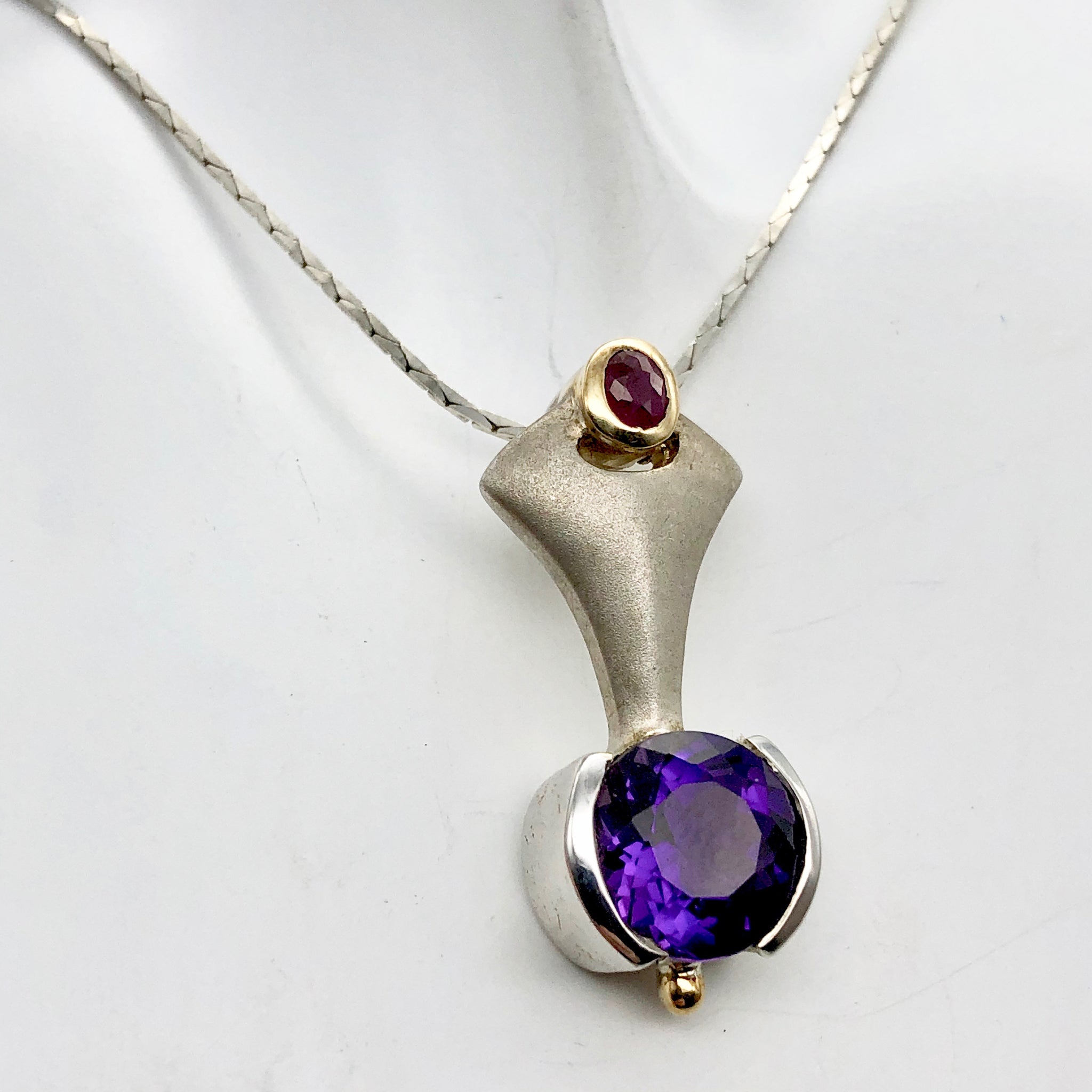 Beautiful Amethyst Sterling Silver pendant necklace with Ruby in Gold accents