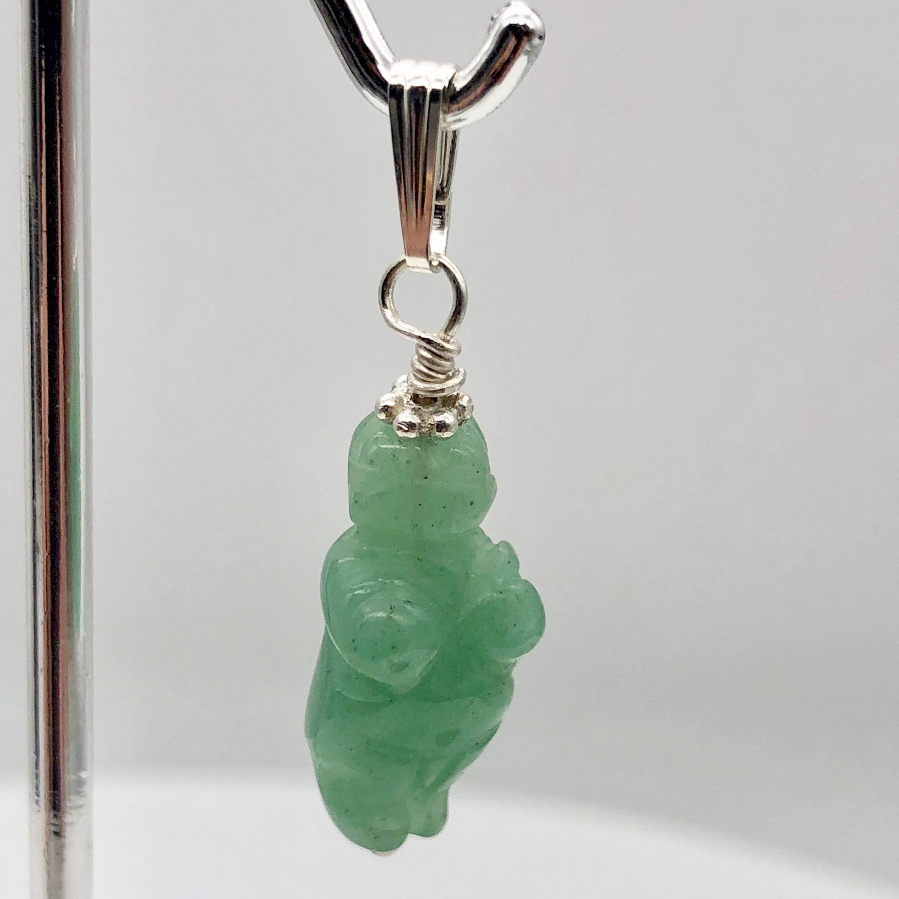 FERTILE! Hand Carved Aventurine Goddess of Willendorf Sterling Silver Pendant'!!