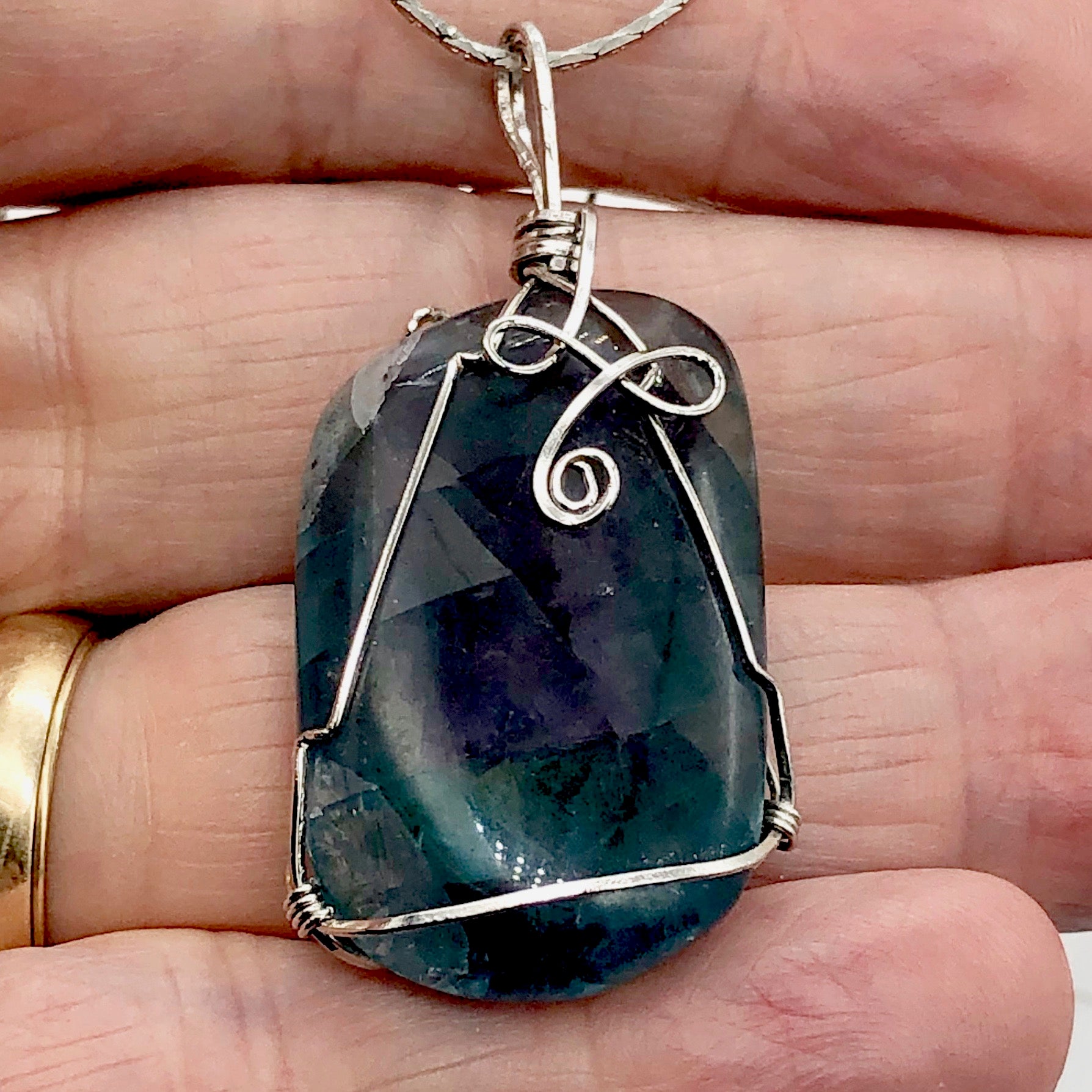 LOVELY Sterling Silver Wire-wrapped BLUE FLUORITE PENDANT!!!
