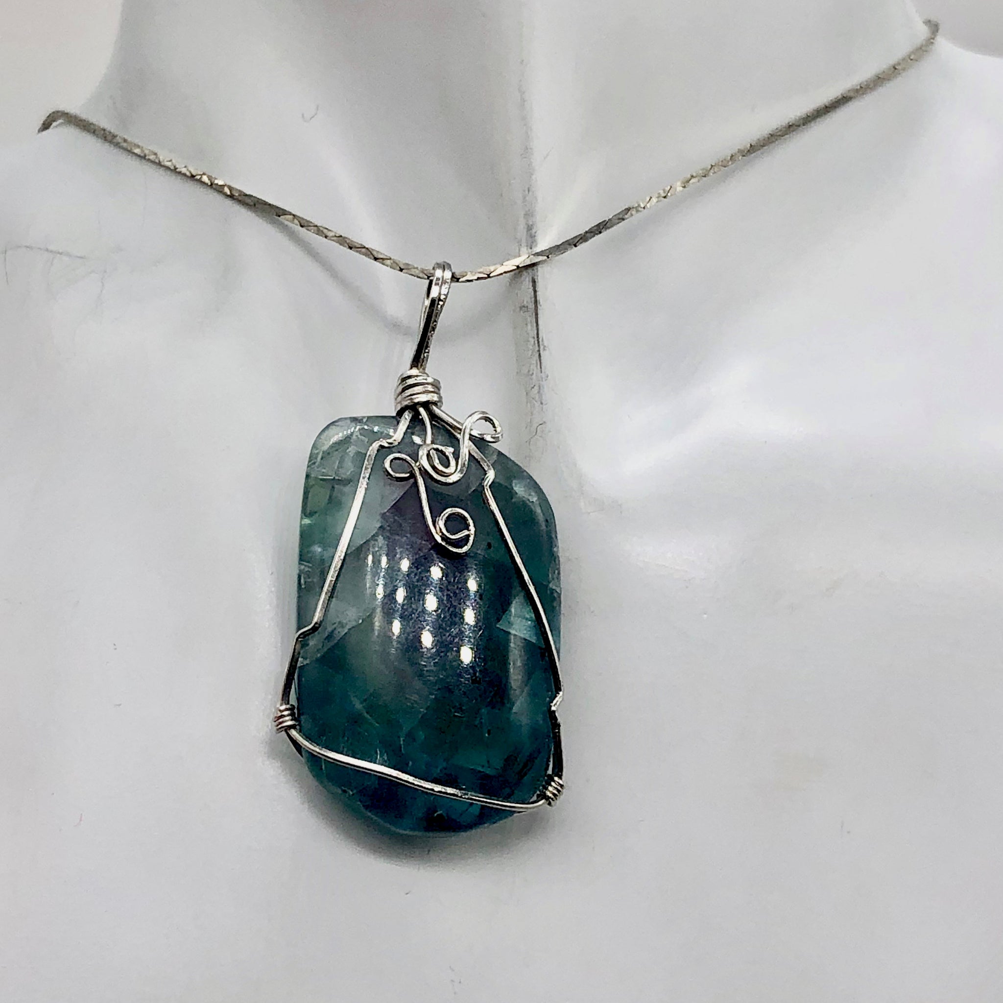 Material Type: Blue Fluorite Wire Wrap Sterling Silver