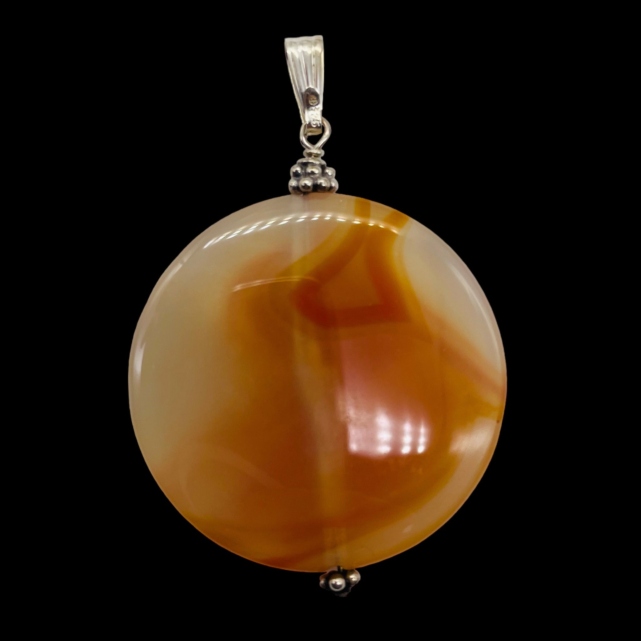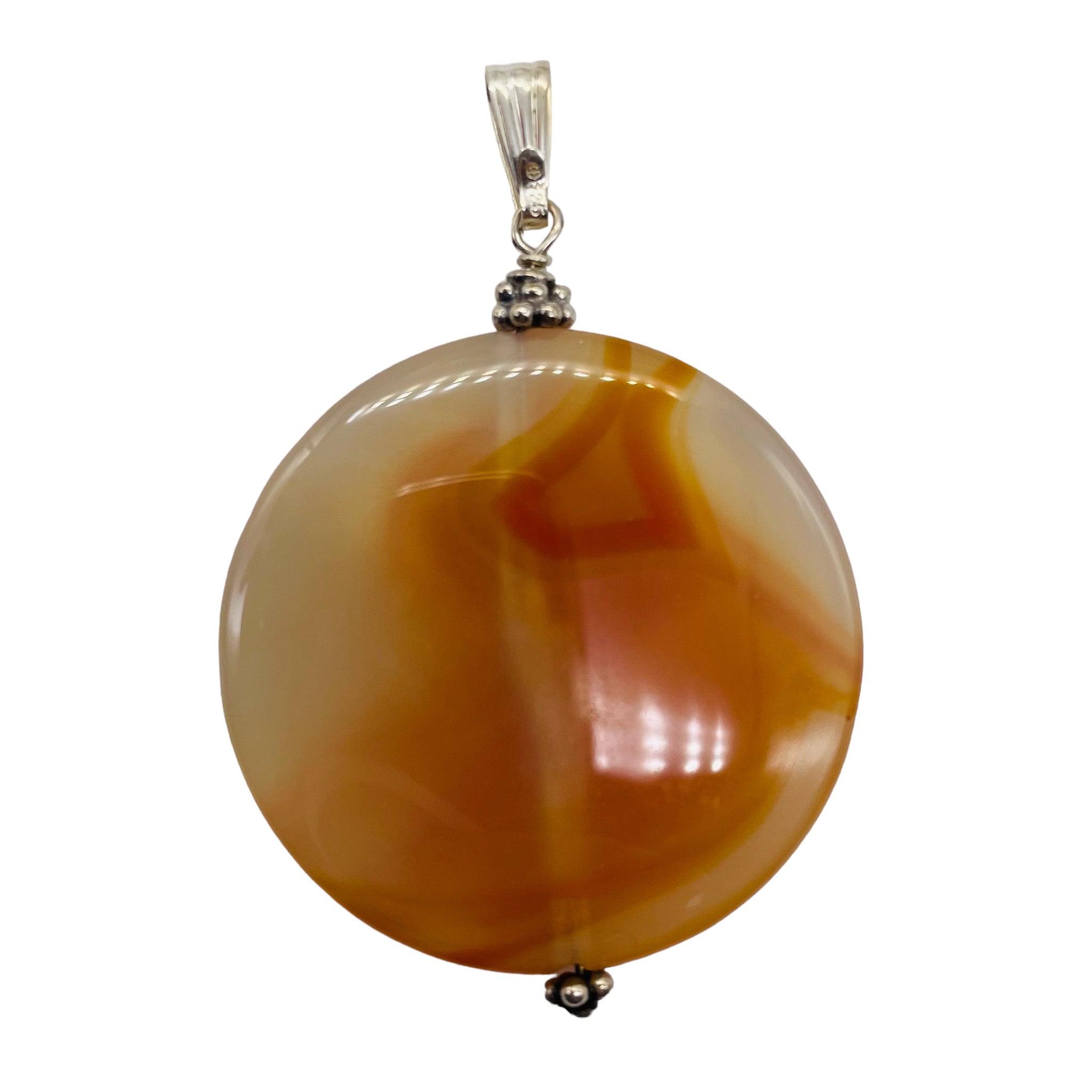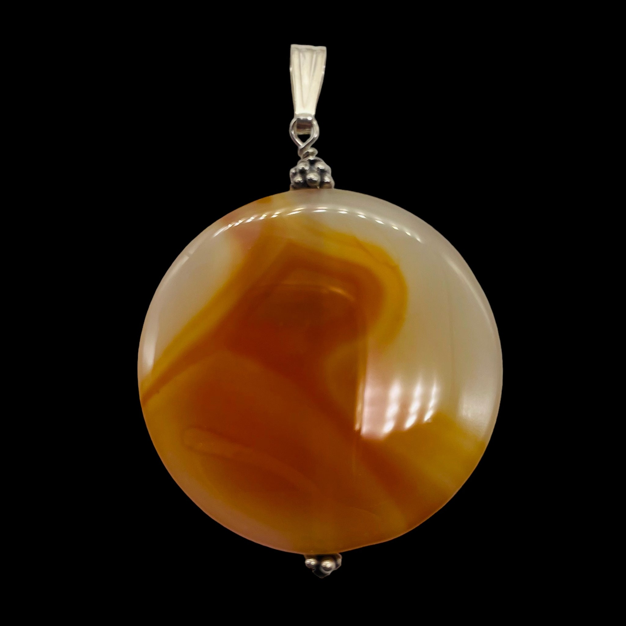 Orange White Carnelian 2" Long Round Pendant - 40mm - Symbol of Bold Energy and Joy