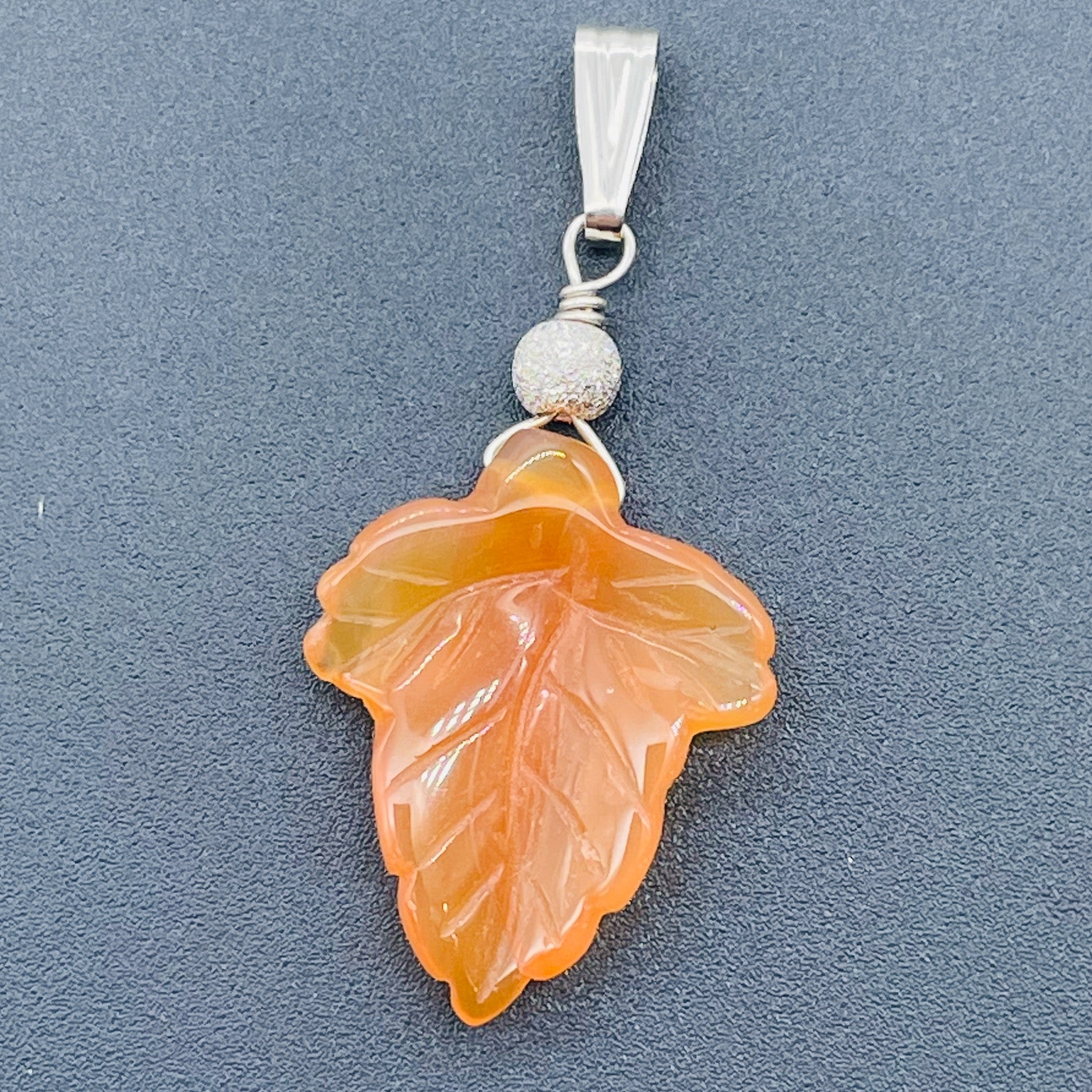 The carving on this pendant is wonderful and works with the stone. This gorgeous carnelian stone leaf pendant will make a wonderful gift for you, your friend, your girlfriend or your love.