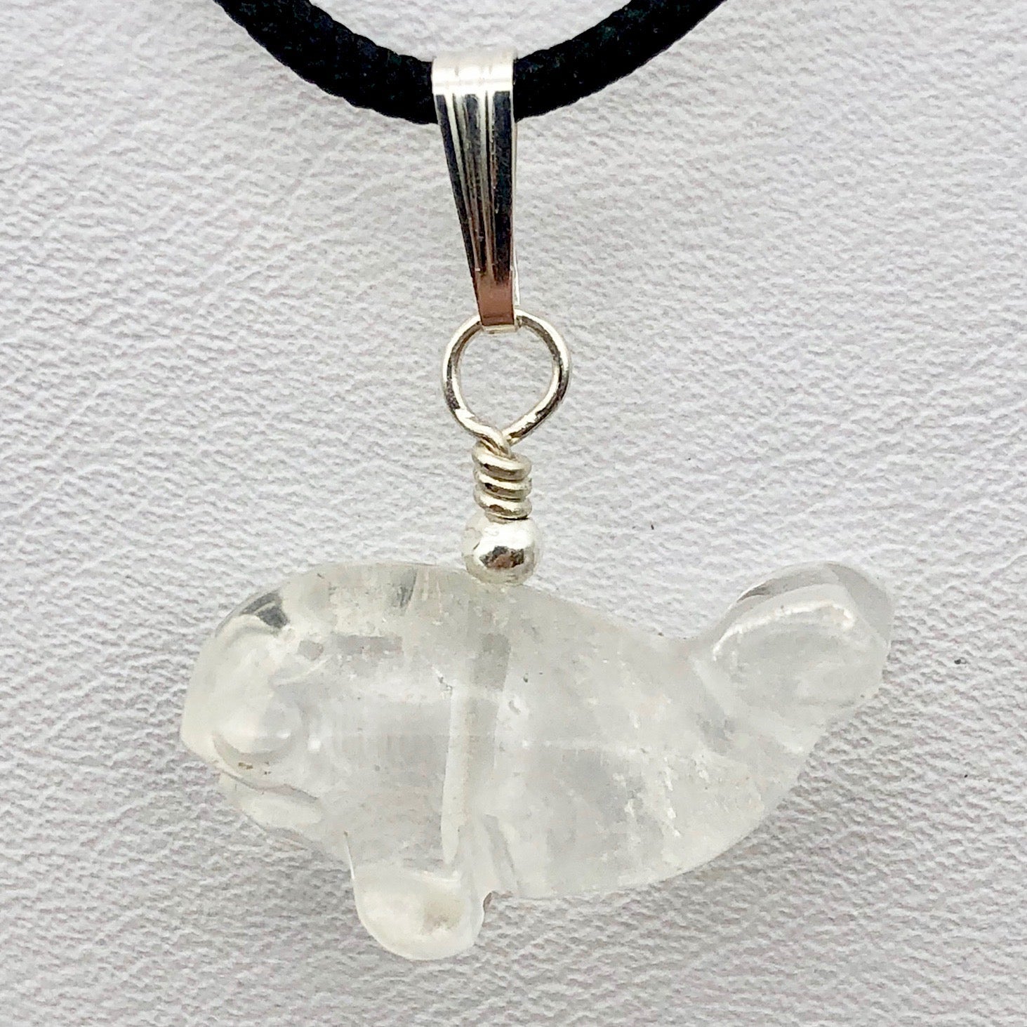 This is for one handmade custom Quartz Whale Pendant with Sterling Silver findings. This Fetish Pendant is wonderful and will bring clarity of intention to the wearer!