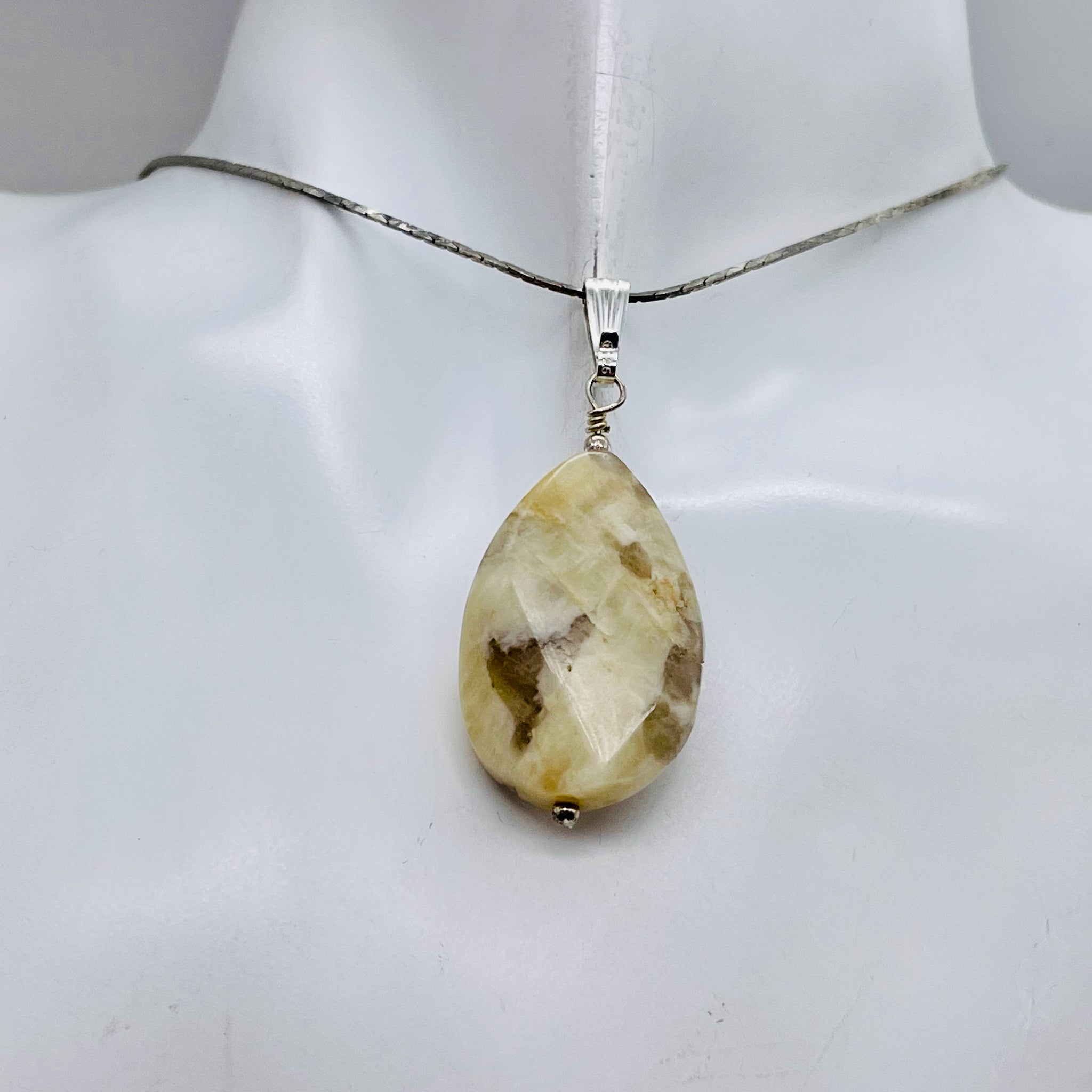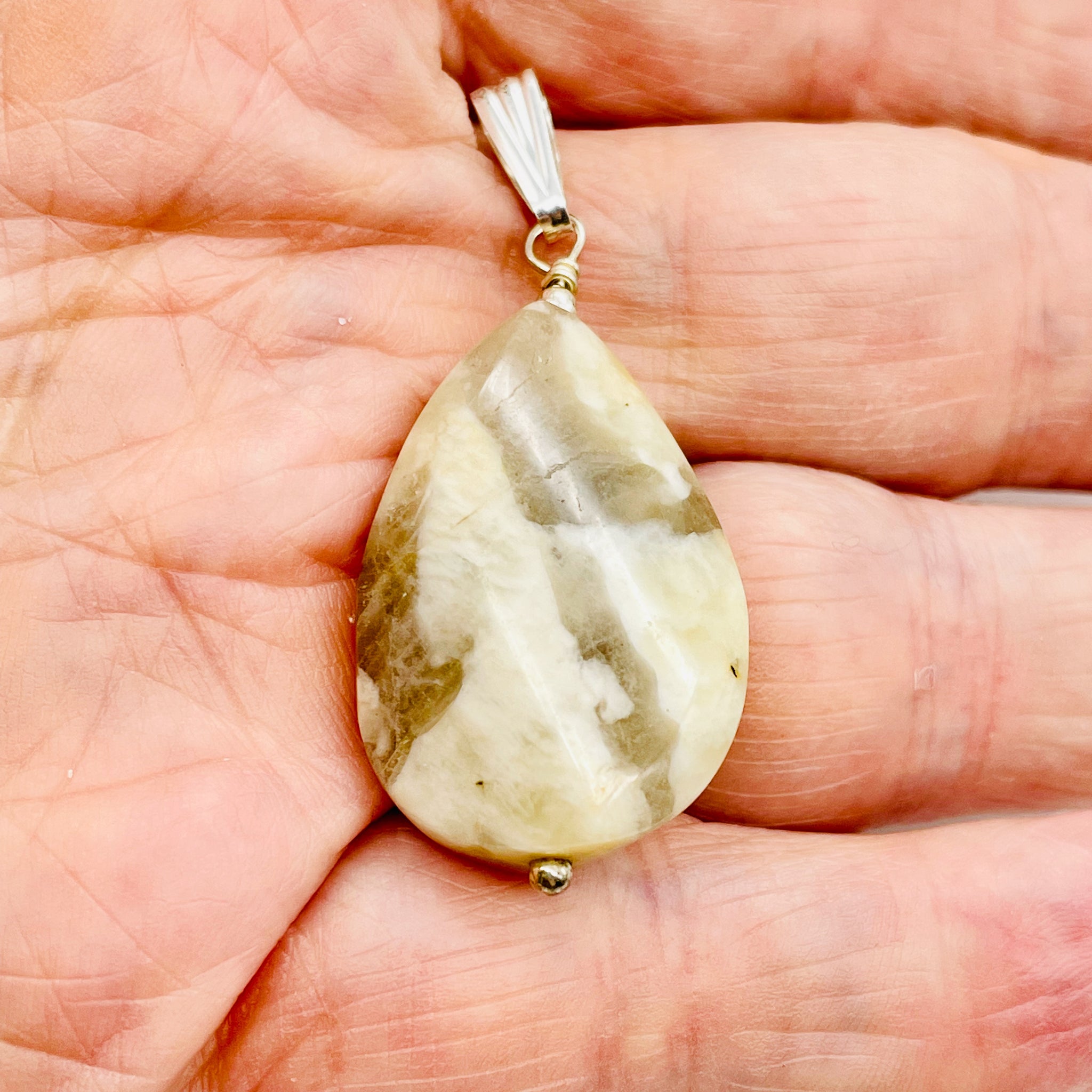 This beautiful Feldspar Quartz Sterling Silver pendant is one of a kind. You will never see another like it. The stone has clear areas of the quartz you can look into and imagine what could be there. Truly amazing.