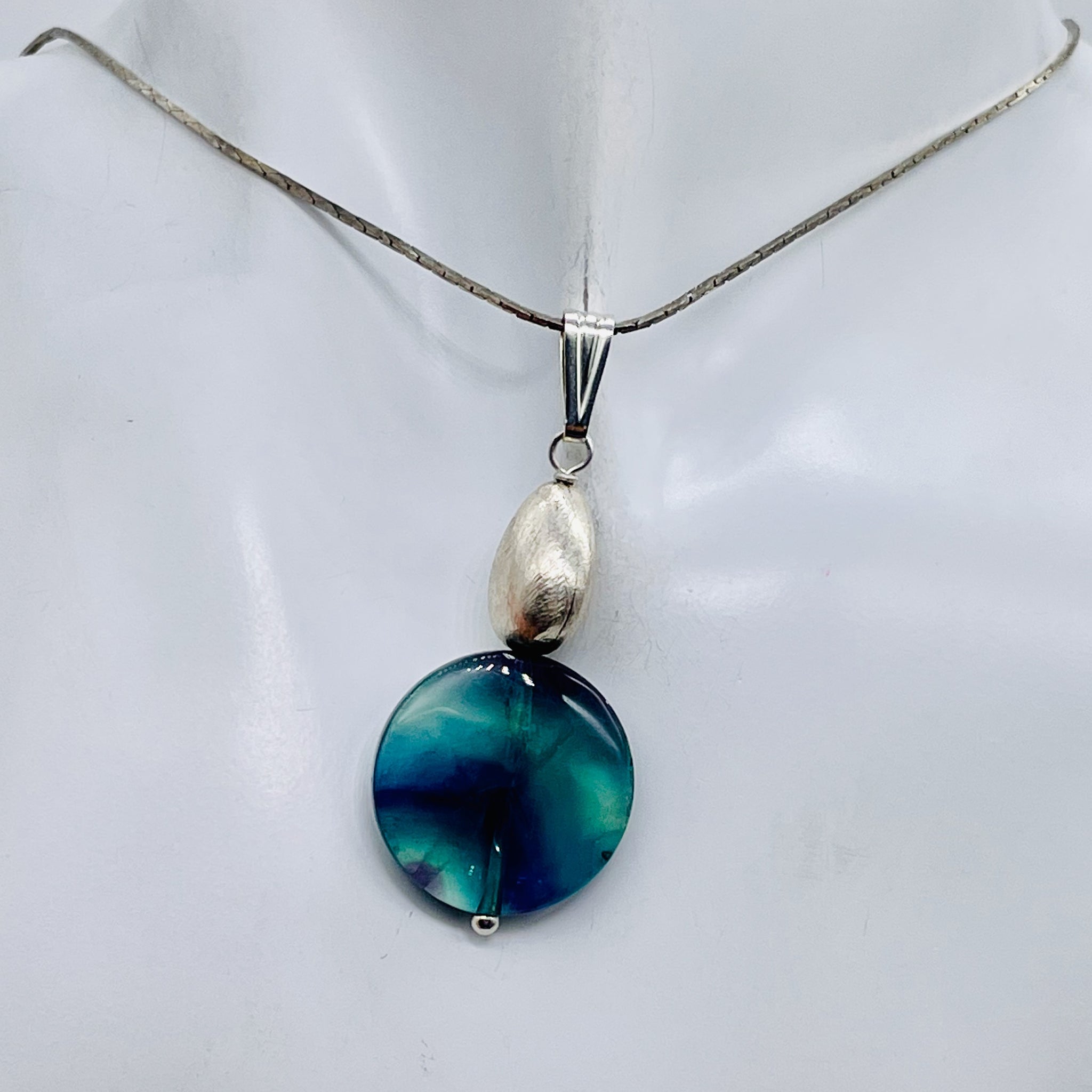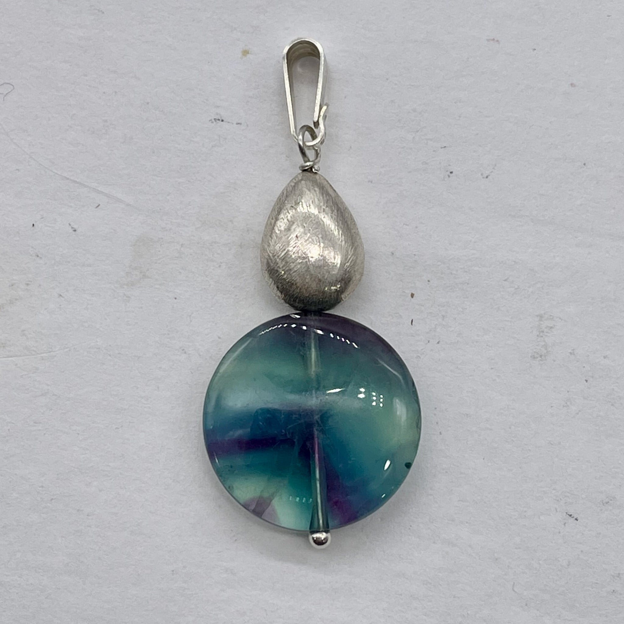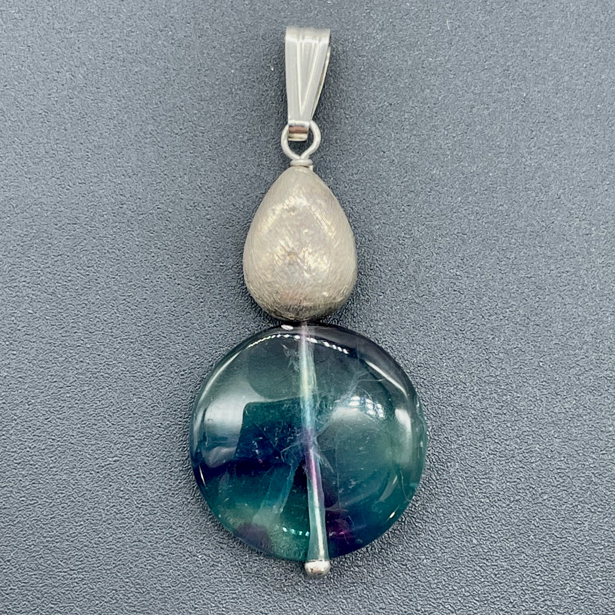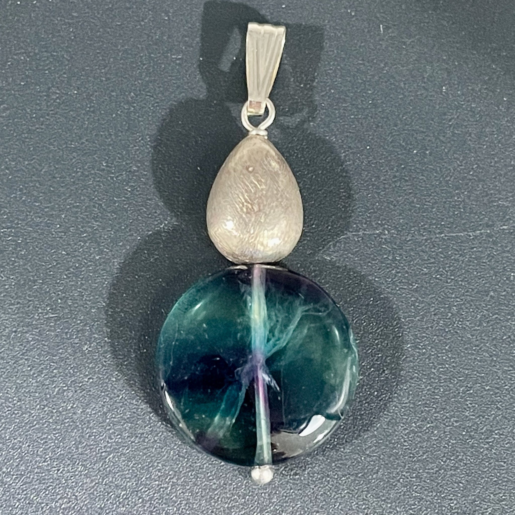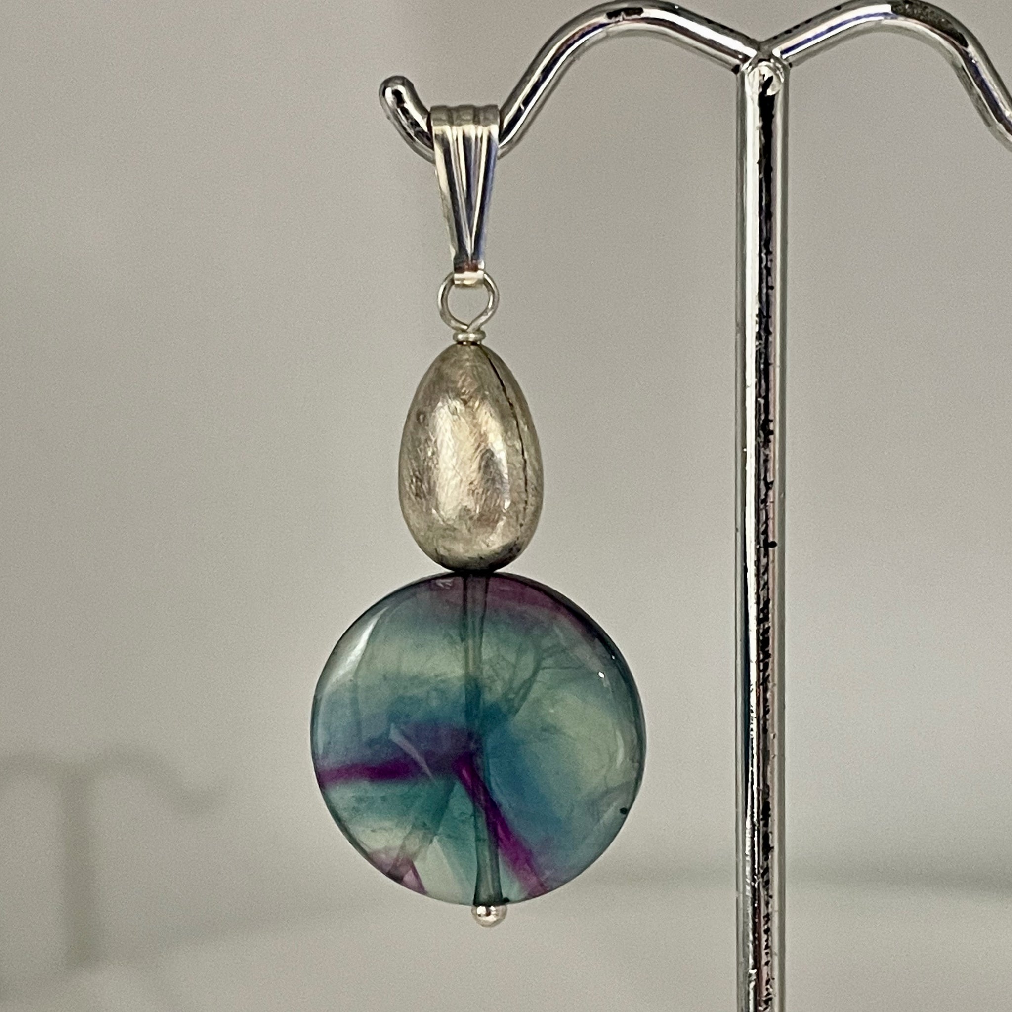 FANTASTIC! Blue/Purple Unique FLUORITE Focal Bead combined with Sterling Silver into a custom one of a kind pendant!