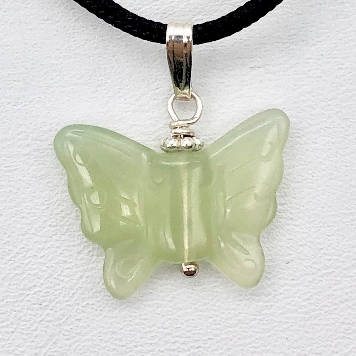 This is for a hand made Aventurine BUTTERFLY and Sterling Silver Pendant! The hand carving is exquisitely executed and makes a wonderful pendant that will add beauty and uniqueness to any wardrobe. Don't miss out on this charming pendant!!