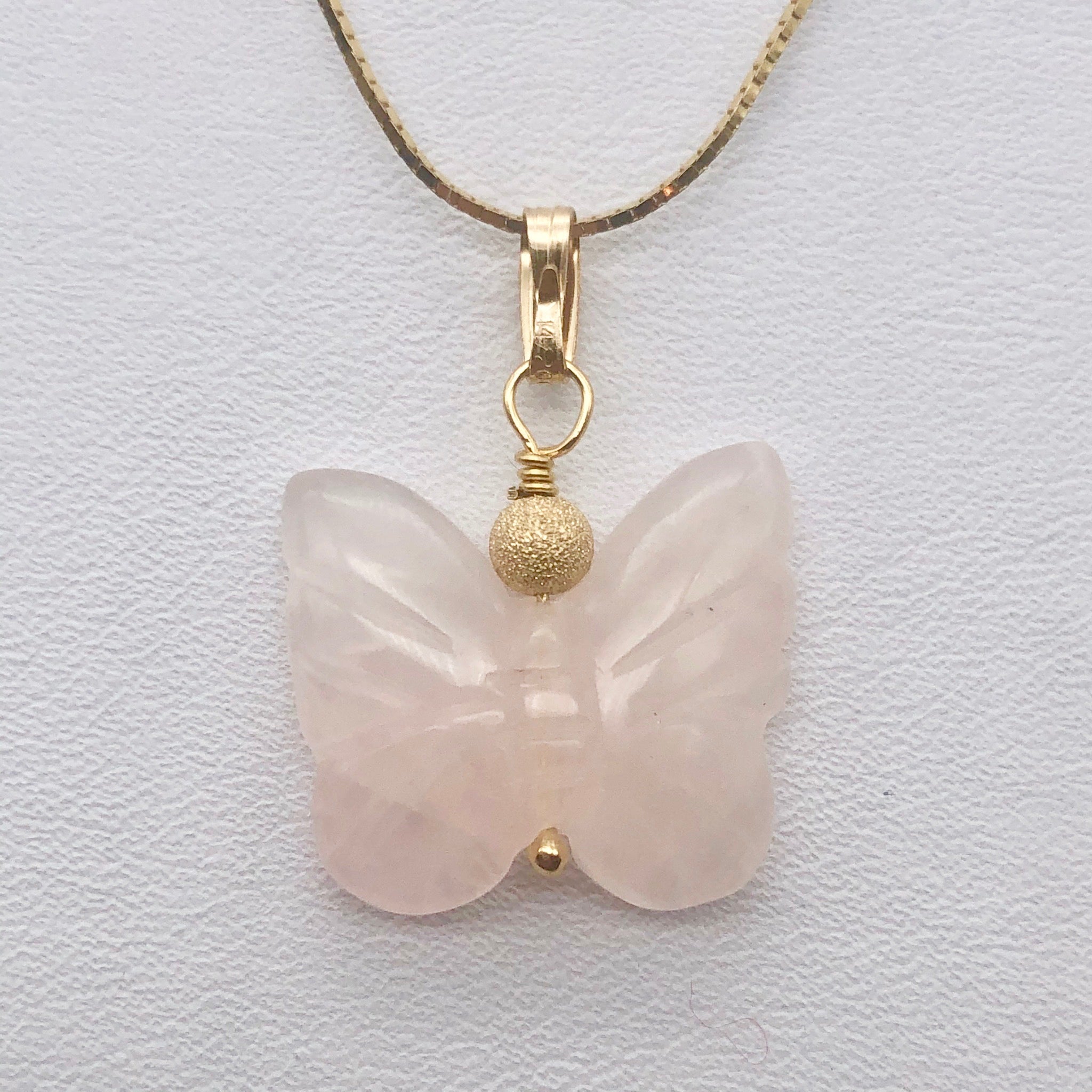 Pretty in Pink Rose Quartz Butterfly 14Kgf Pendant!
