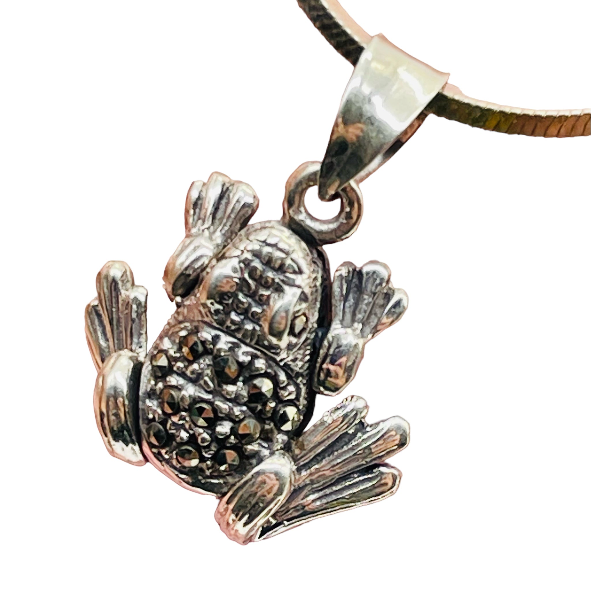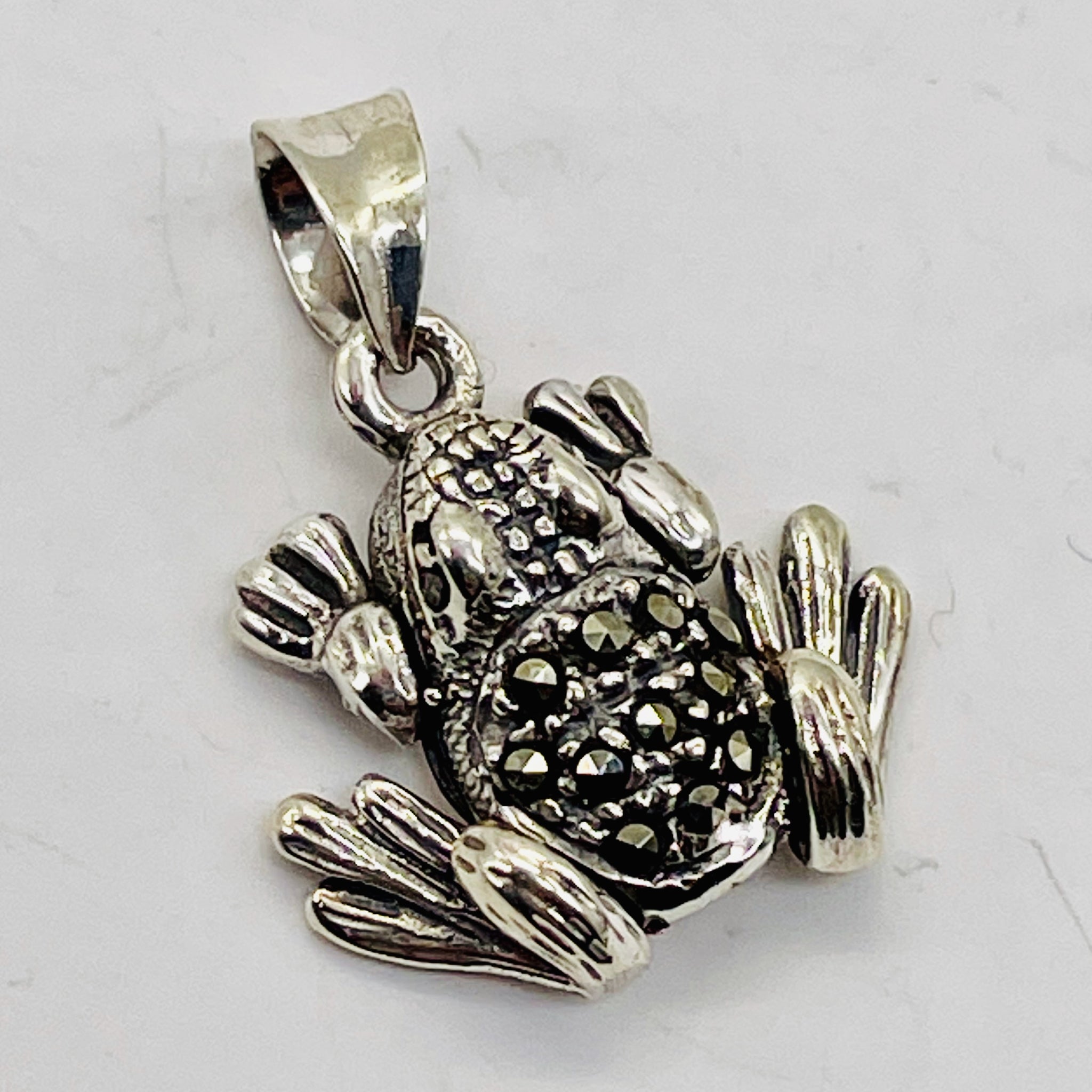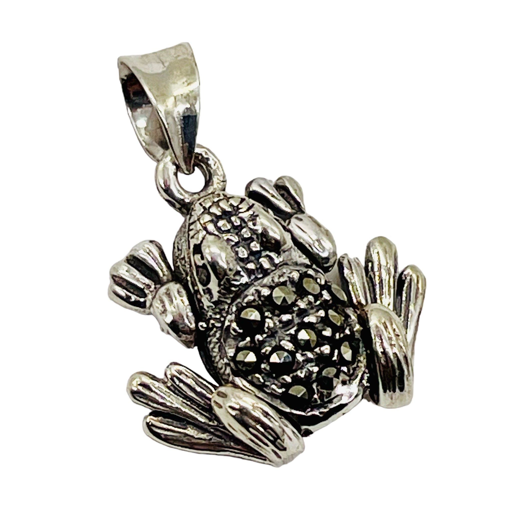 Frog Marcasite Sterling Silver Pendant - 1" Long - Symbol of Healing and Spirituality