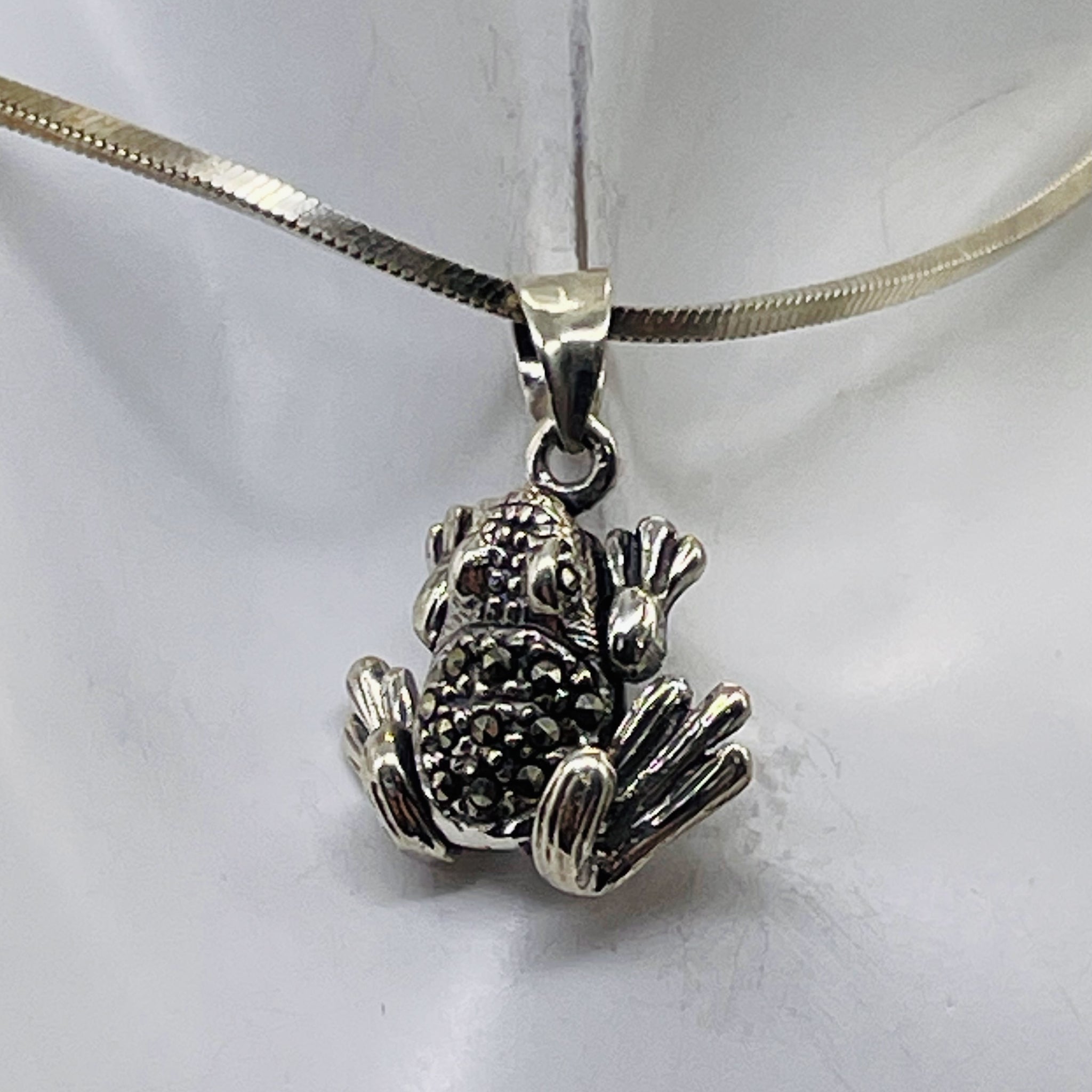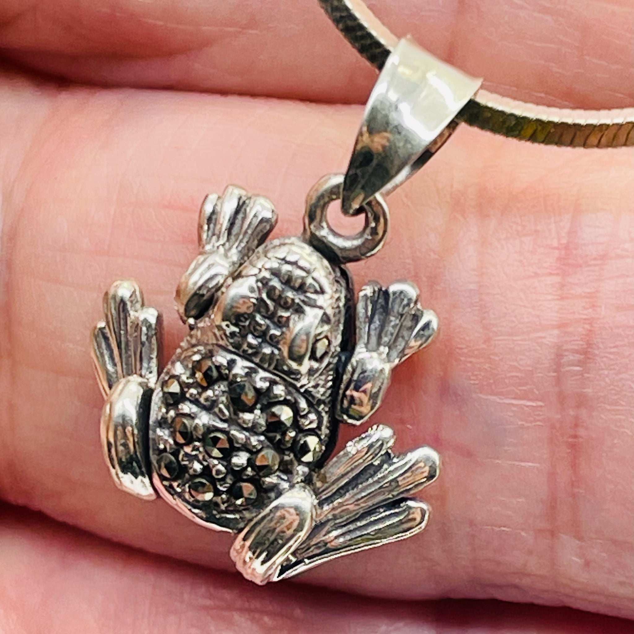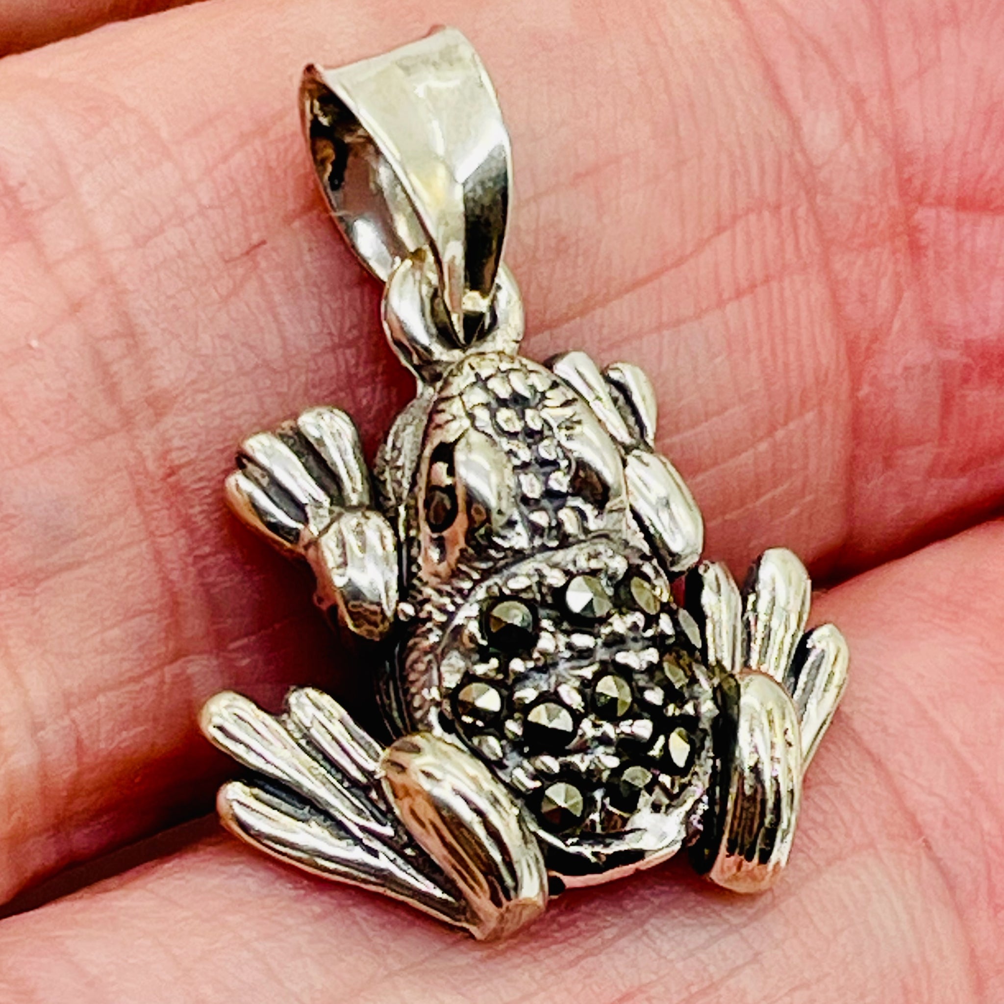 Frog Marcasite Sterling Silver Pendant - 1" Long - Symbol of Healing and Spirituality