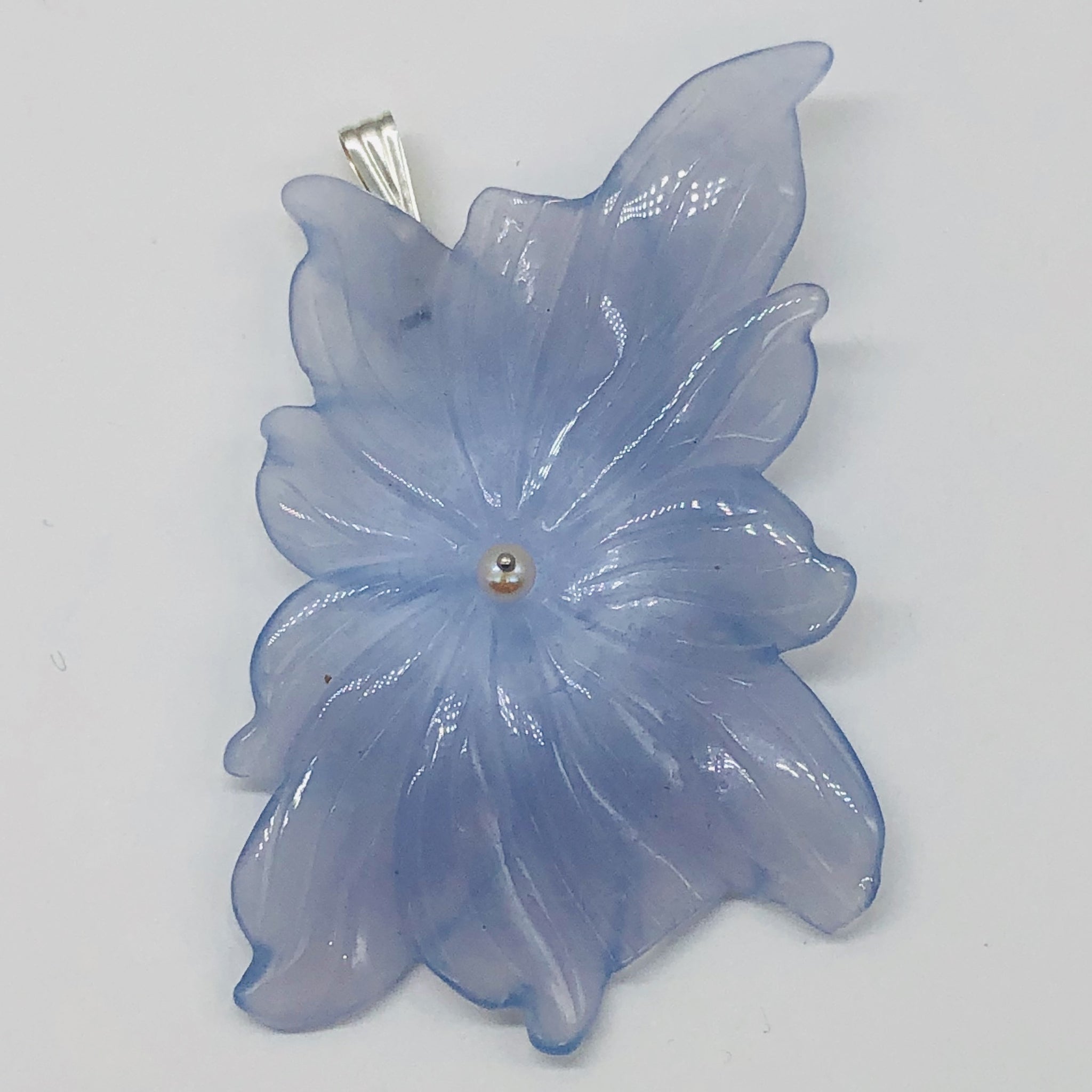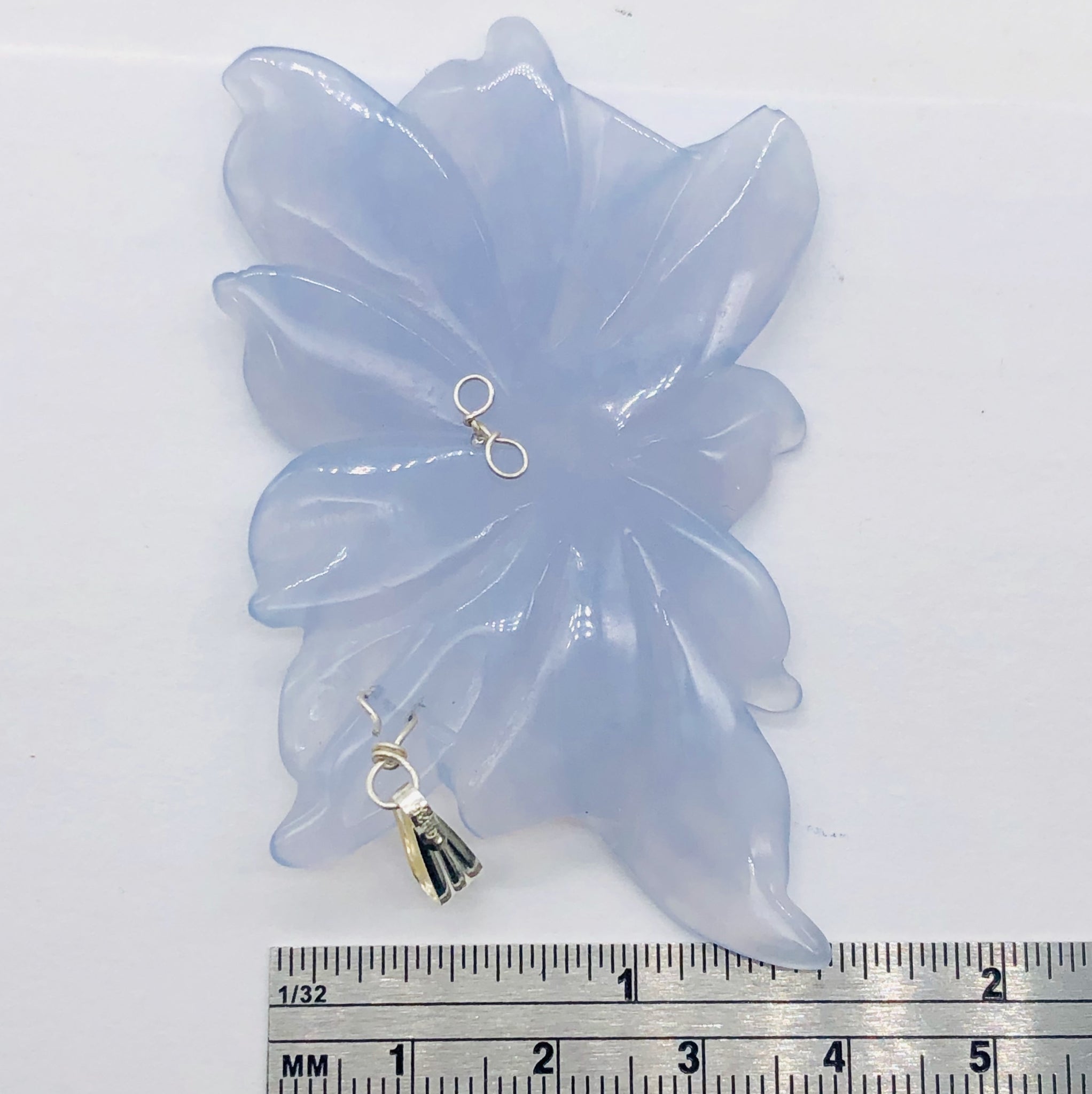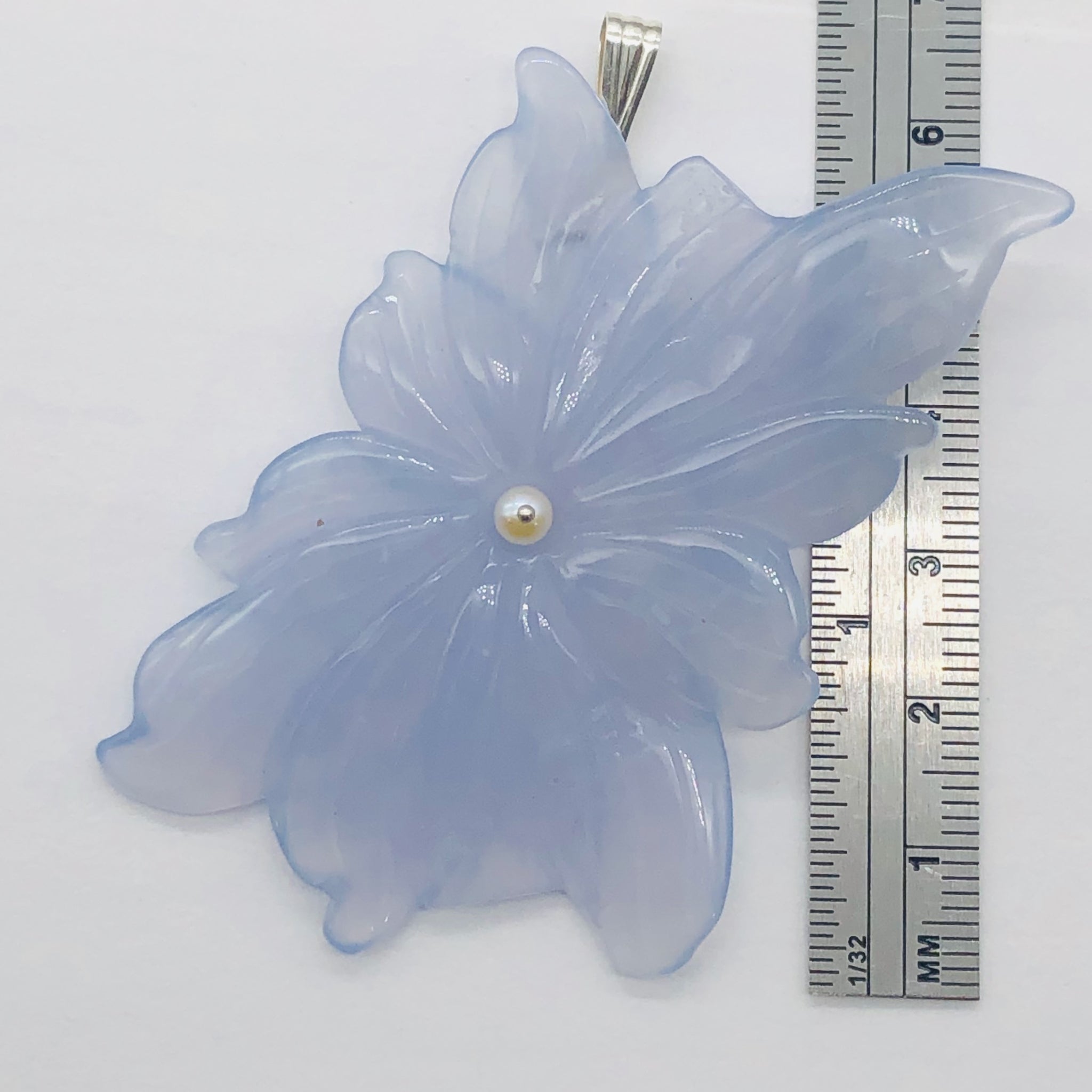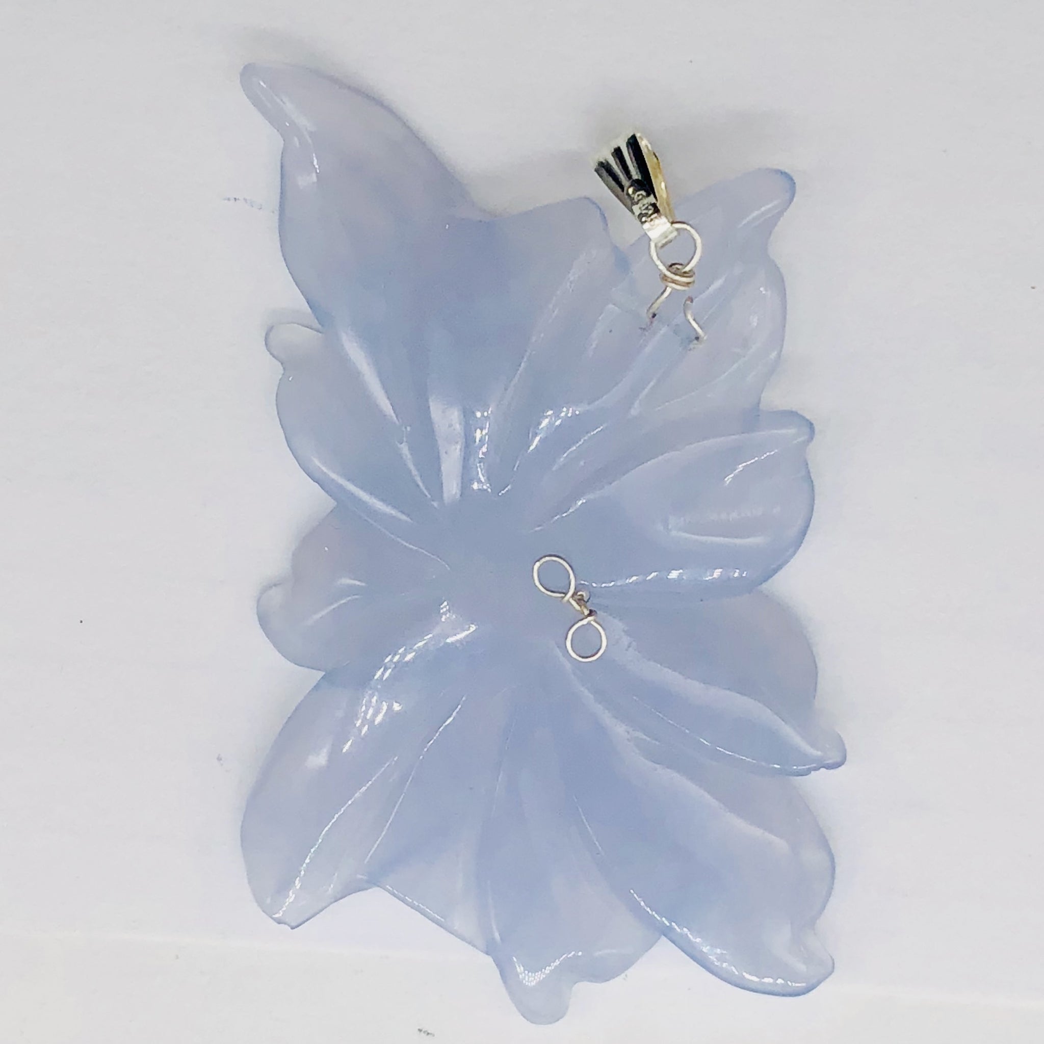 Hand Carved Blue Chalcedony Flower Sterling Silver Pendant! | 2 1/2" Long |