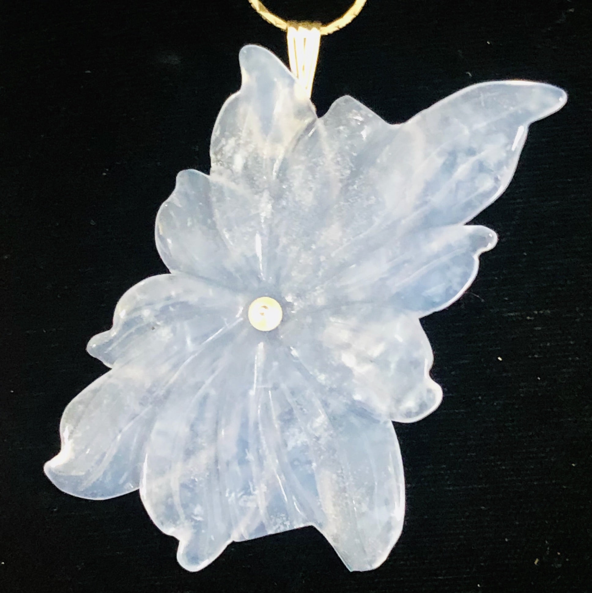 EXTRAORDINARILY RARE GEMMY BLUE CHALCEDONY FLOWER PENDANT!