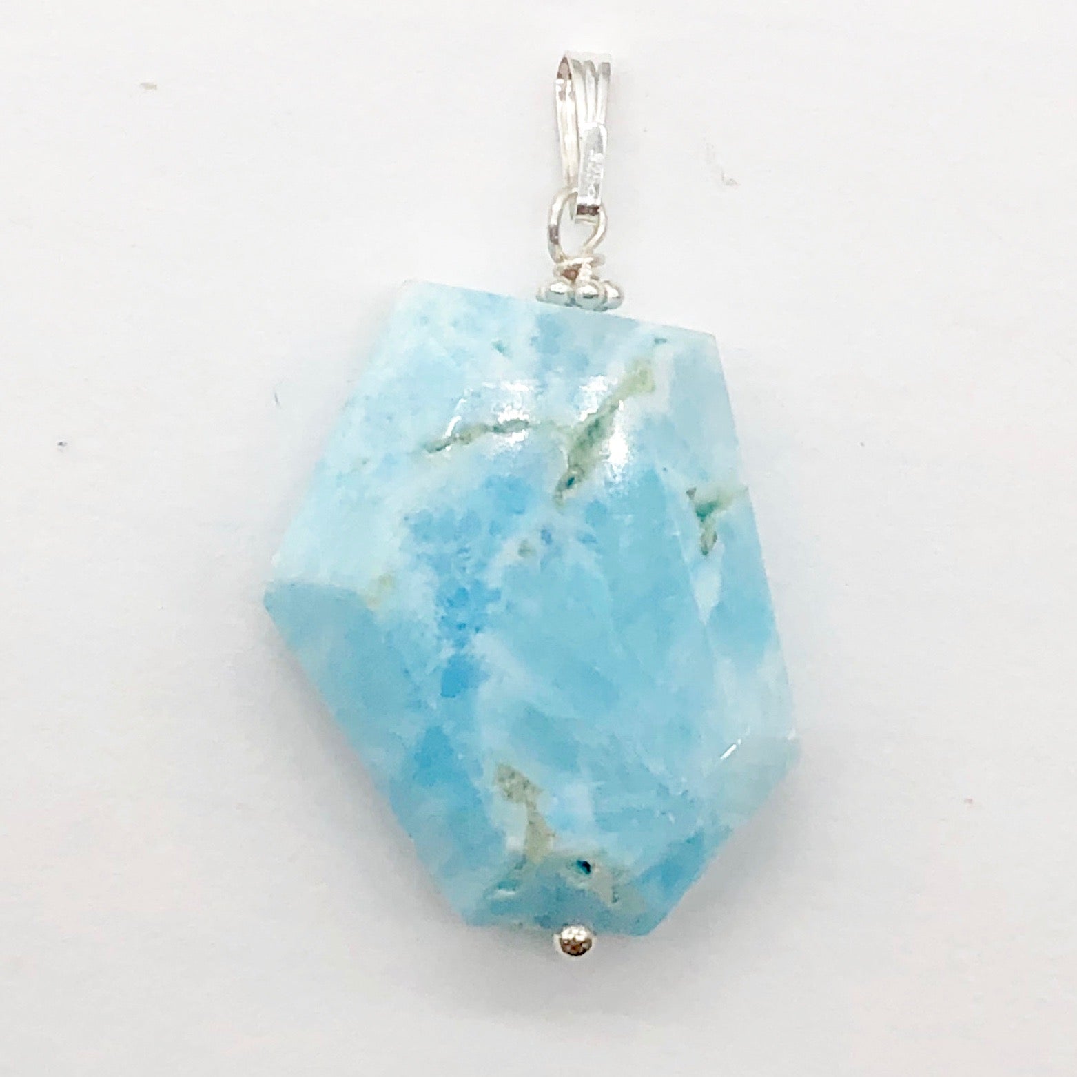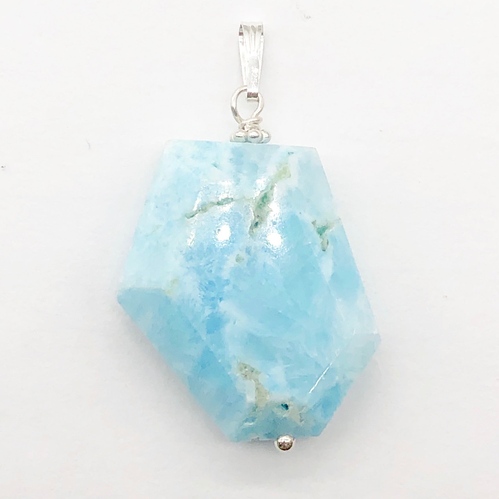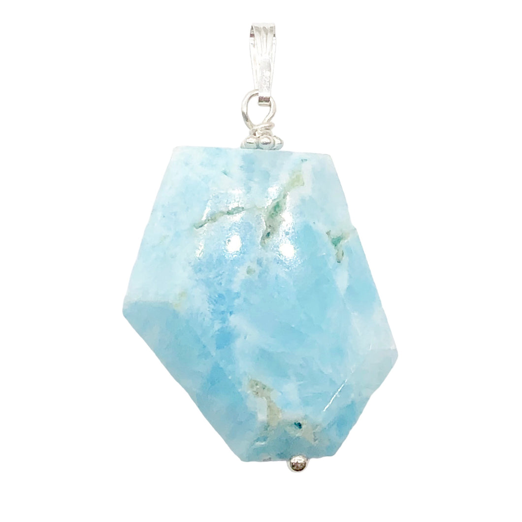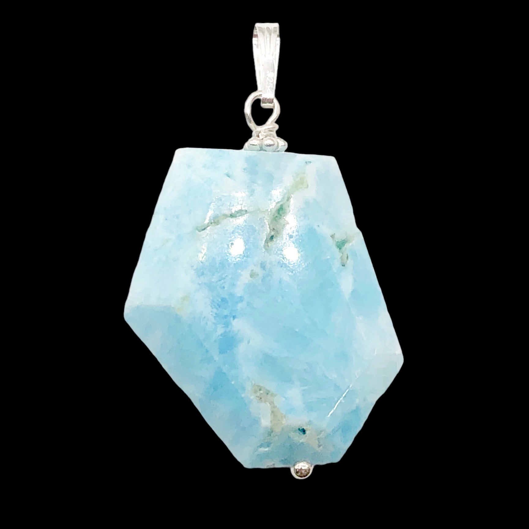 This is a natural Hemimorphite pendant with Sterling Silver accents and bail.