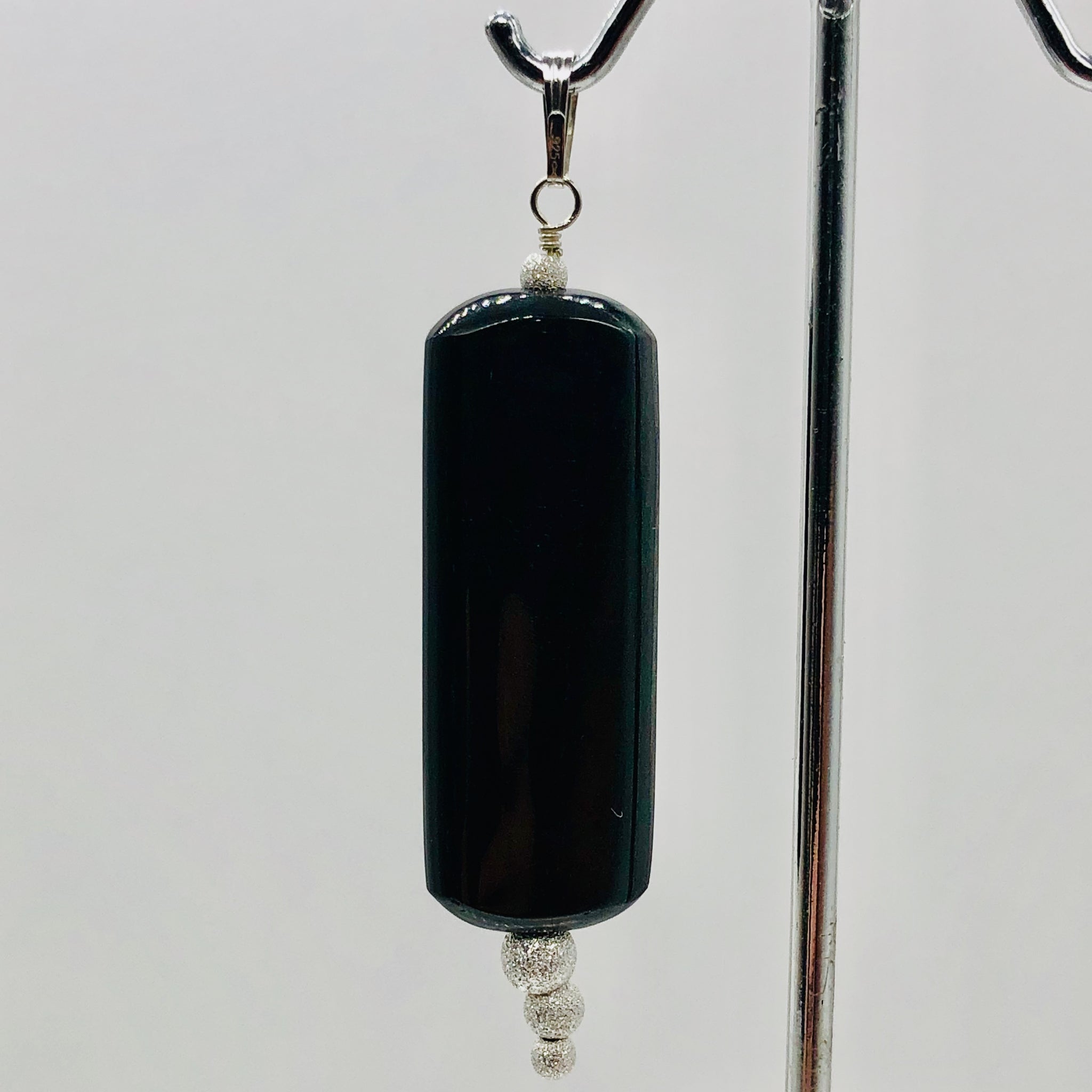 Sexy Black/Silver Hypersthene, Flat Rounded Rectangle Dangle Sterling Silver Pendant.
