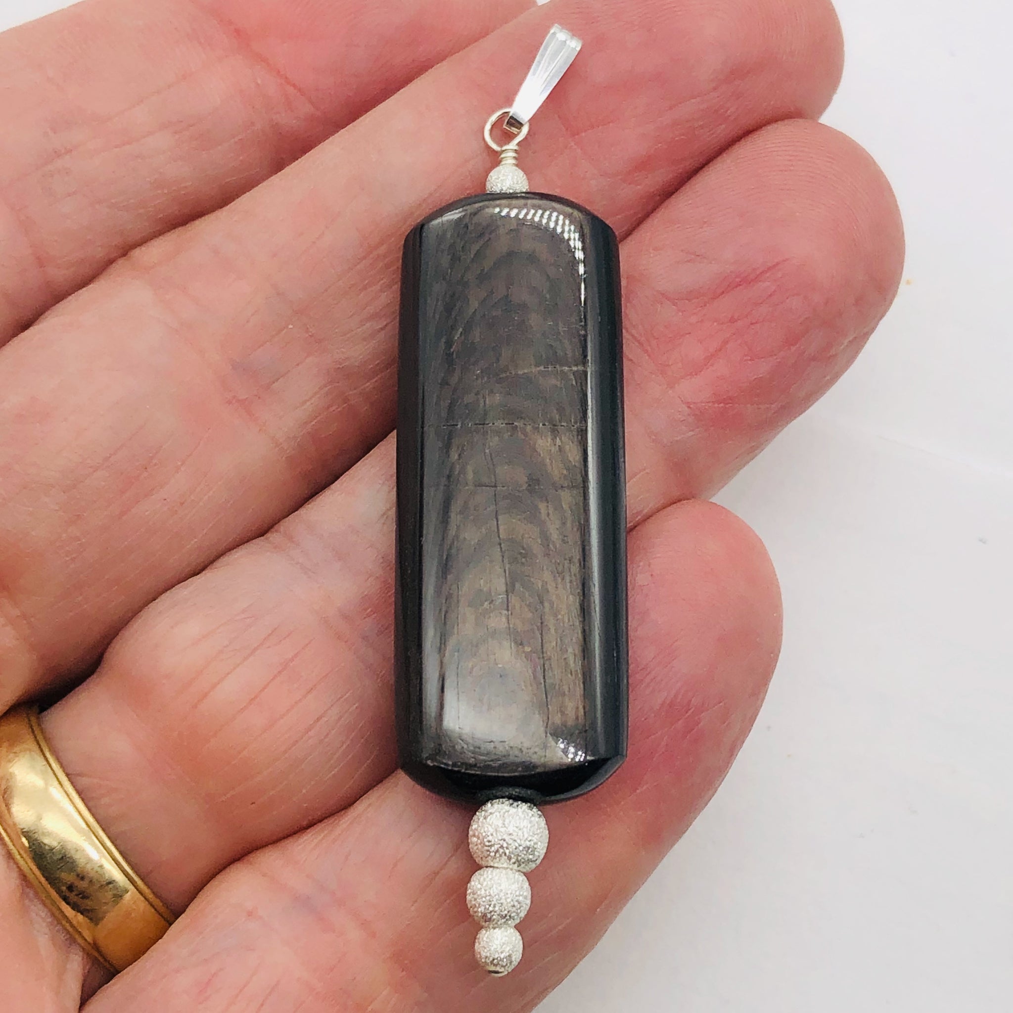 This is for one amazing HYPERSTHENE & Sterling Silver Pendant. A great gift for a friend, wife, girlfriend or yourself. This pendant will add a touch of complete uniqueness to your wardrobe.