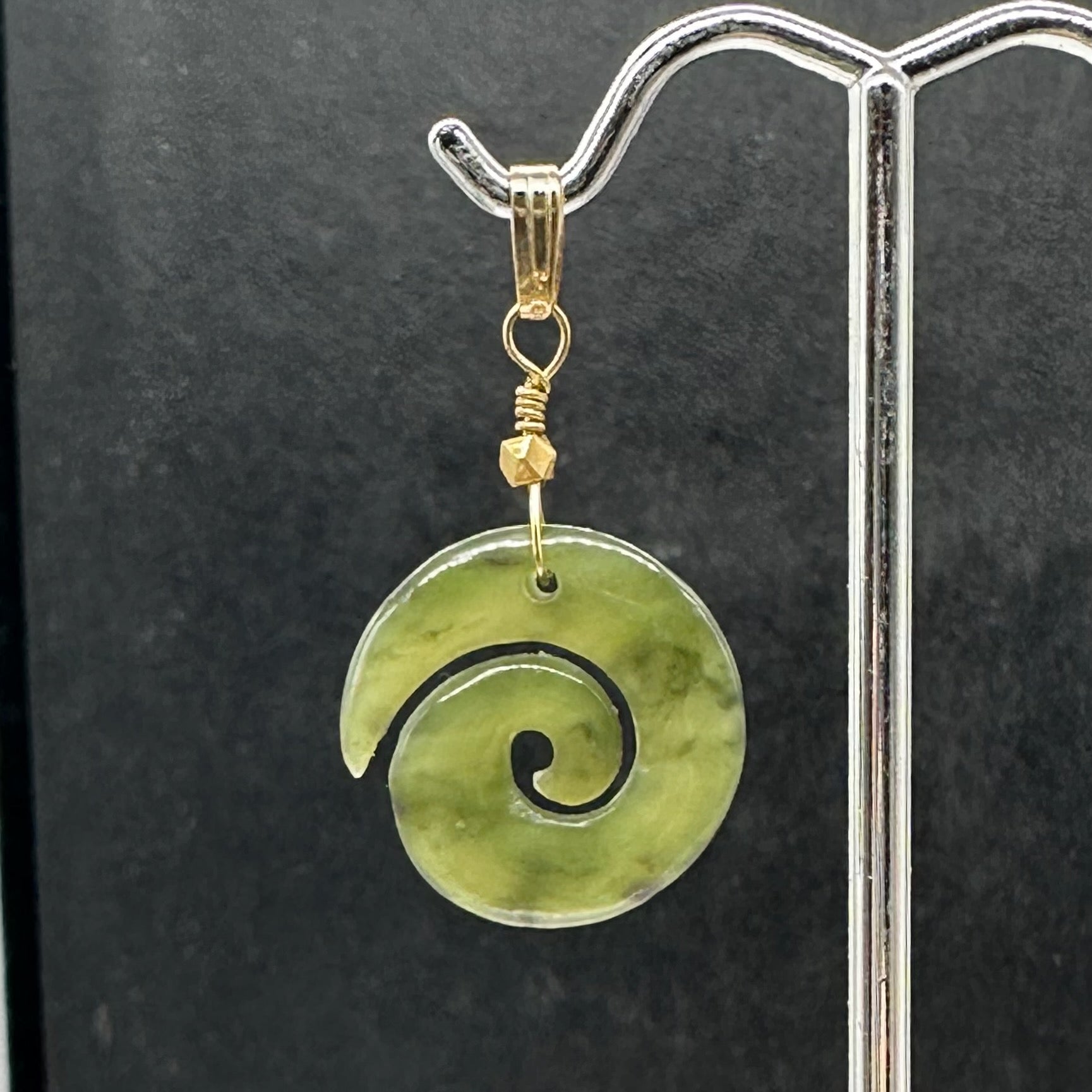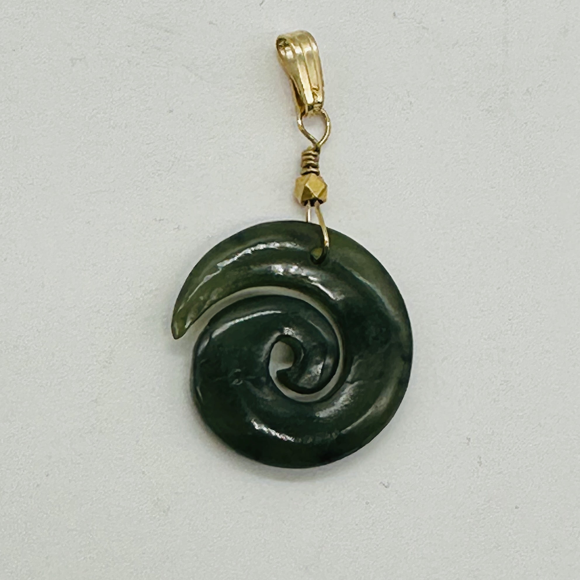 Jade New Zealand Maori Koru Sterling Silver Pendant | Green | 1" Long |