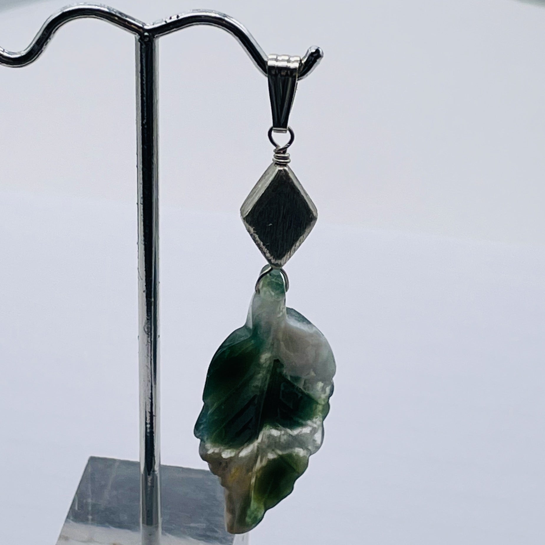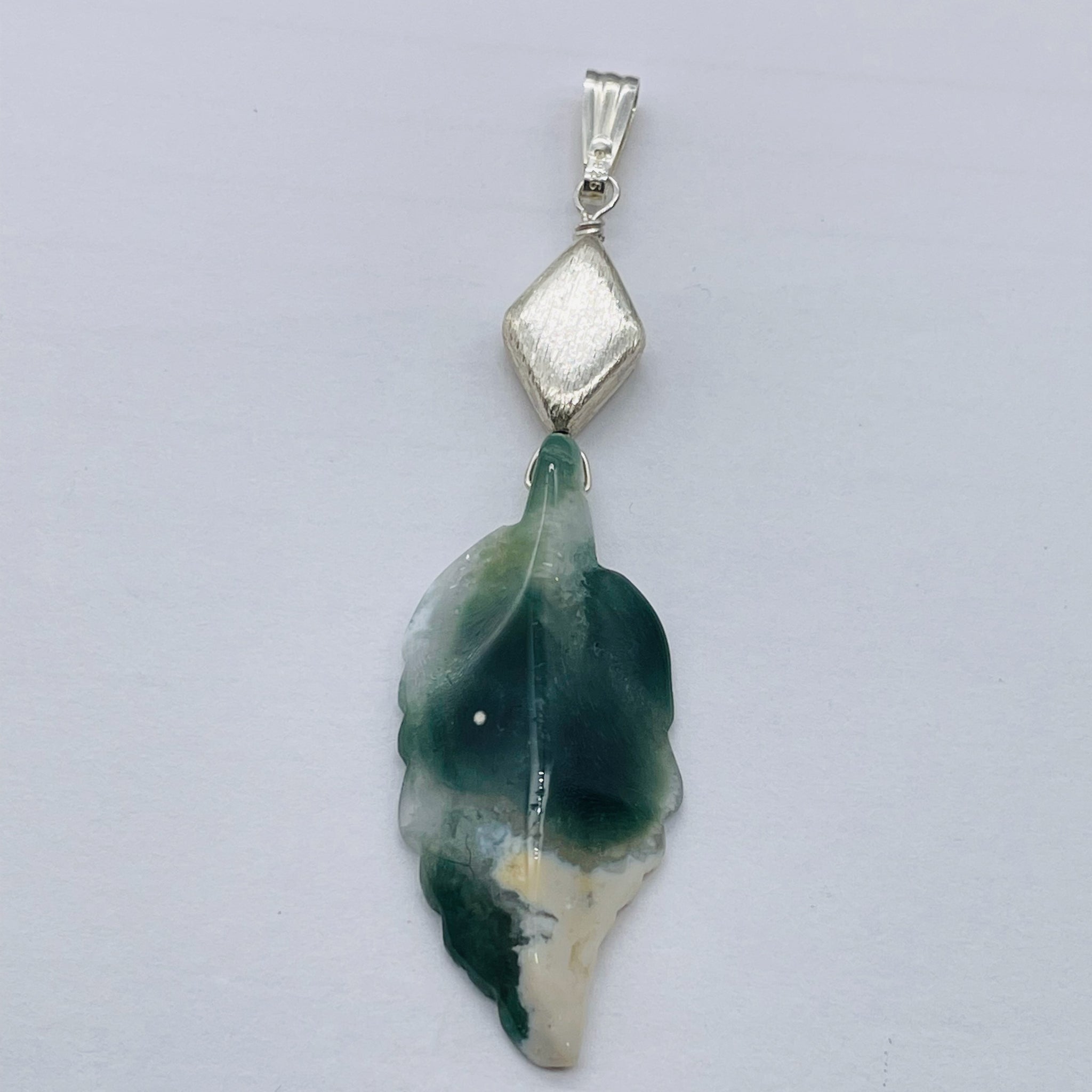 Amazing! Gray/Black Ocean Jasper Leaf Sterling Silver 2 3/4" Long Pendant!