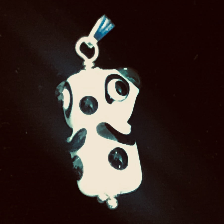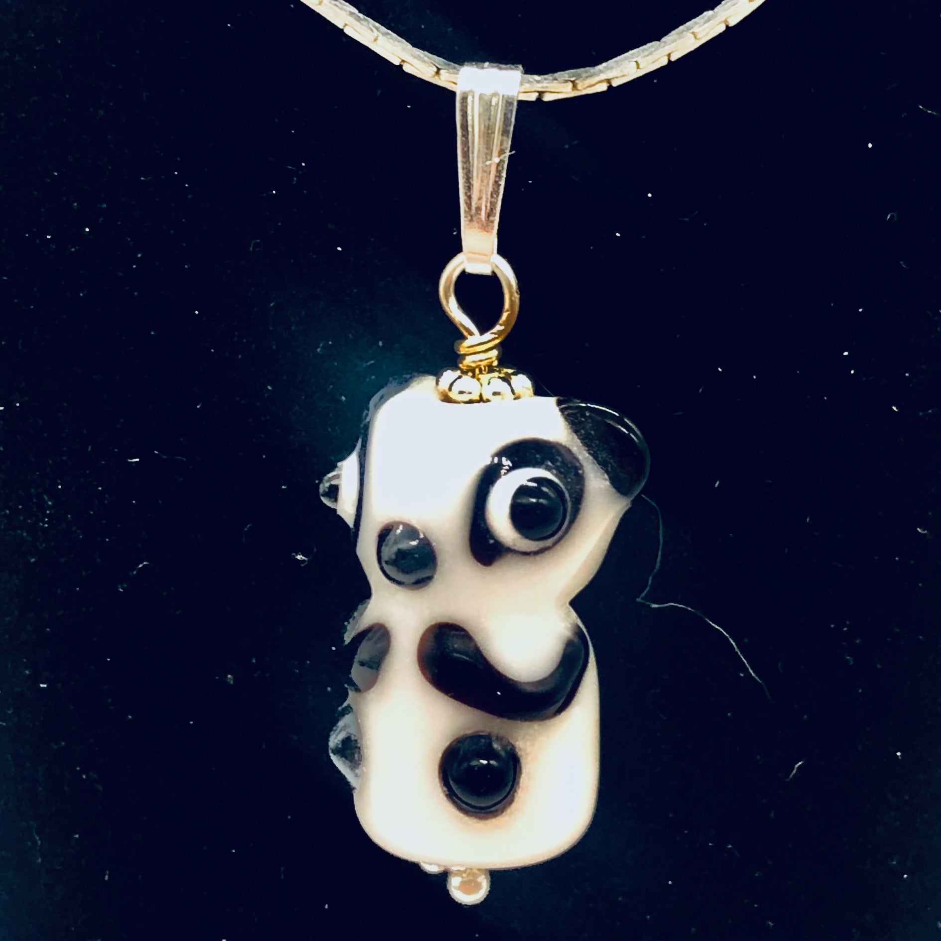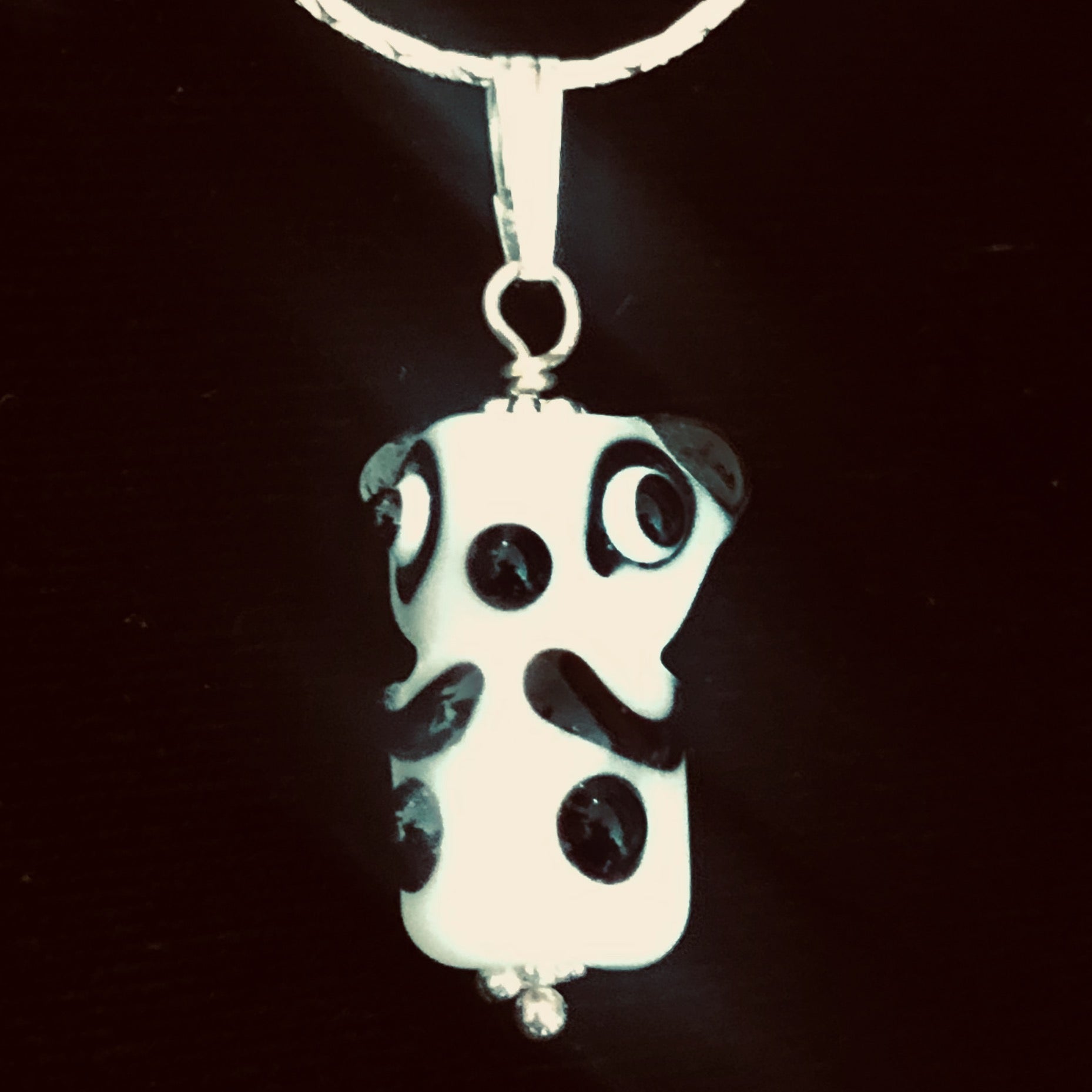 White/Black Lampwork Glass Sterling Silver Panda Pendant.