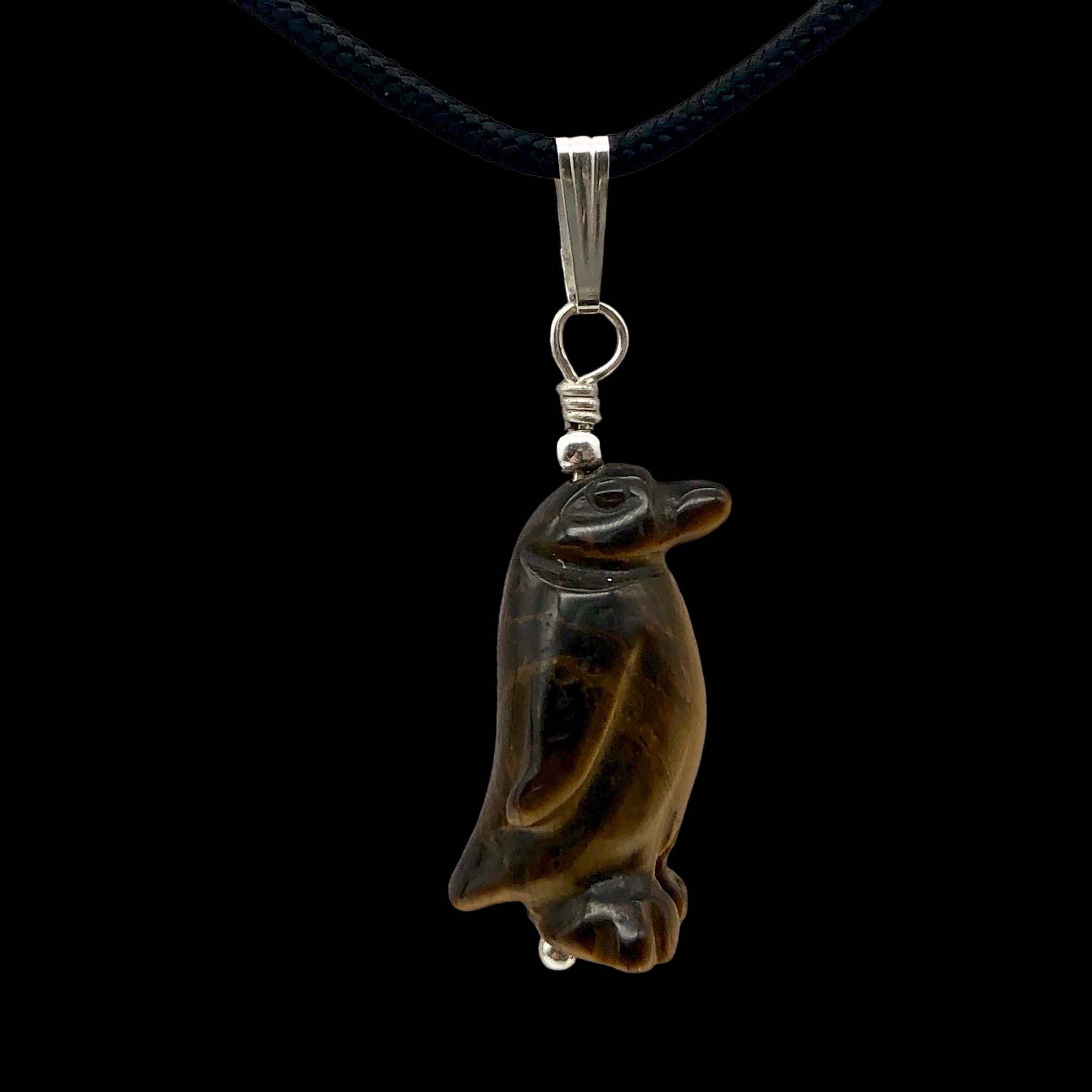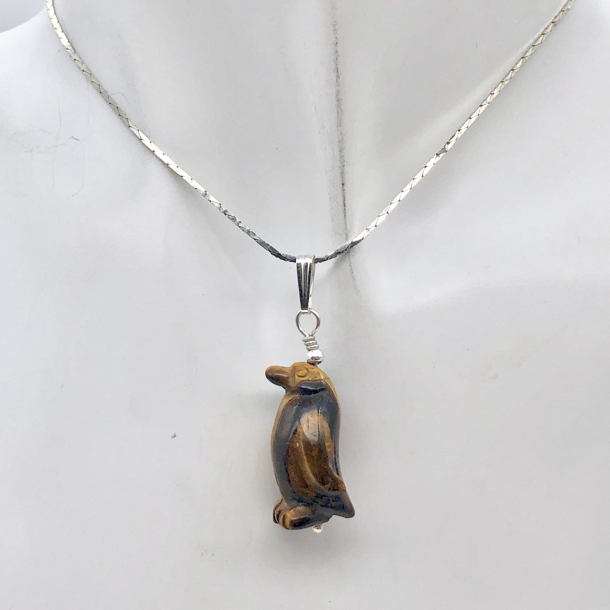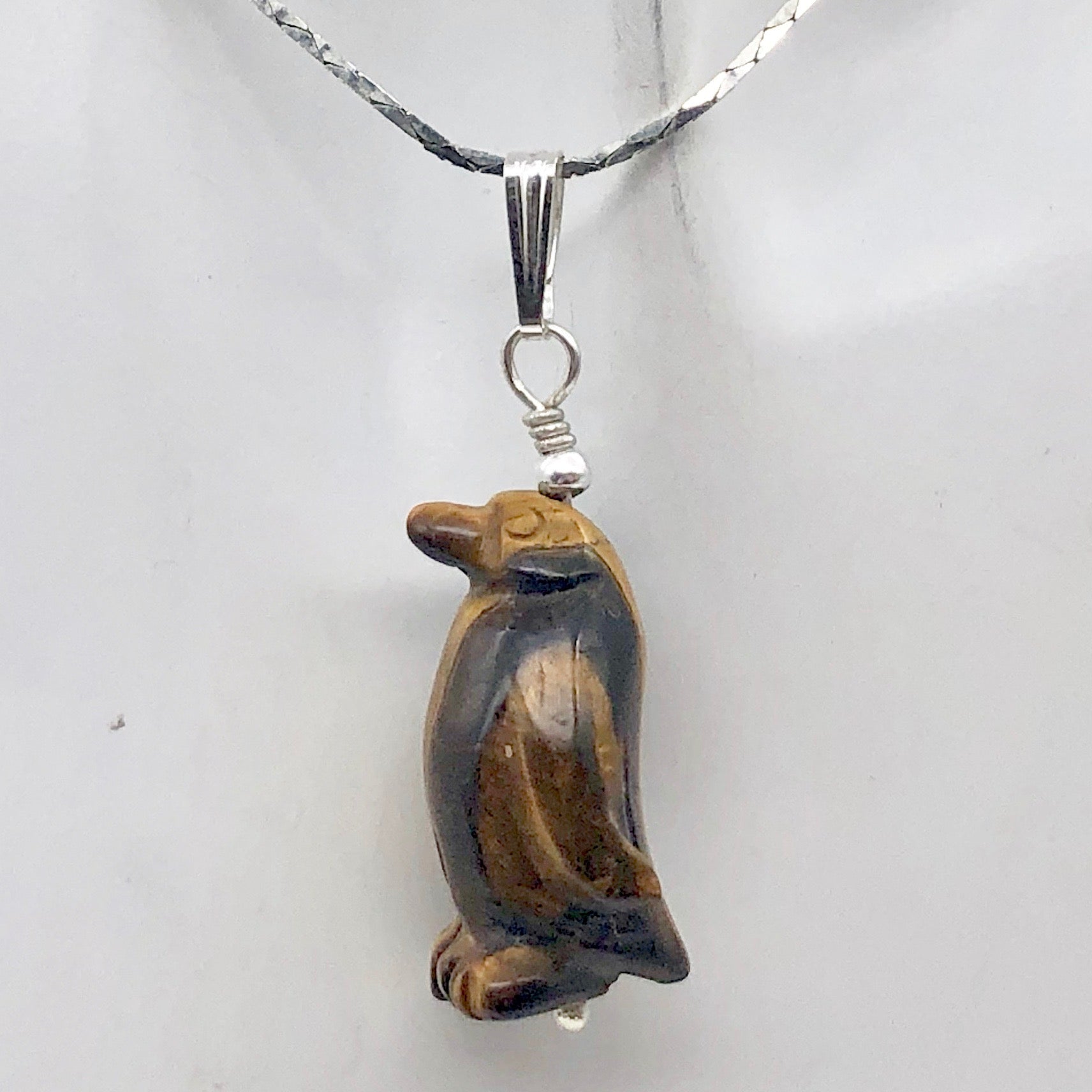 This is for one hand carved Penguin Sterling Silver Pendant. The hand carving is exquisitely executed. This pendant of Powerful Tiger's Eye will add beauty and uniqueness to any wardrobe. Don't miss out on this charming pendant!!