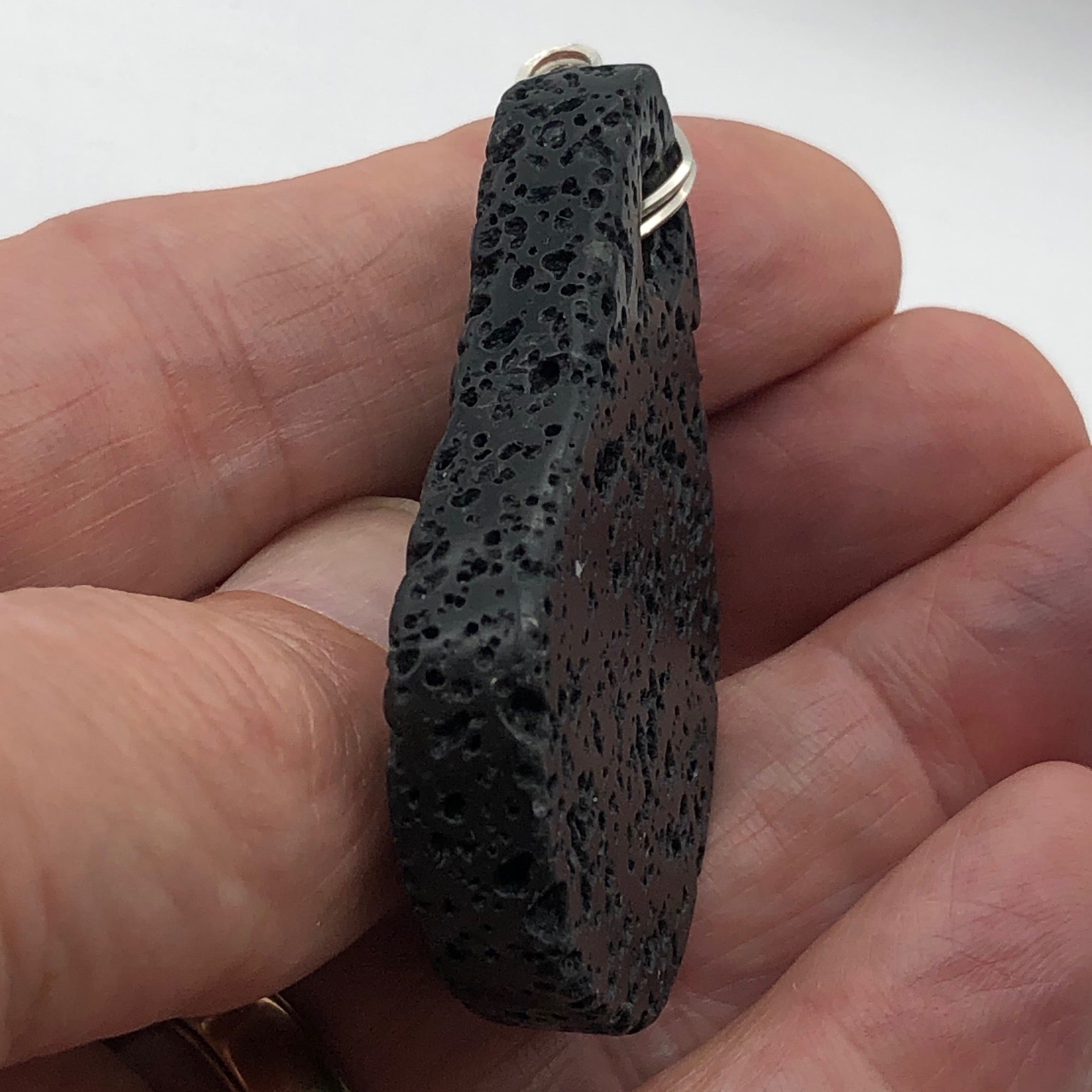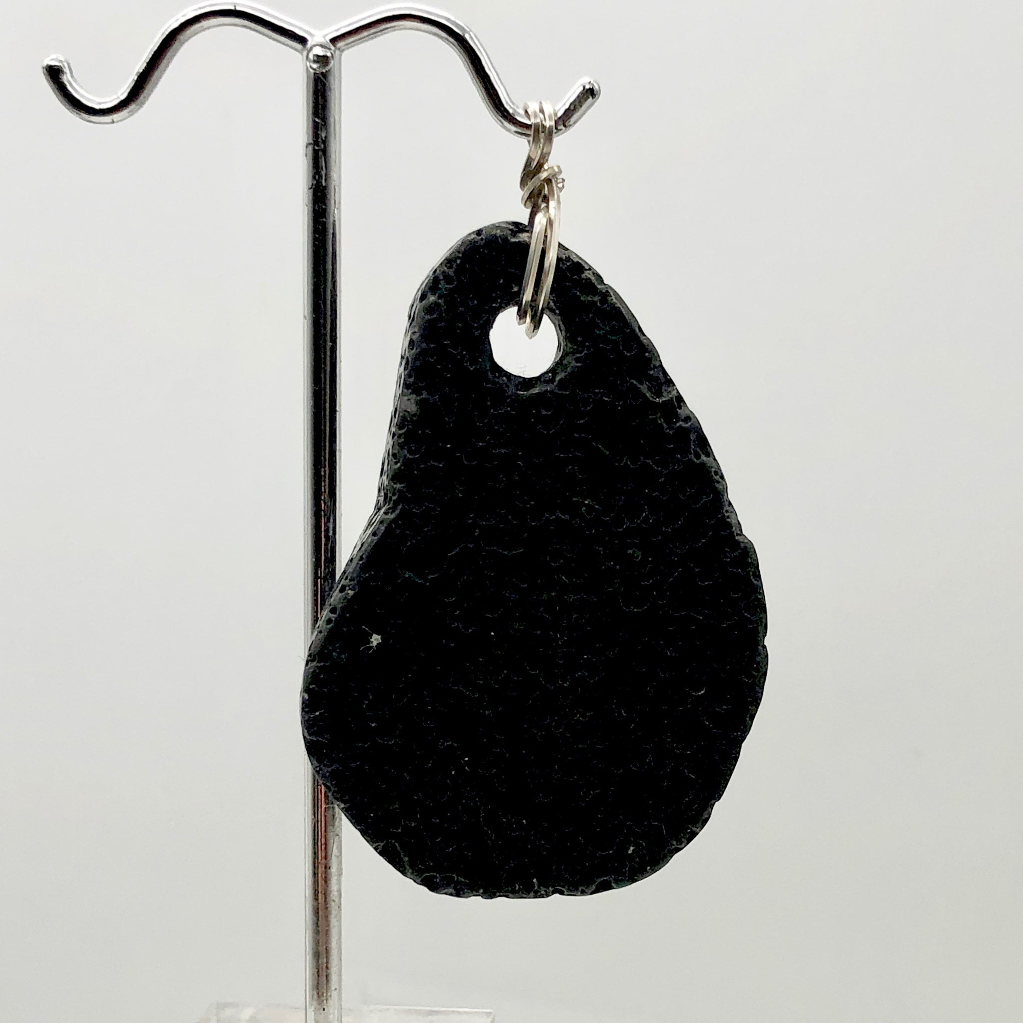 Carved Meteorite Pendant with Sterling Silver Wire-Wrap Bail for Jewelry.