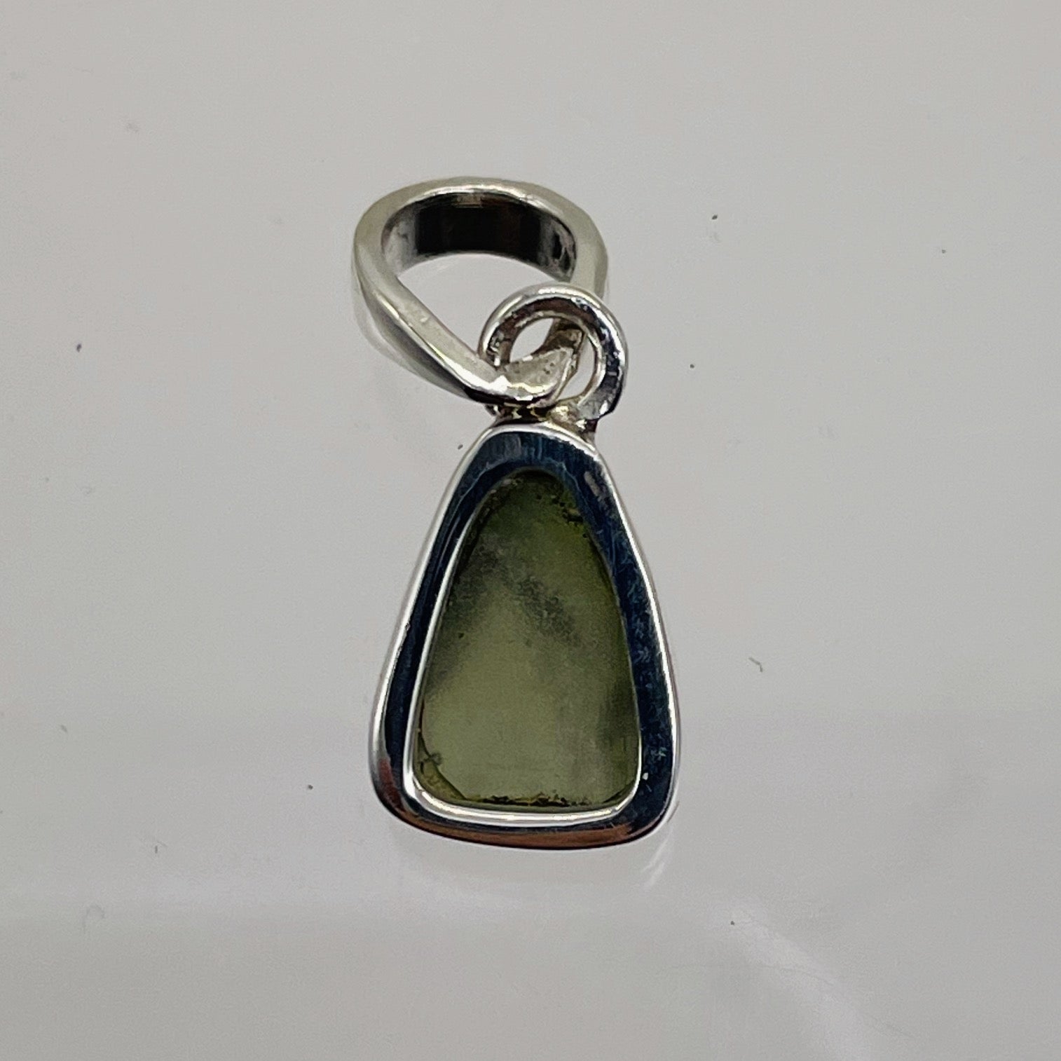 Green Moldavite 8.31ct Sterling Silver Triangle Pendant.