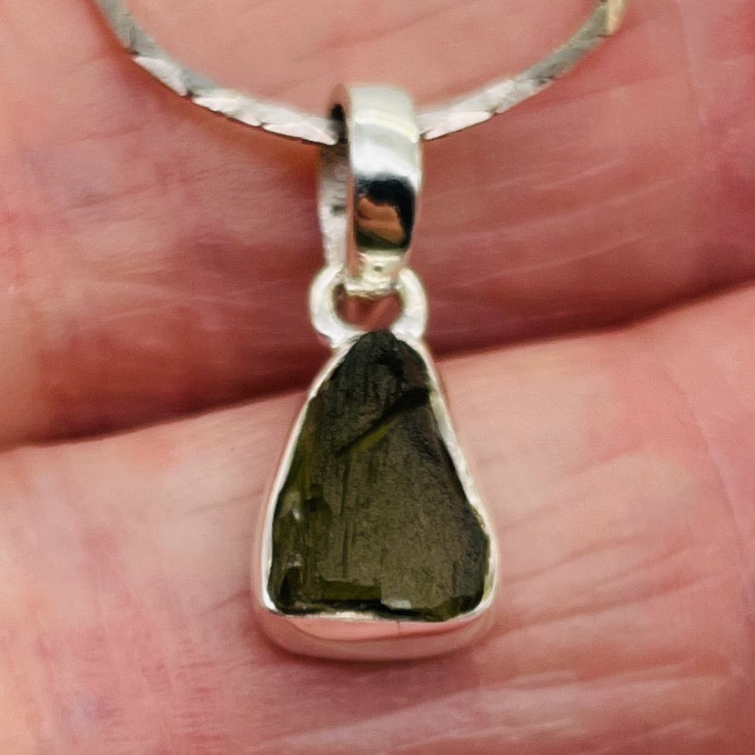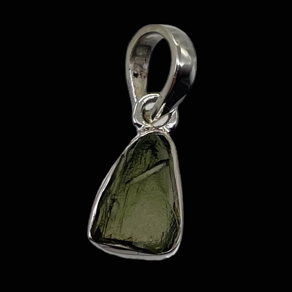 Moldavite 8.31ct Sterling Silver Triangle Pendant | 3/4" Long |Green| 1 Pendant|