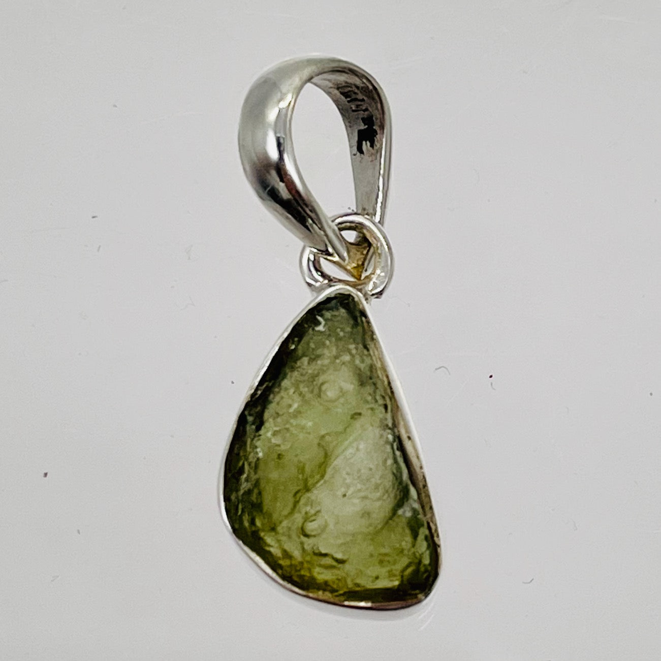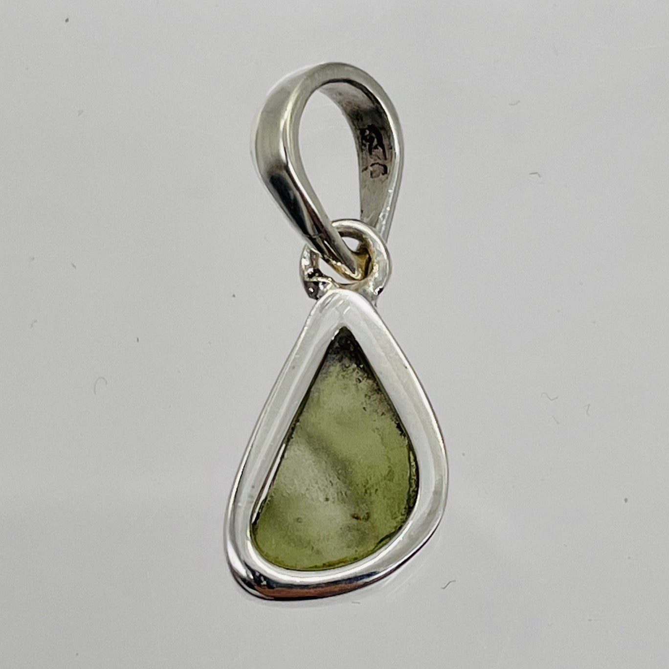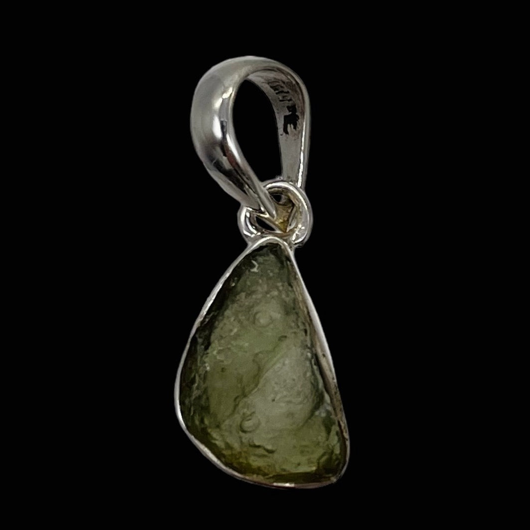 Moldavite 9.4ct Sterling Silver Teardrop Pendant | 7/8" Long| Green| 1 Pendant |