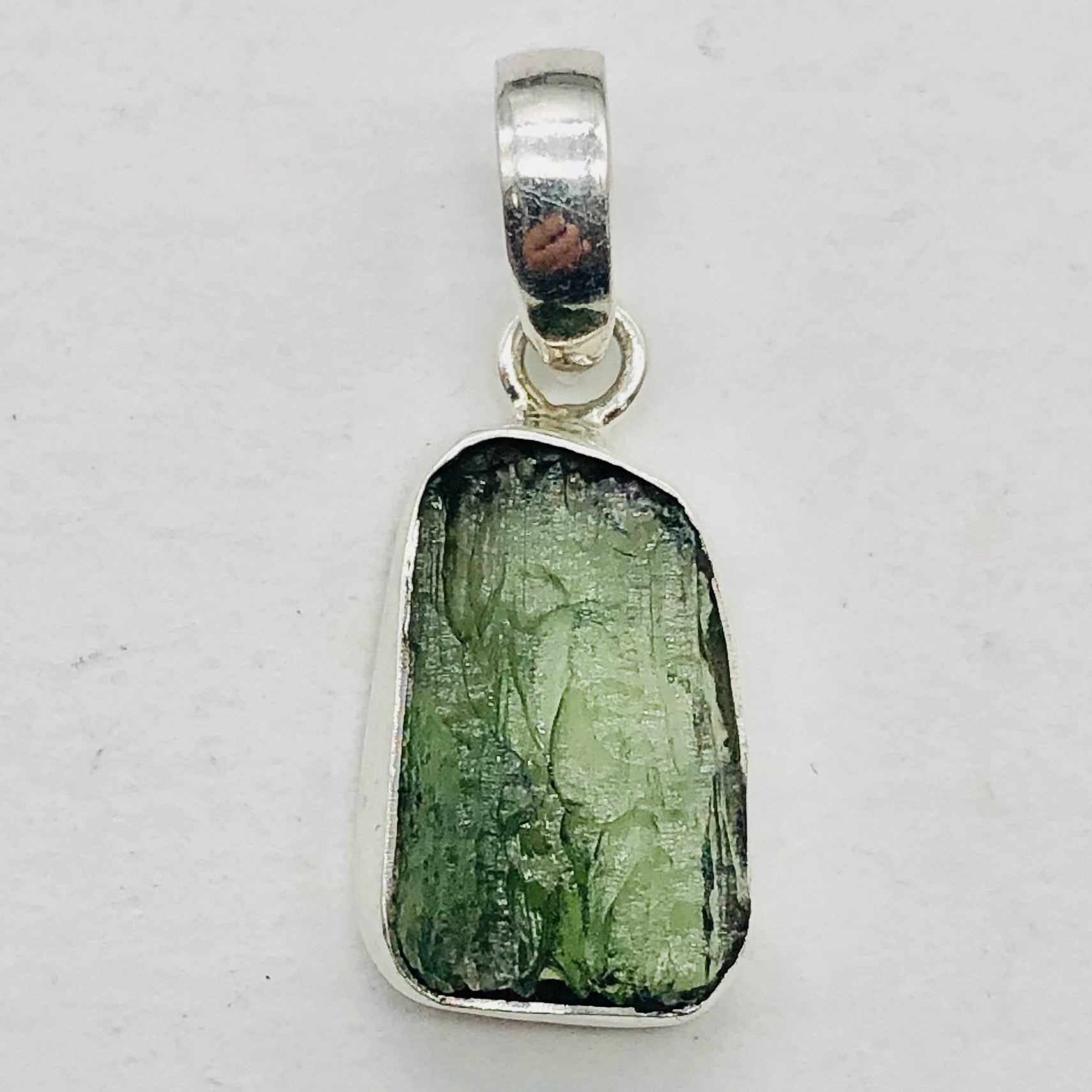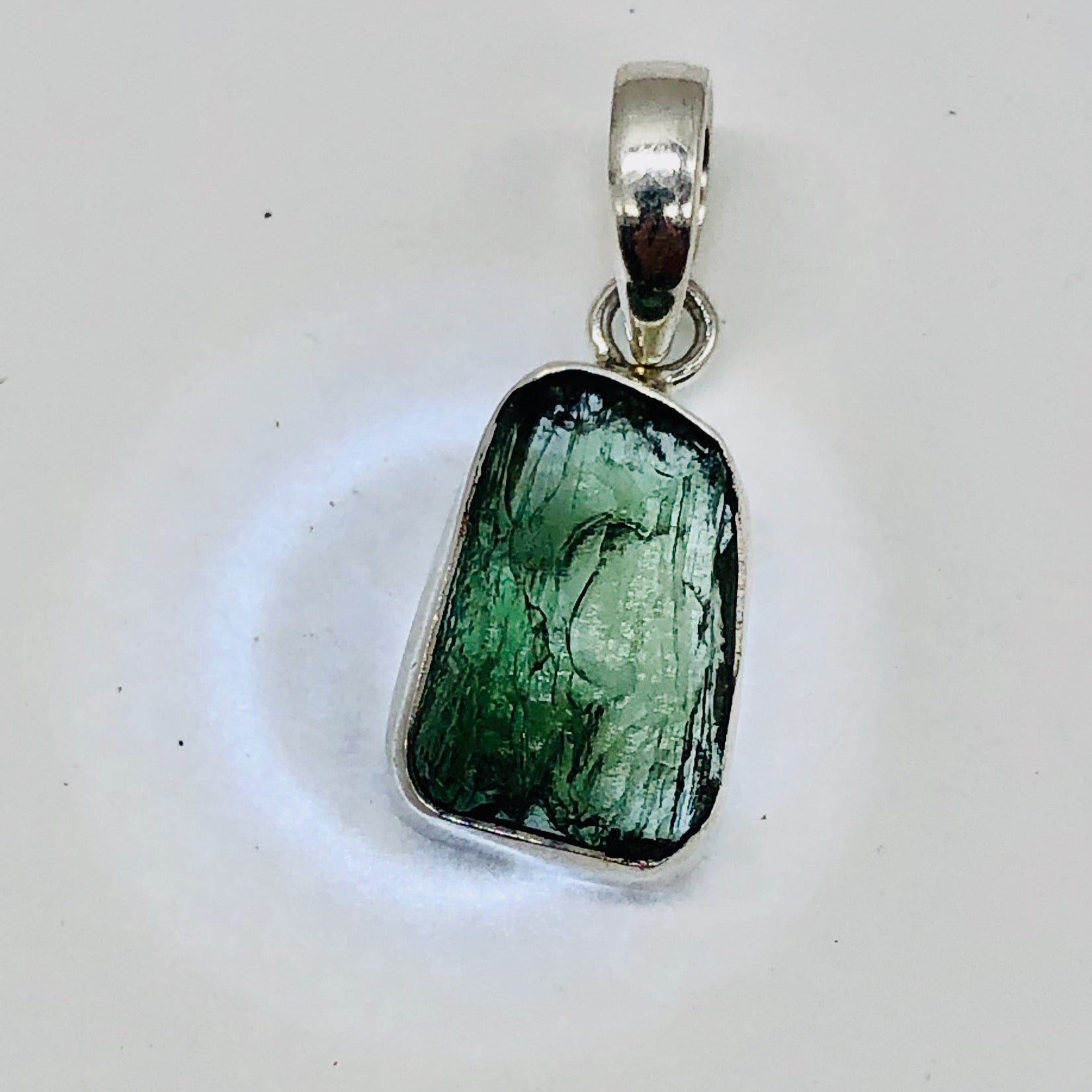 Beautiful Translucent Green Moldavite Sterling Silver Perfect Size Pendant .