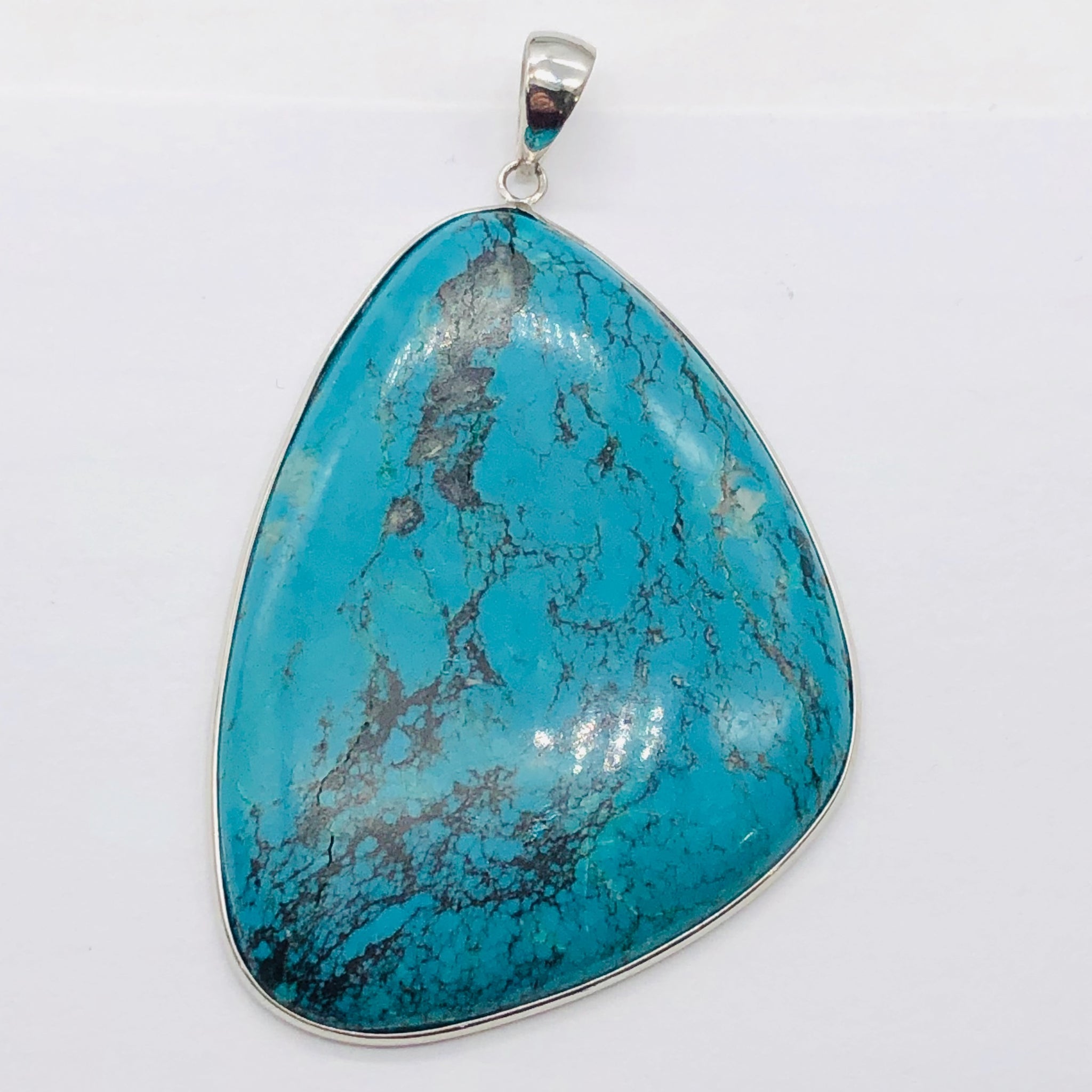 Blue/Black Natural Turquoise 88ct Sterling Silver Ovaloid Pendant