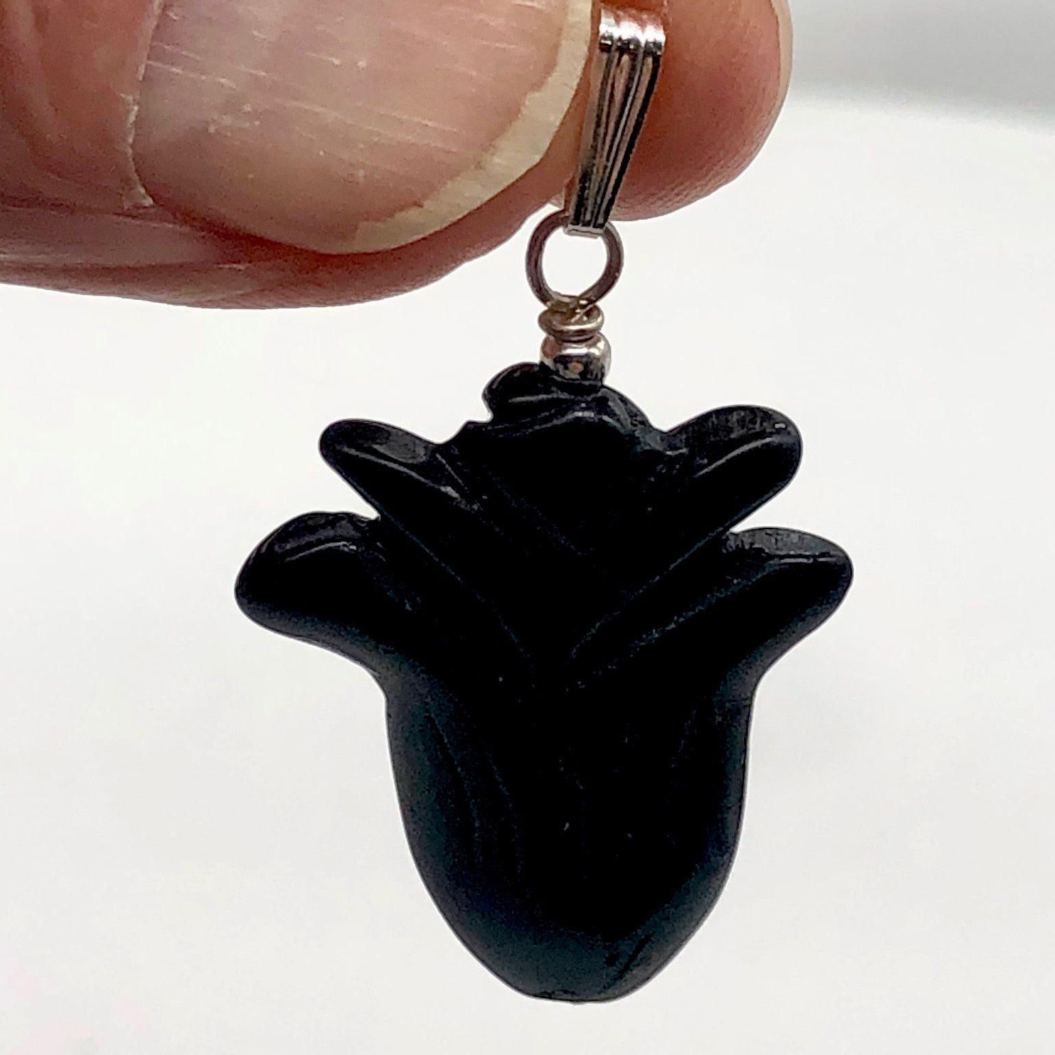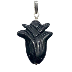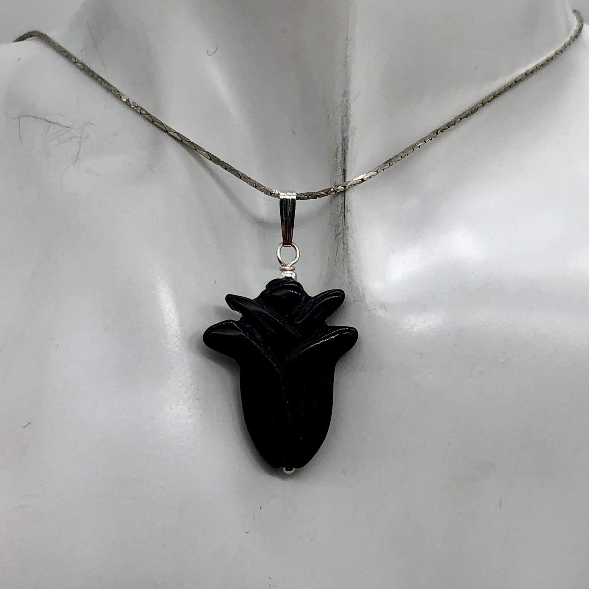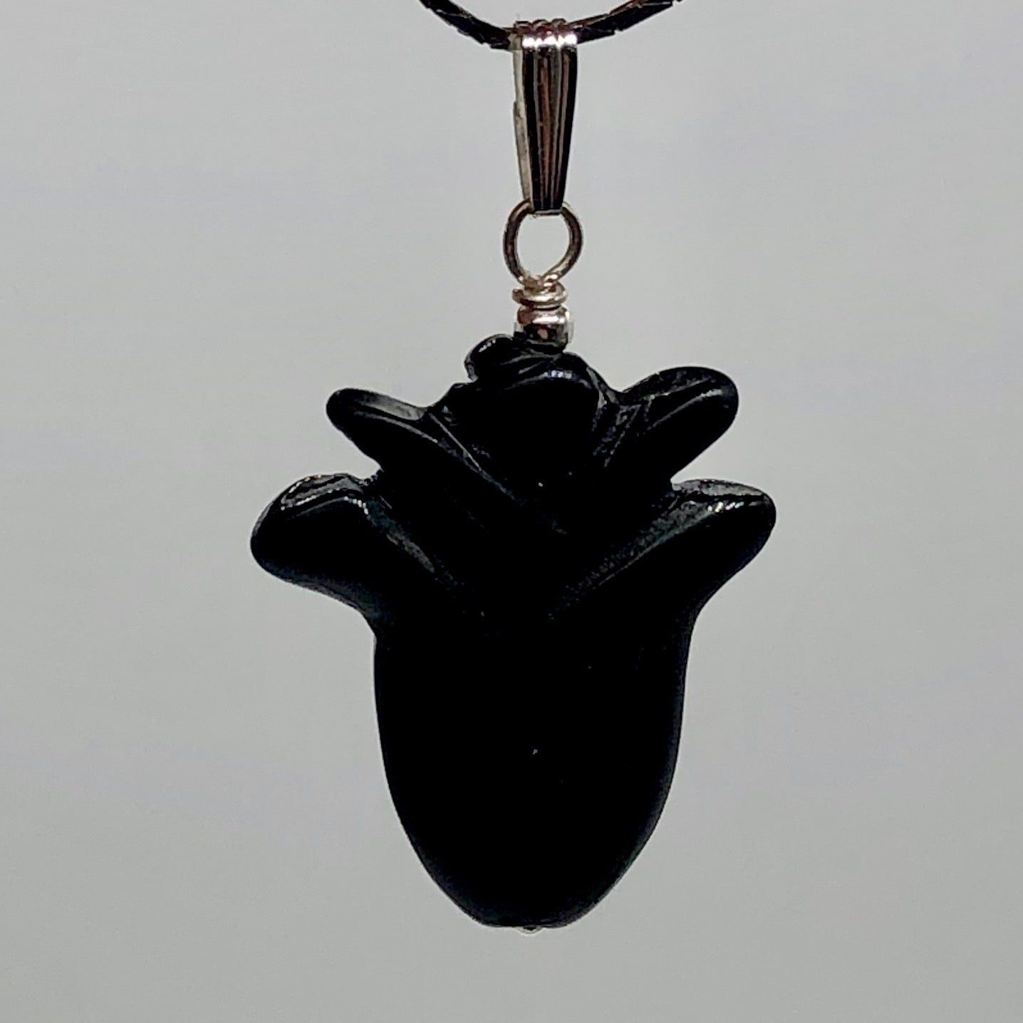 Obsidian Sterling Silver Rose Flower Pendant | 1 1/2" Long | Black | 1 Pendant |