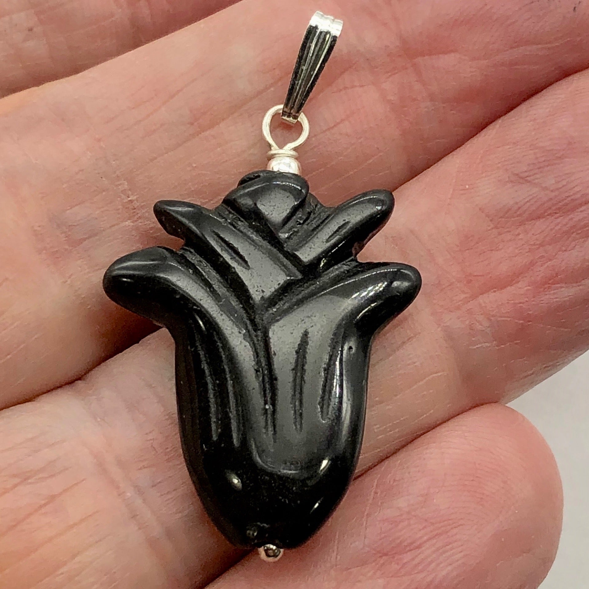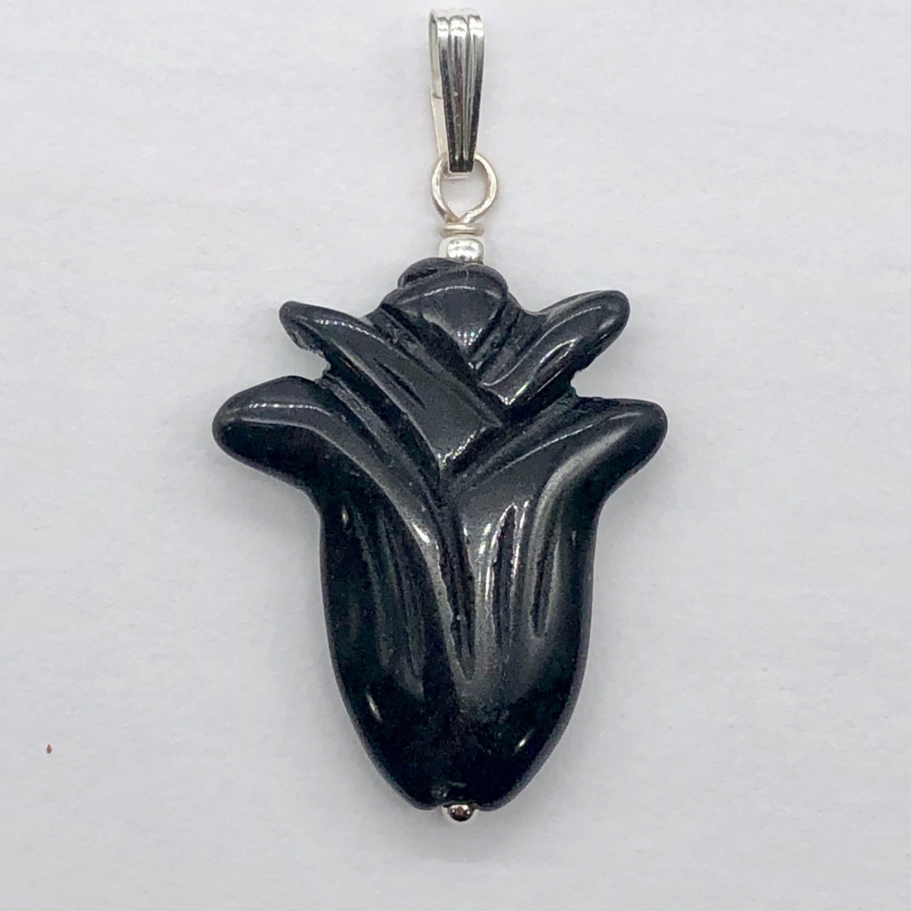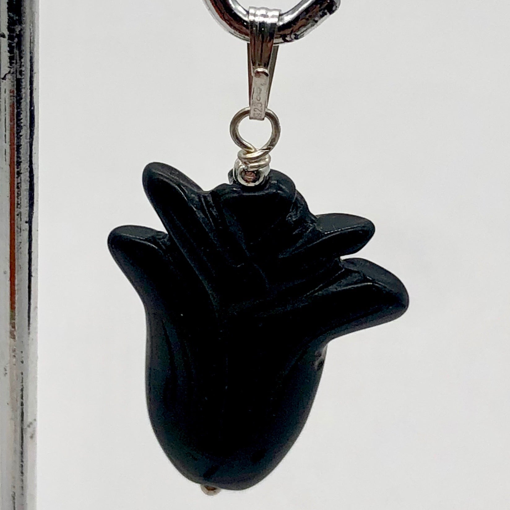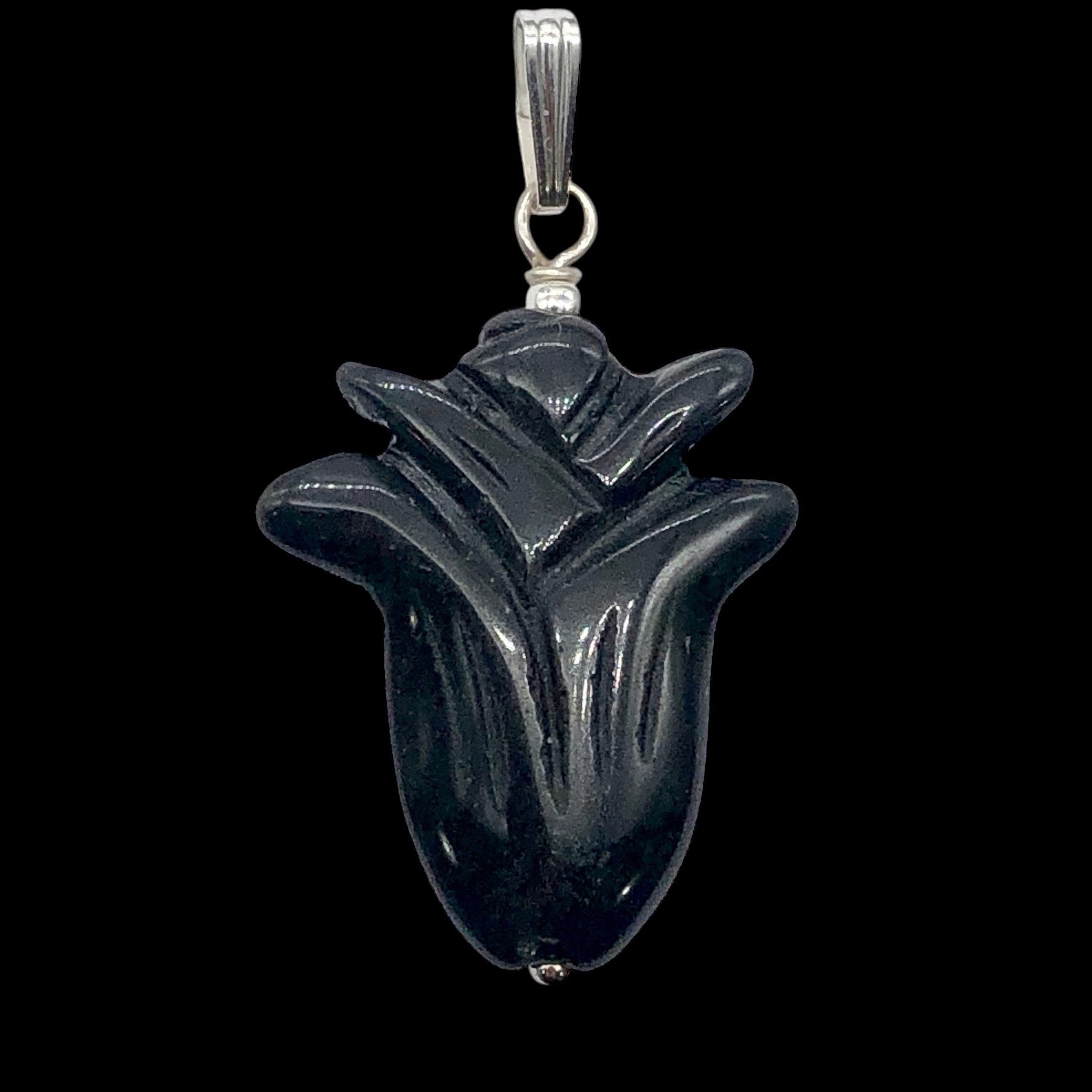 Obsidian Sterling Silver Rose Flower Pendant | 1 1/2" Long | Black | 1 Pendant |