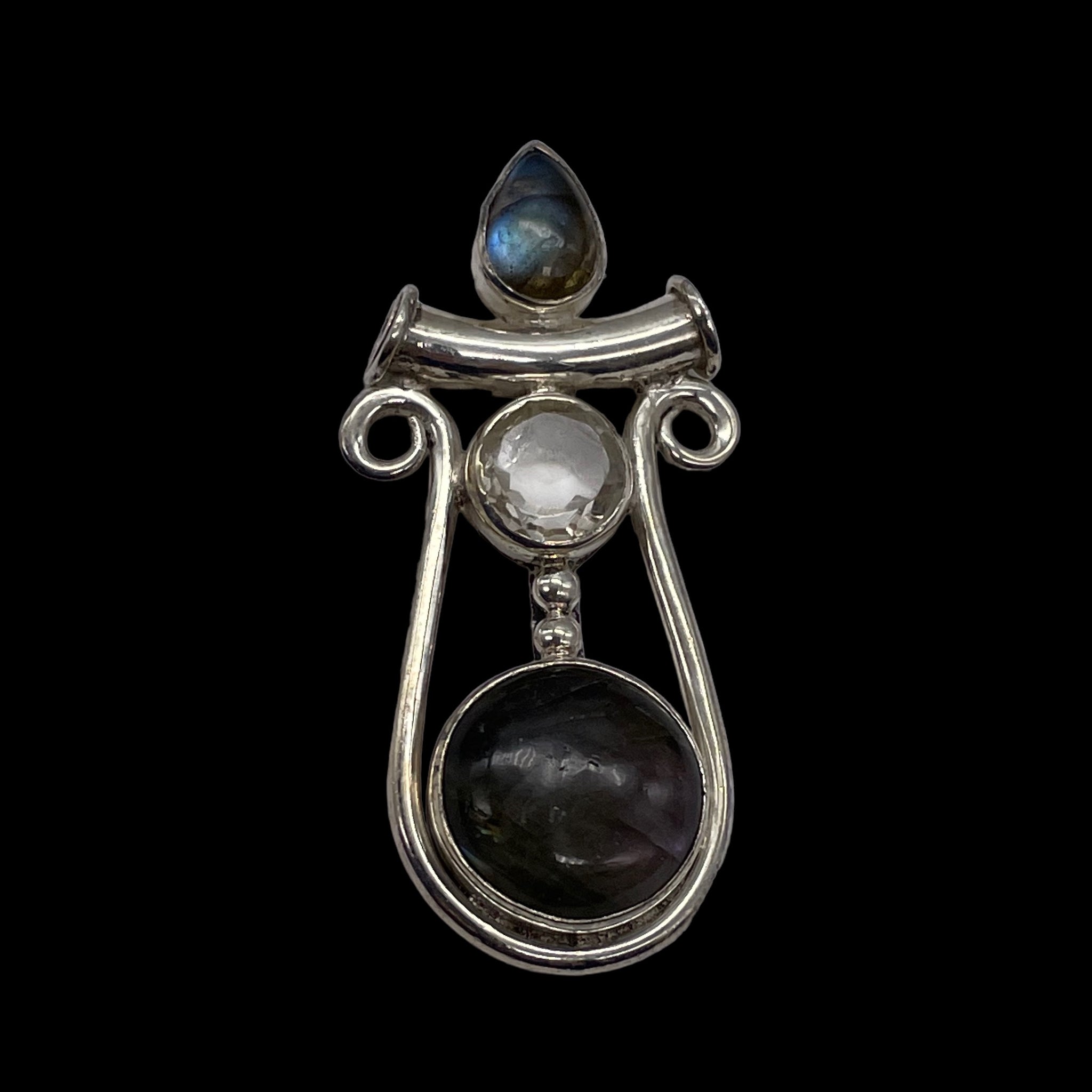 This Wonderfully designed pendant holds two marvelous Gemstones - one Quartz and one