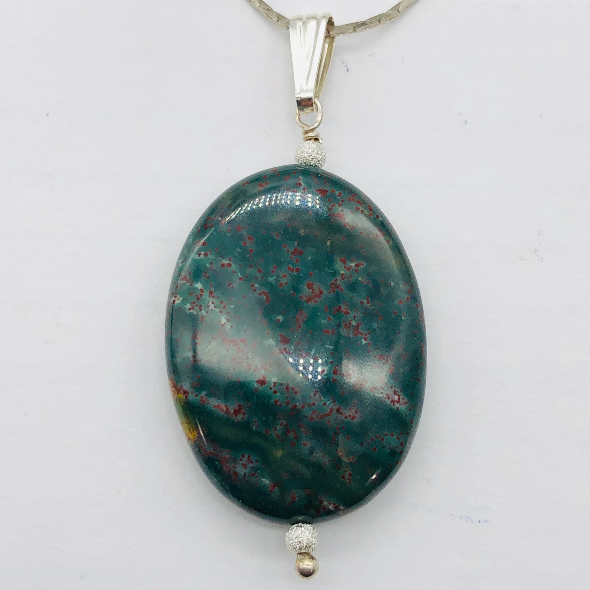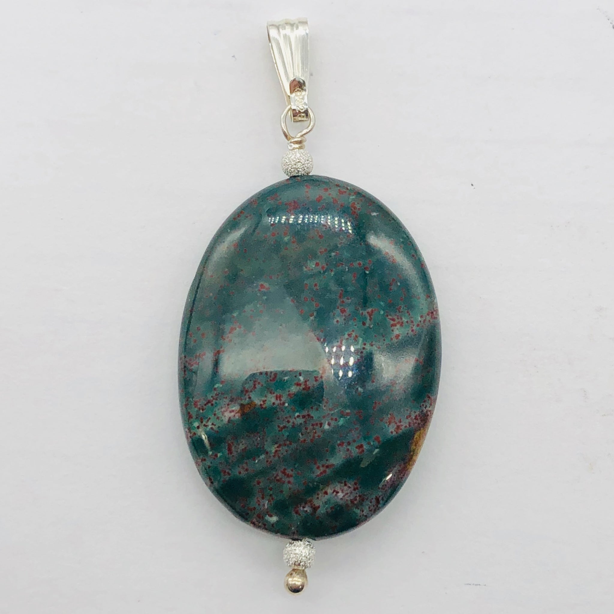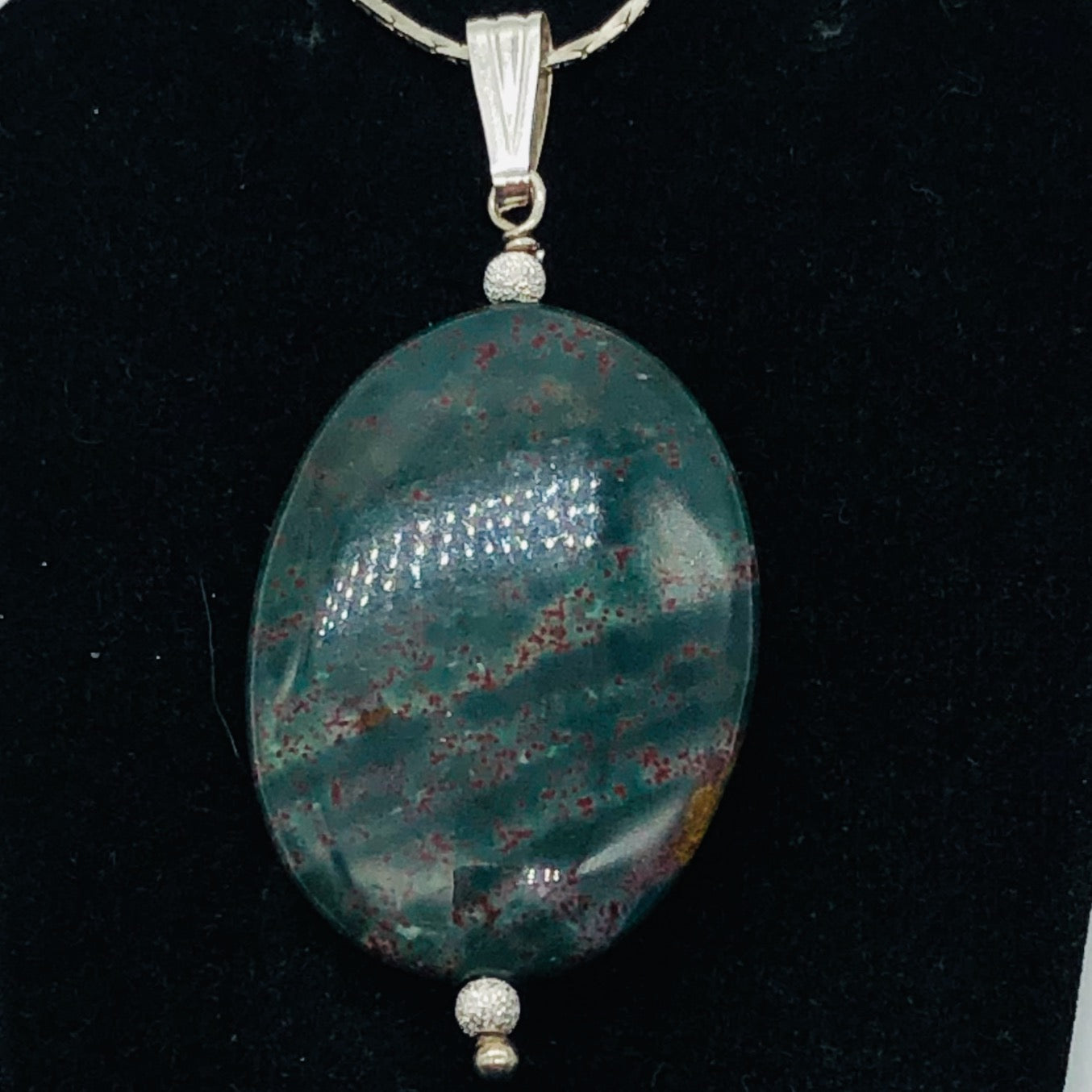 AAA BLOODSTONE FLAT OVAL and Sterling Silver PENDANT!