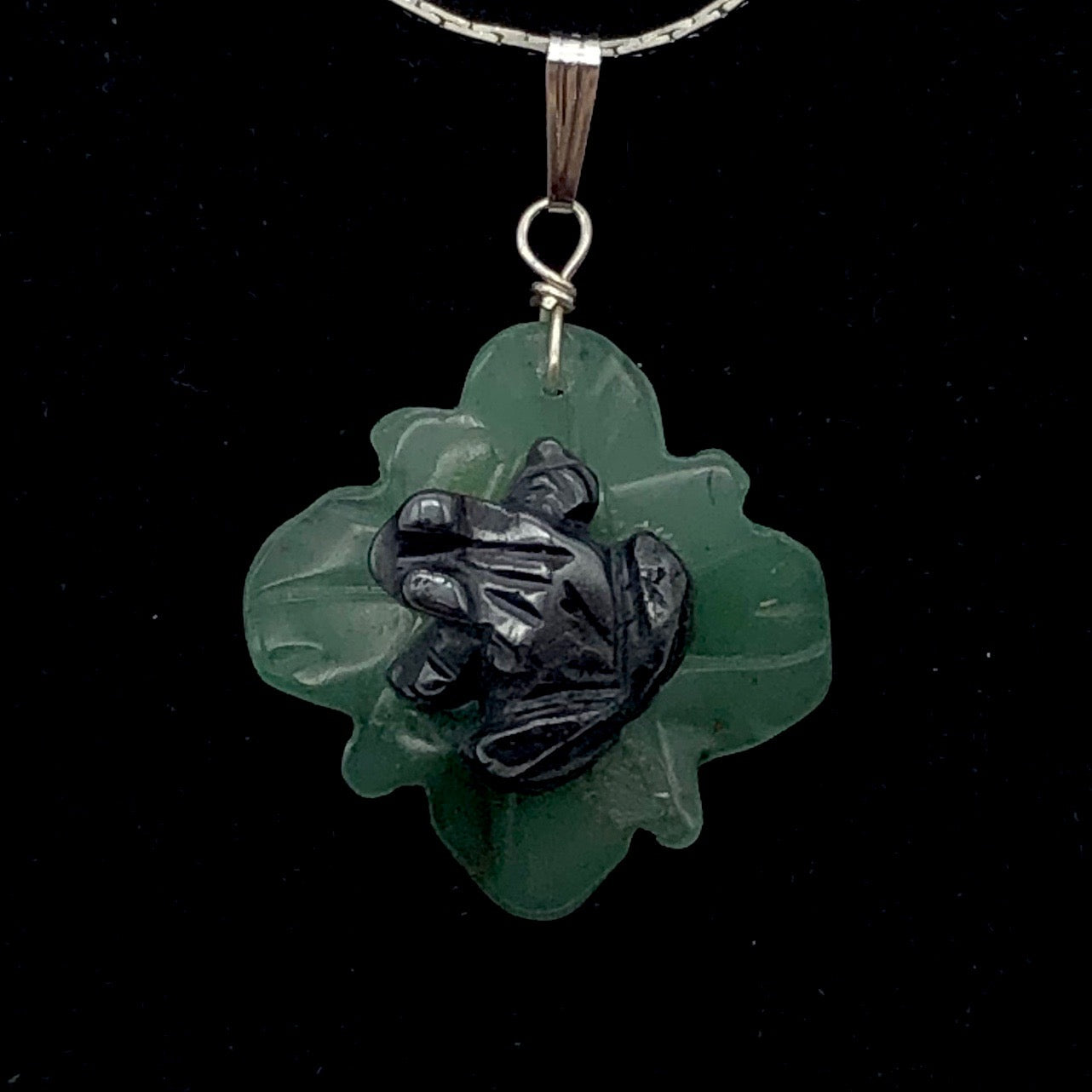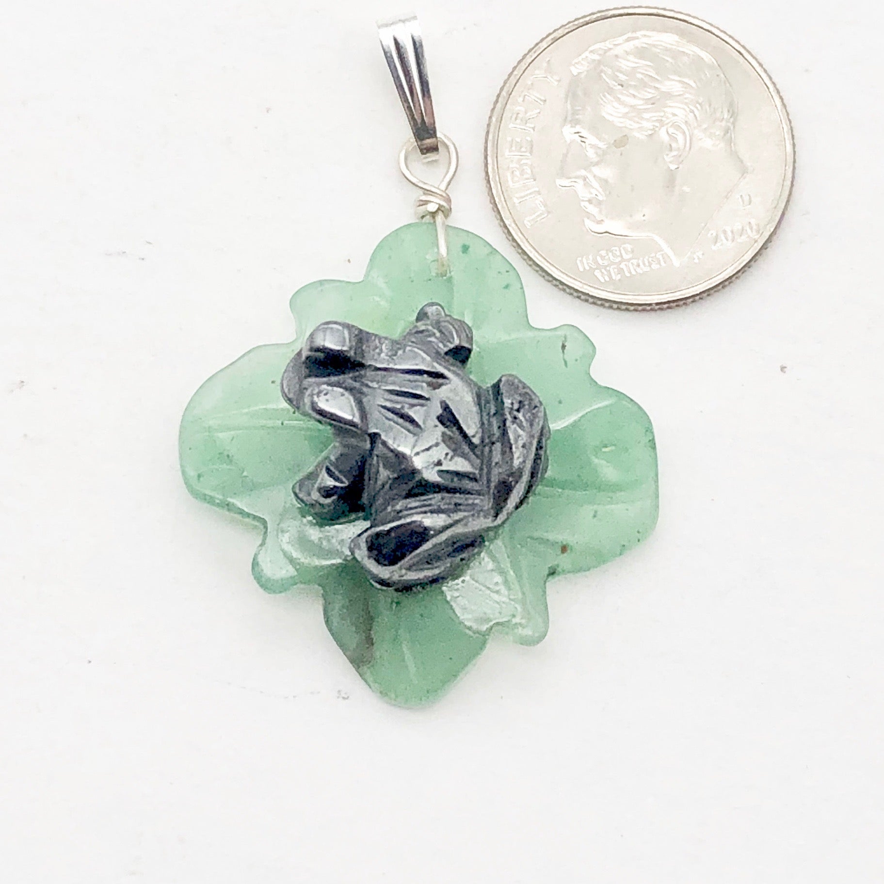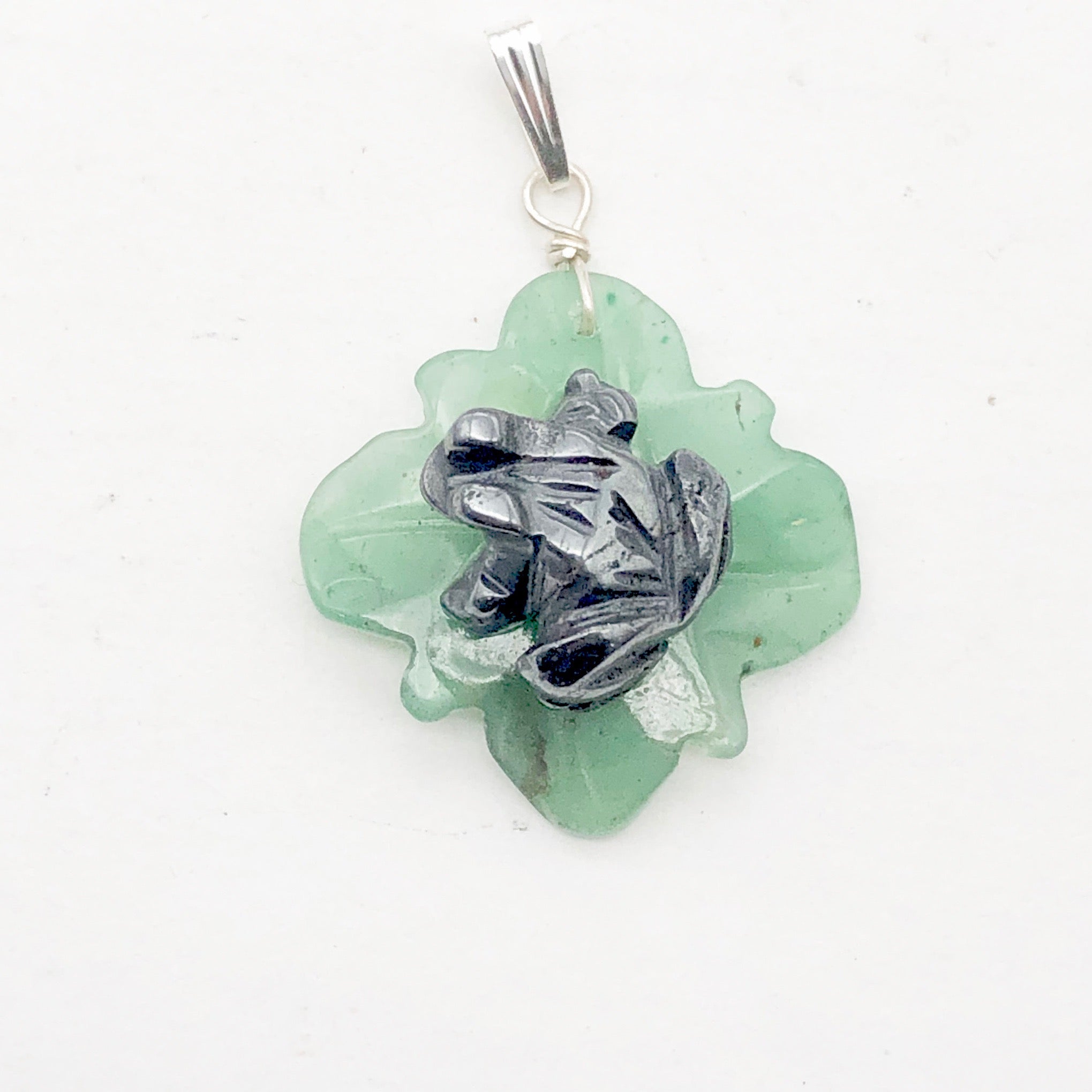 This is for one hand carved Hematite Frog on an Aventurine Lily pad Pendant! This fabulous Hematite FROG ON LILY PAD bead will add that touch of whimsy to any of your creations or make the perfect pendant for any FROG collector!