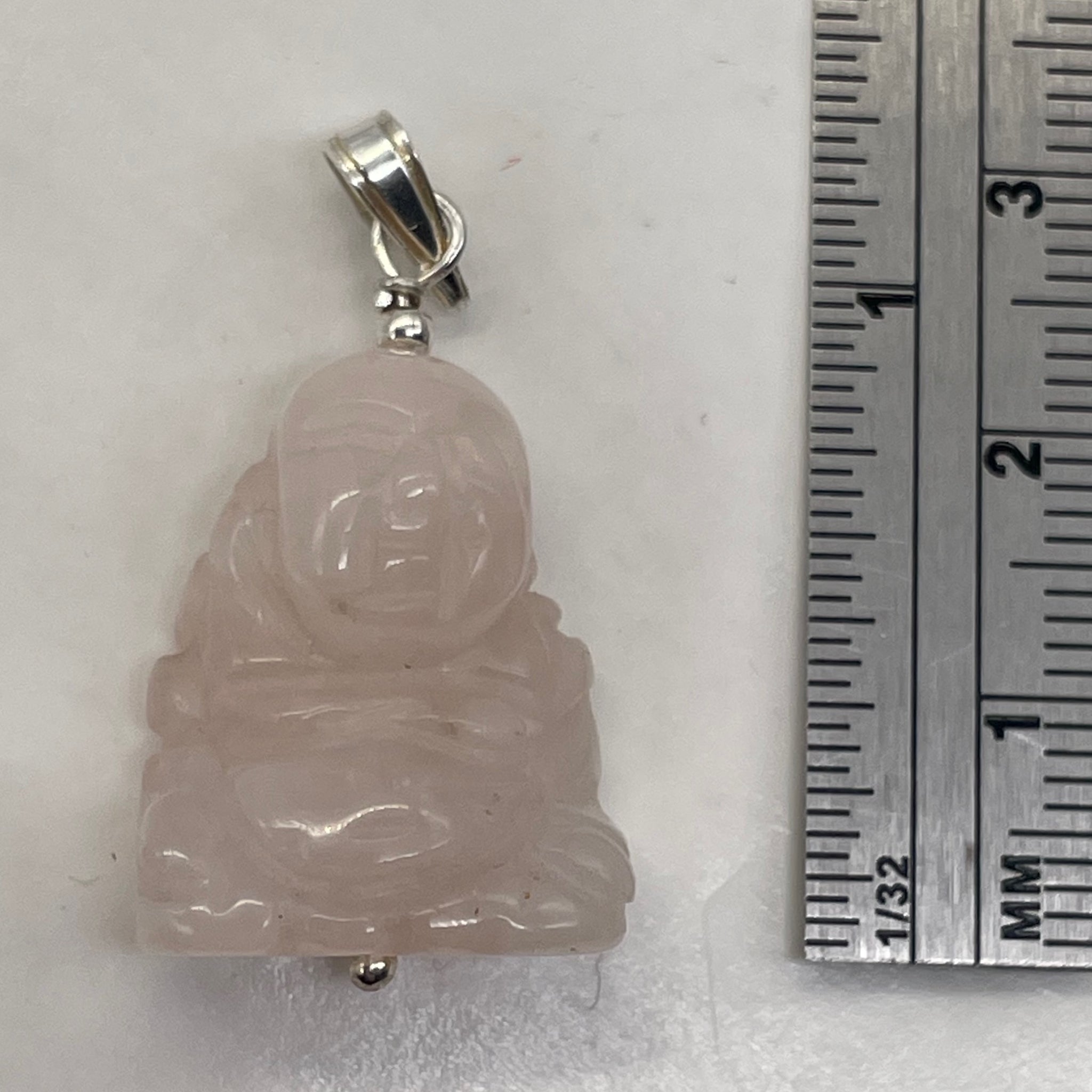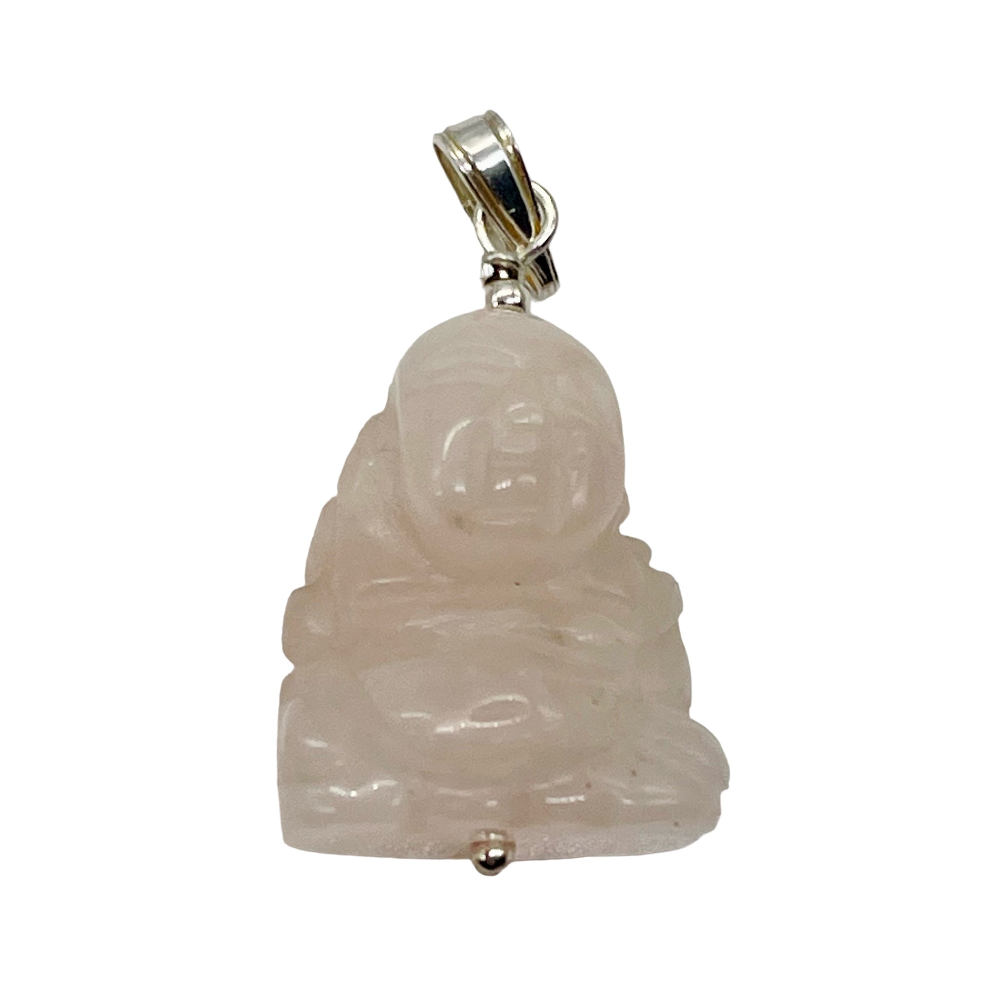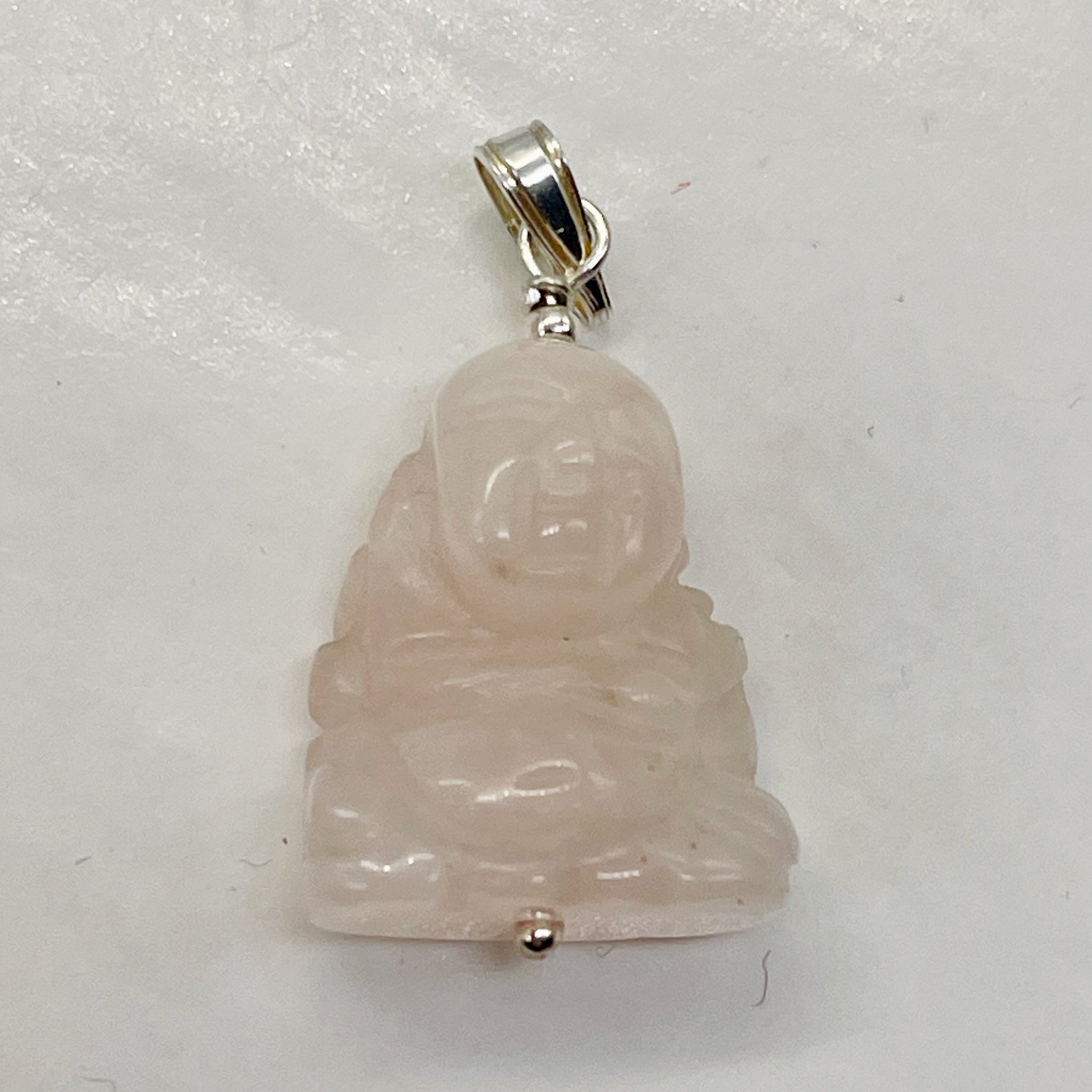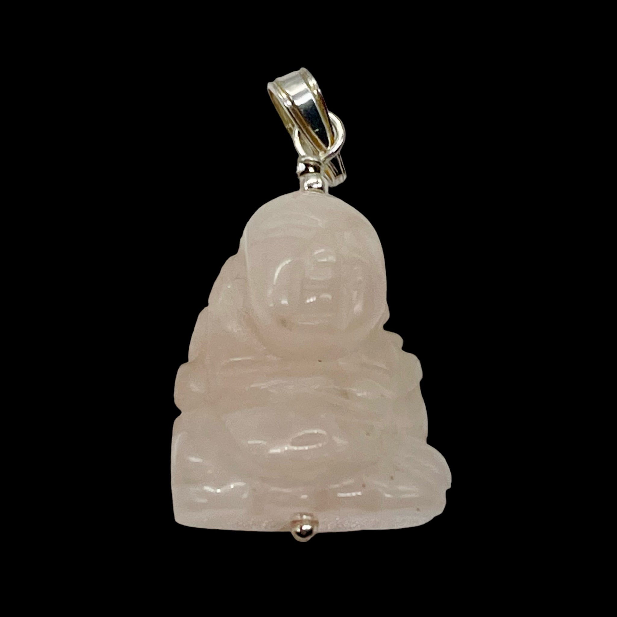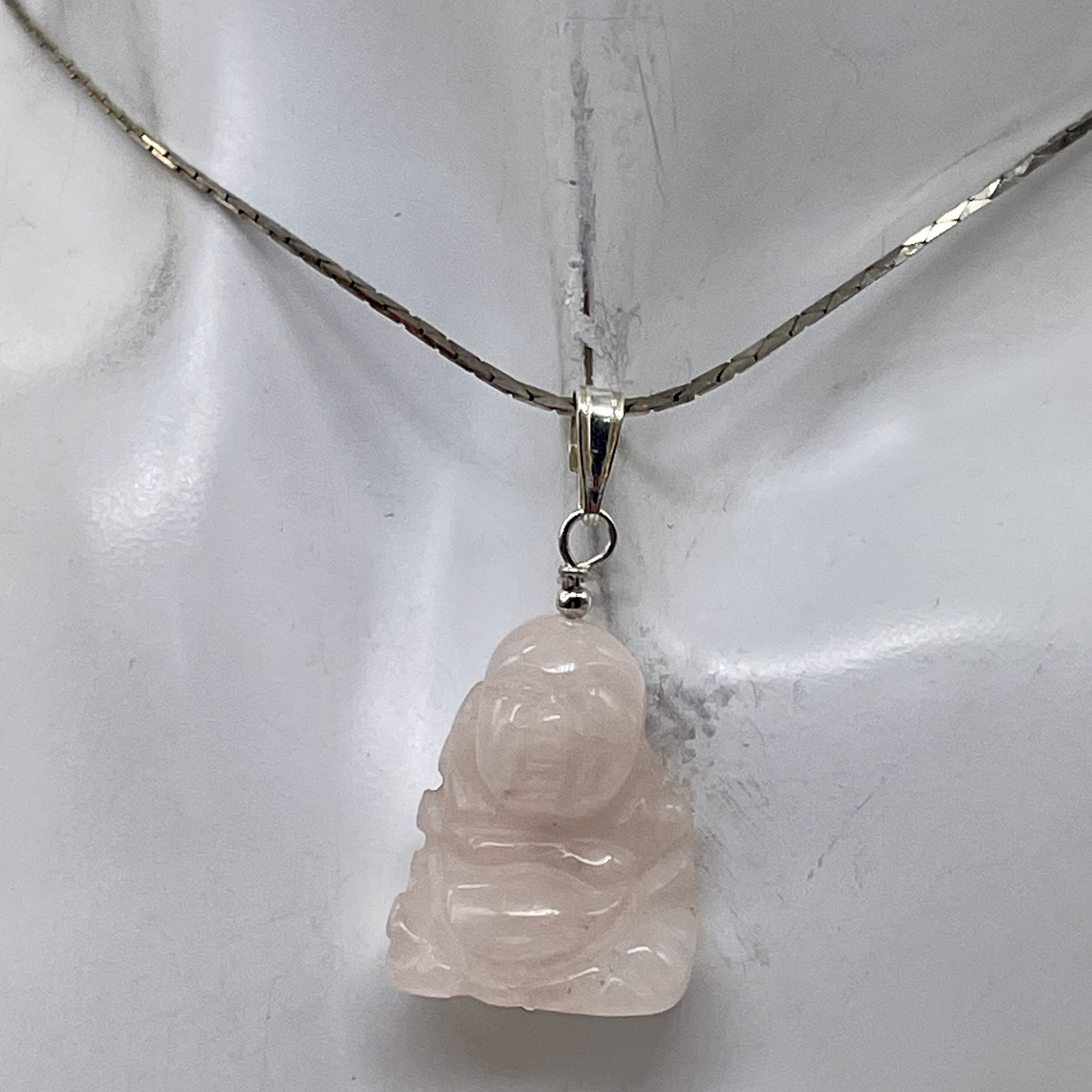 Hand Carved ROSE QUARTZ BUDDHA and Sterling Silver Pendant!