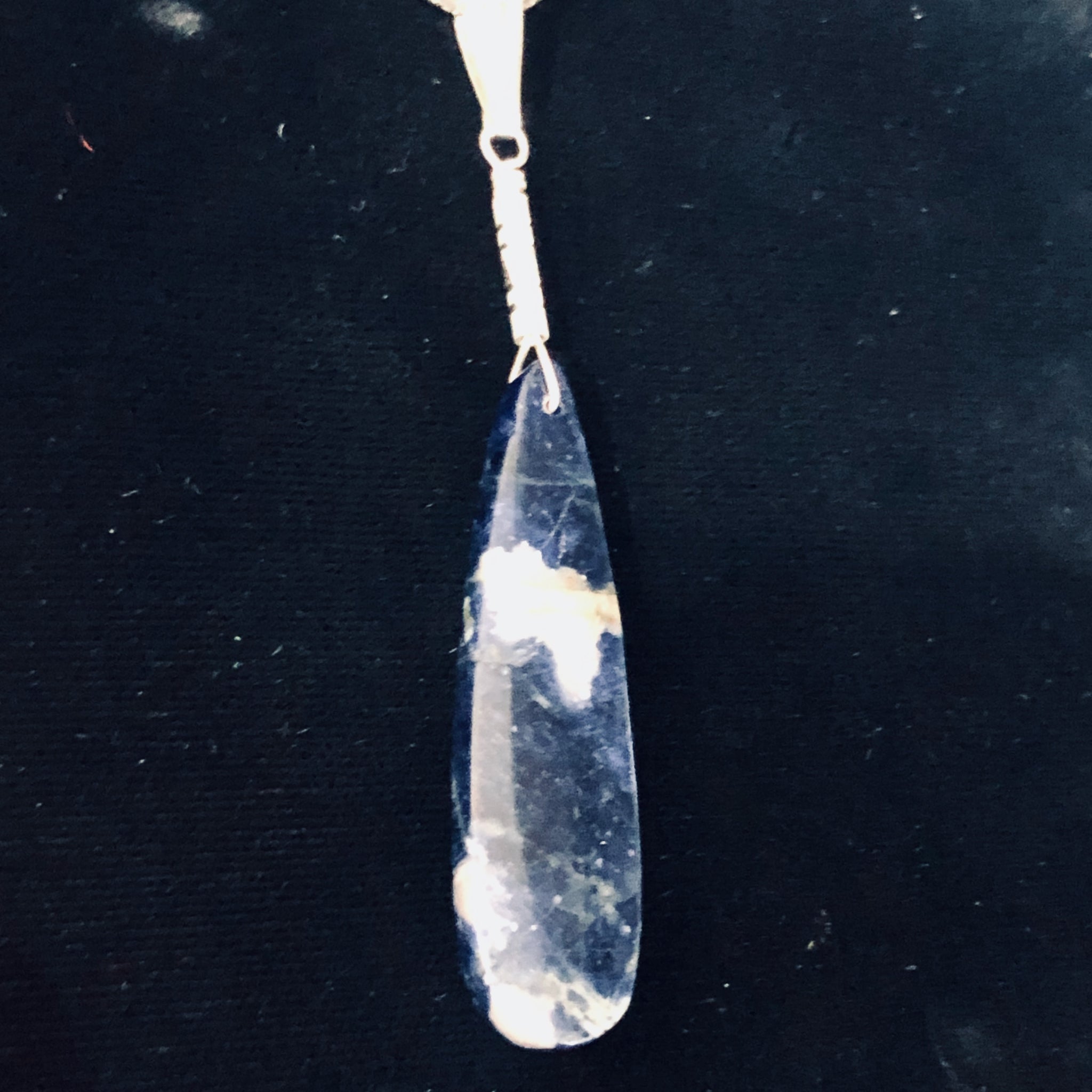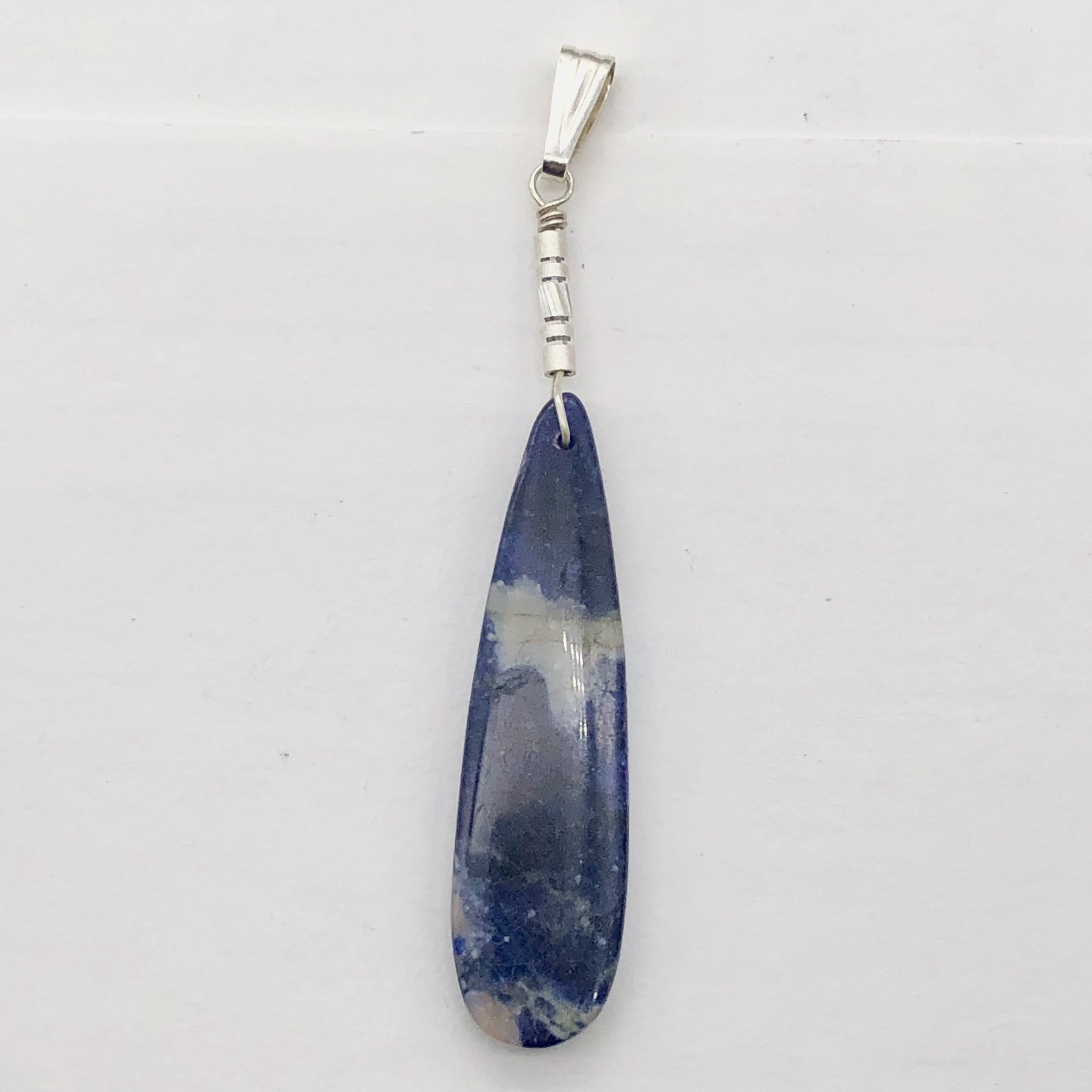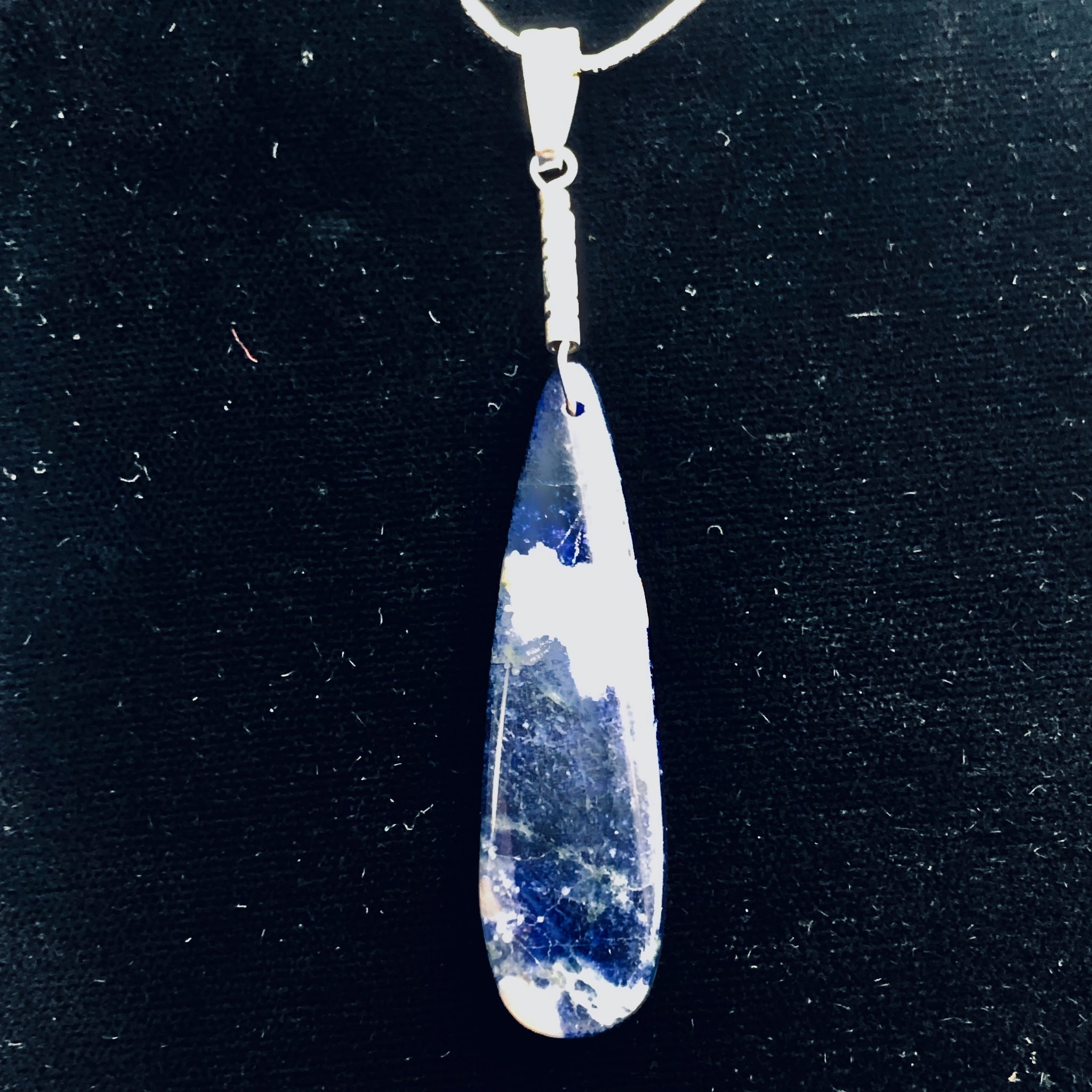 Blue/White Sodalite Sterling Silver Teardrop Pendant.