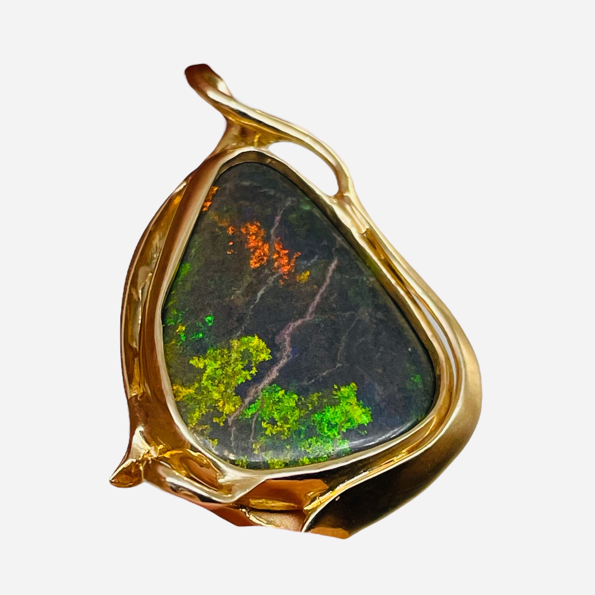 Fire Green Red 14K Opal Goddess Pendant - 2 1/4" Long