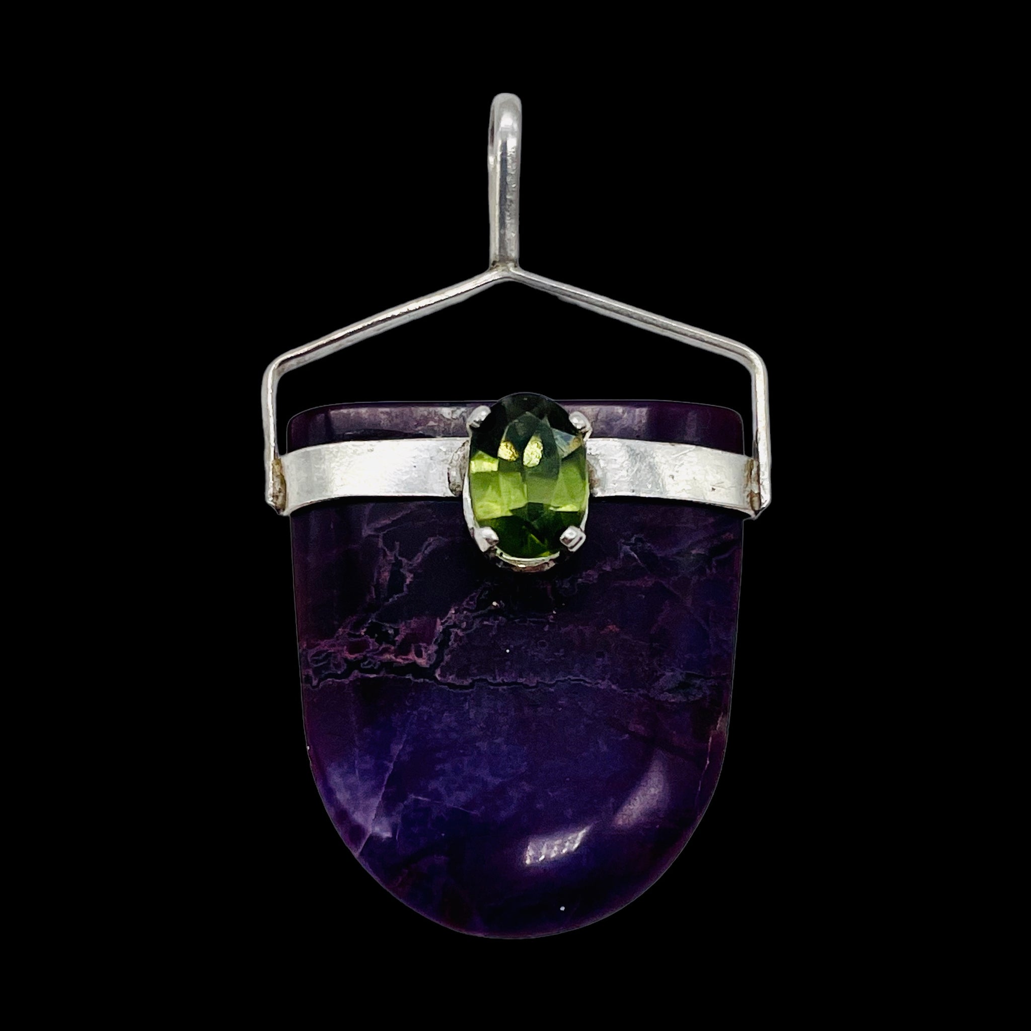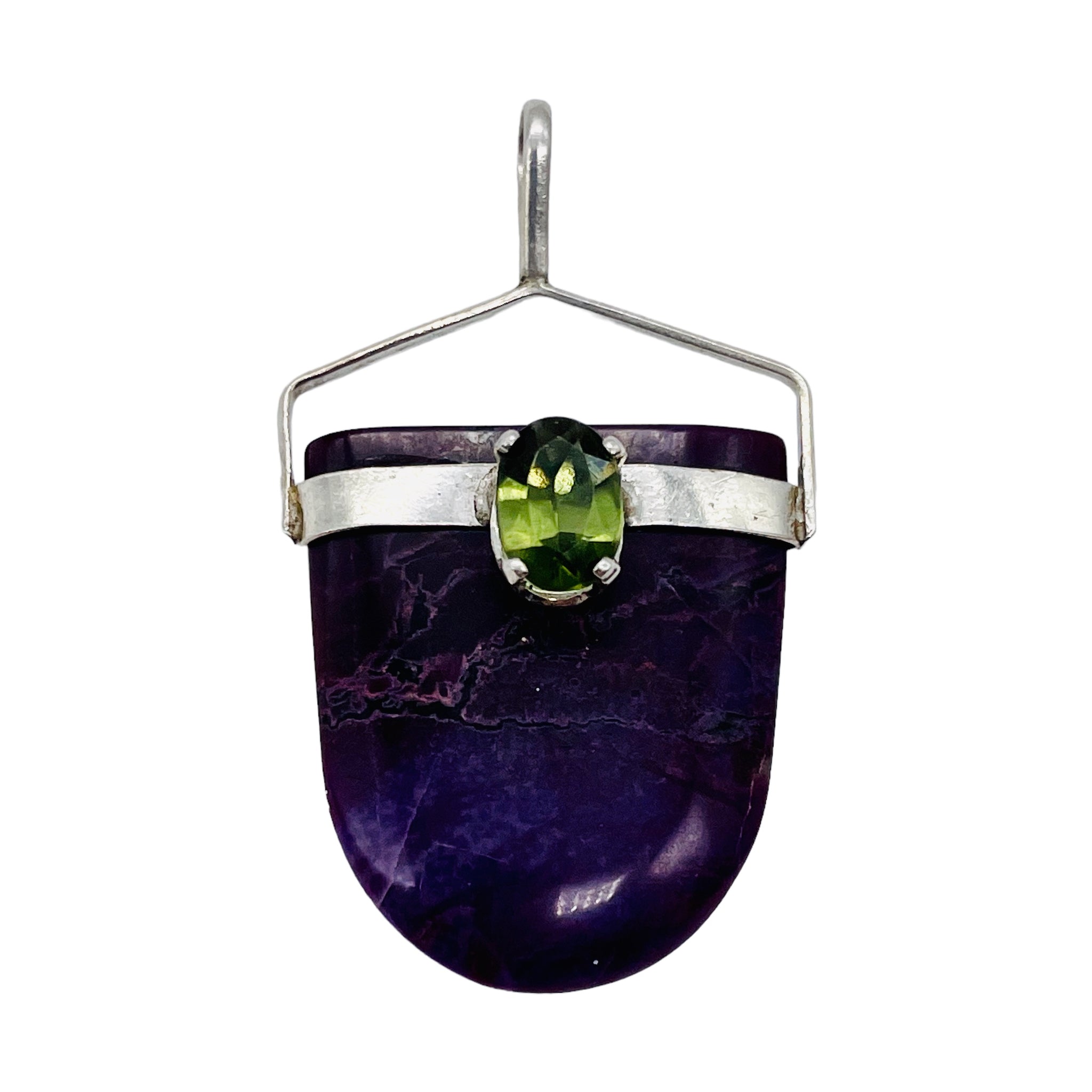 Purple and Green Peridot and Sugilite combo Sterling Silver Pendant.