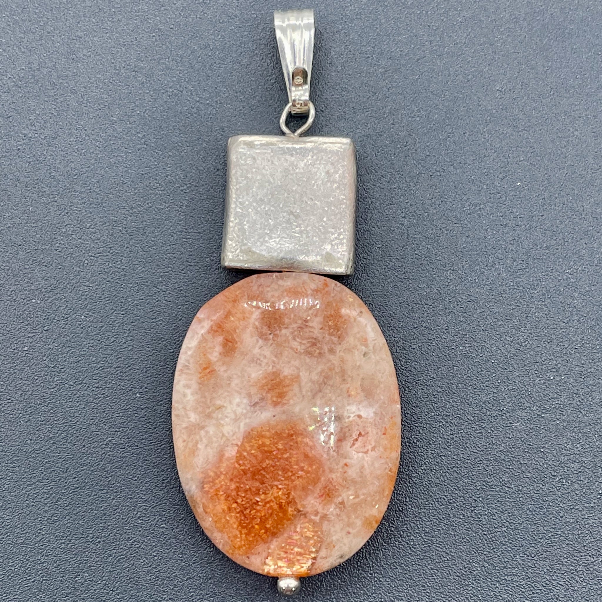Beautiful Pink/Golden Sunstone Sterling Silver Pendant !!